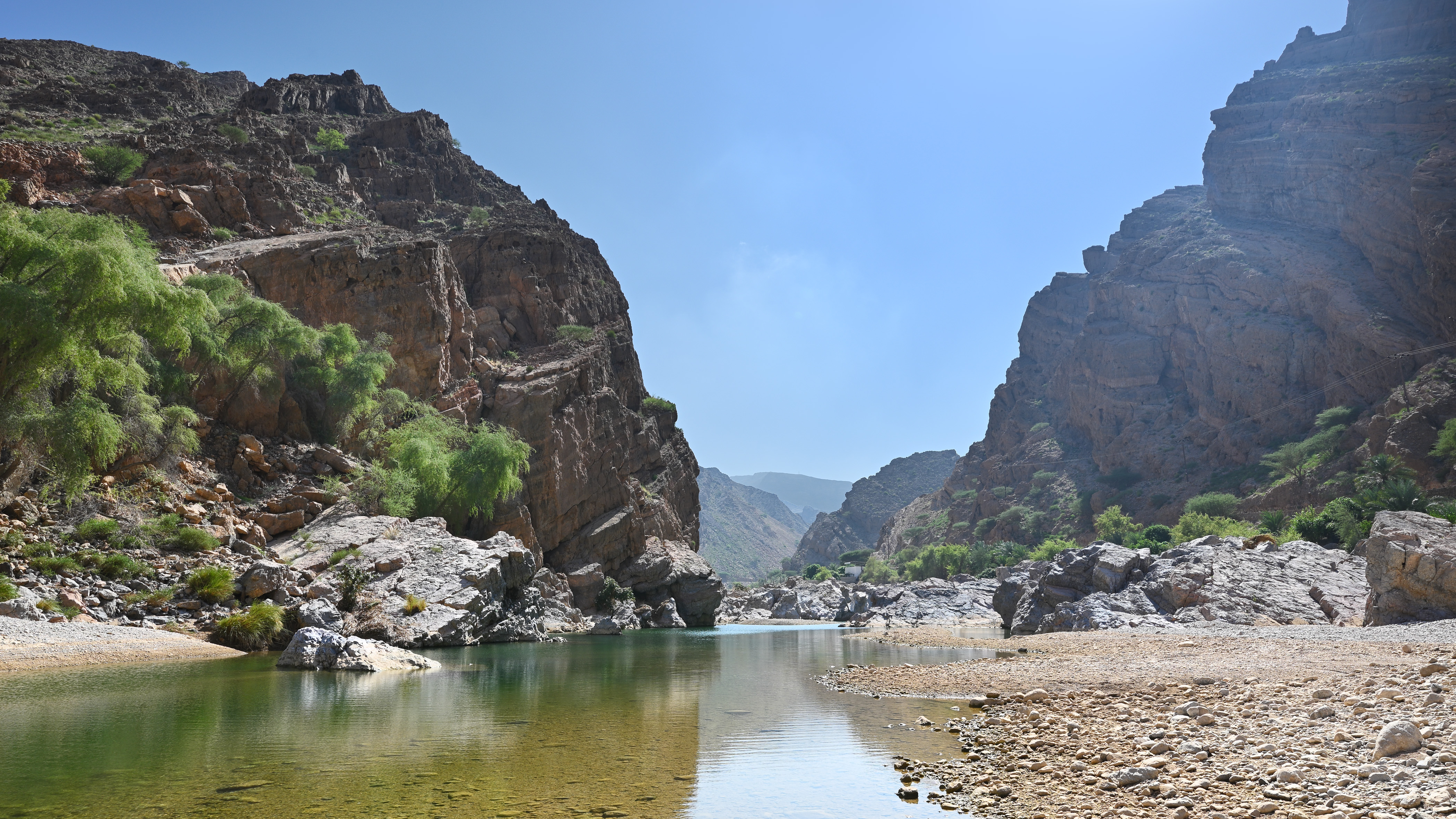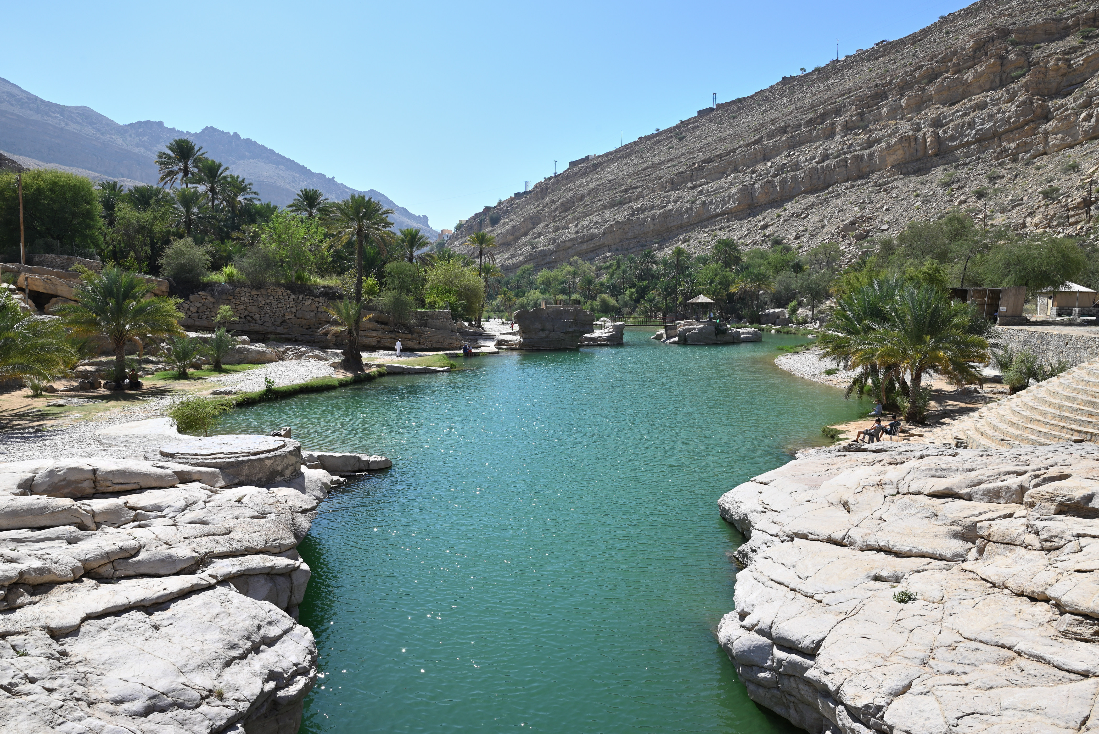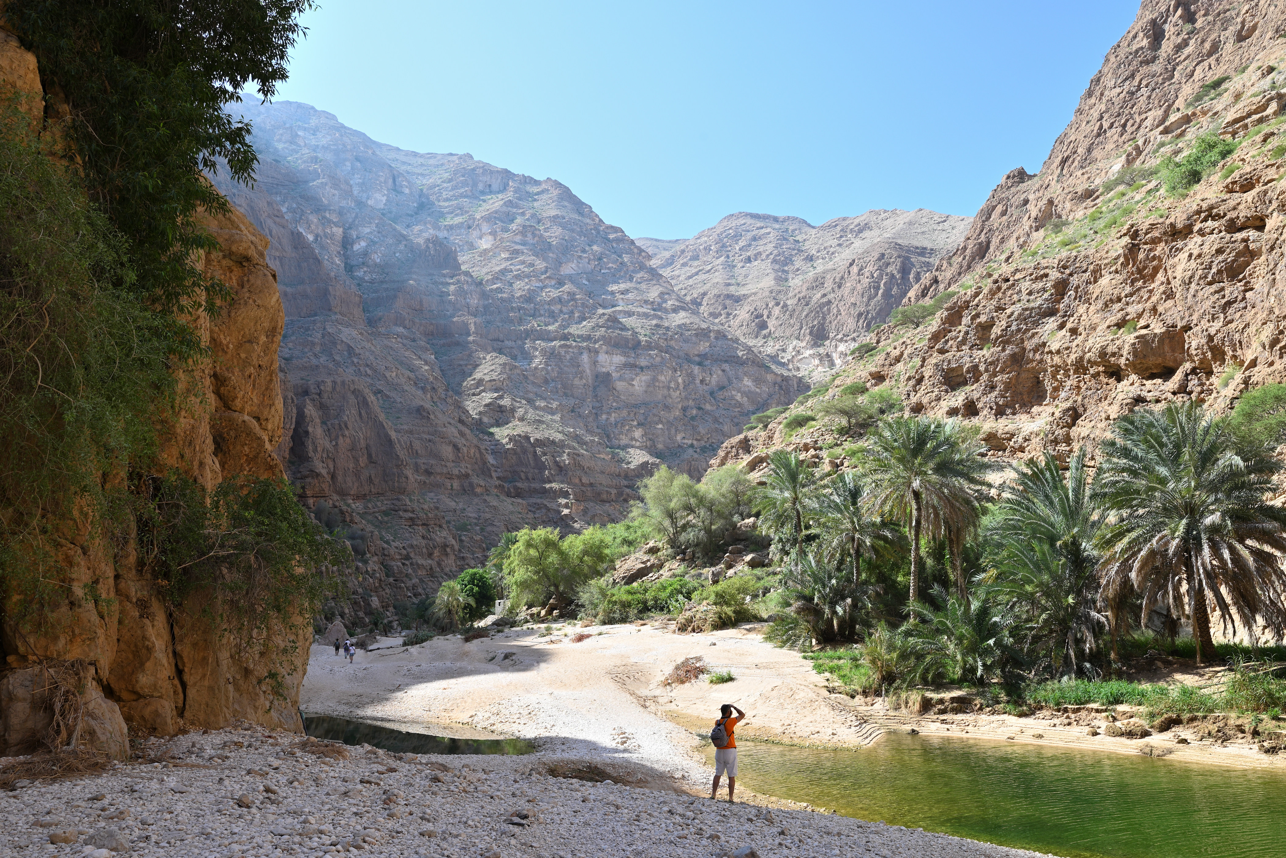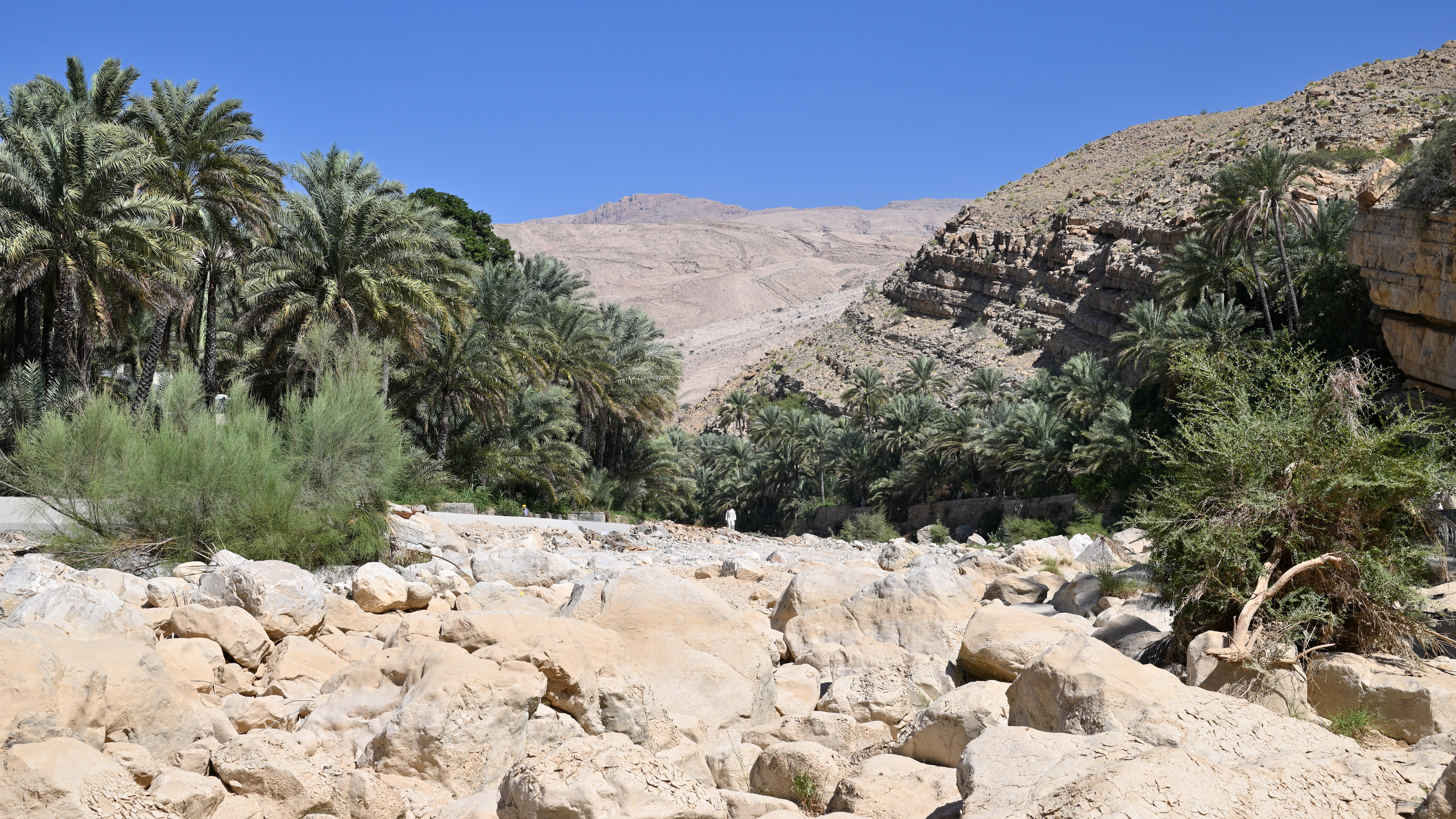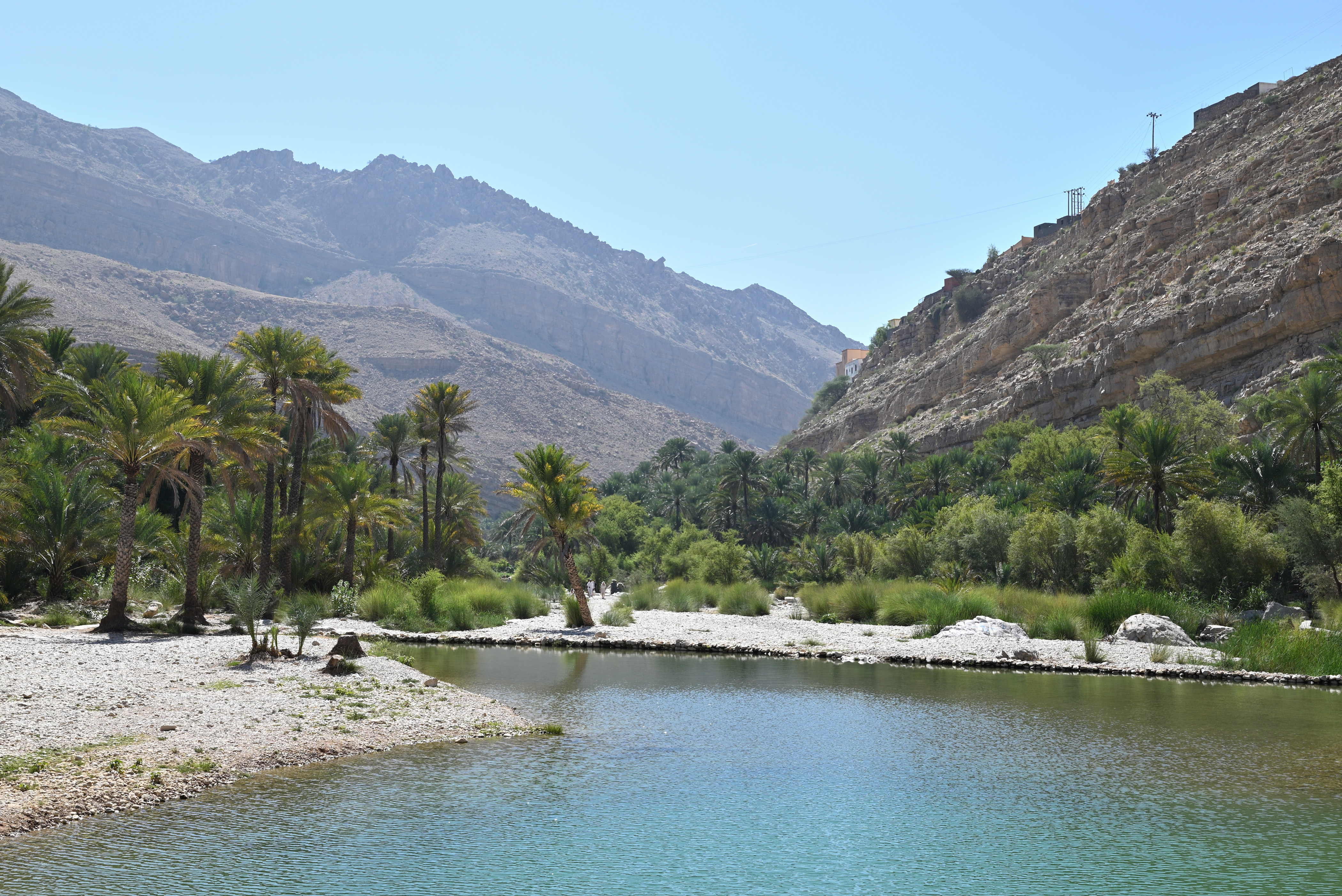 Am nächsten Tag steht eine Wanderung im berühmten Wadi Shab auf dem Programm. Der Canyon ist beeindruckend, mit steilen Felswänden und glasklaren Pools. Auch wenn die jüngsten Regenfälle das Grün etwas gedämpft haben, hat die Landschaft nichts von ihrer Magie verloren. Zum Glück sind wir früh unterwegs, denn auf dem Rückweg begegnen wir einer regelrechten Menschenflut.