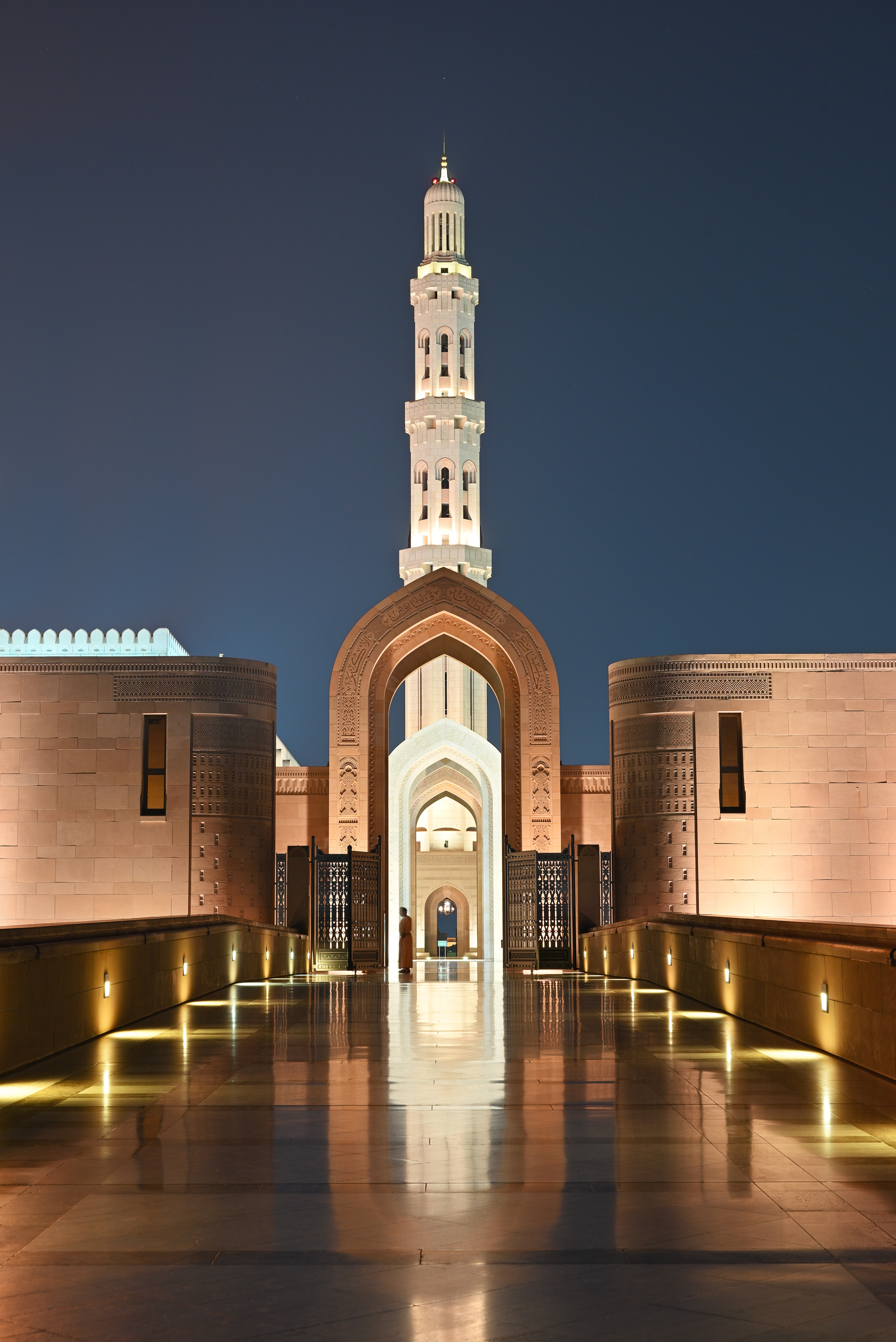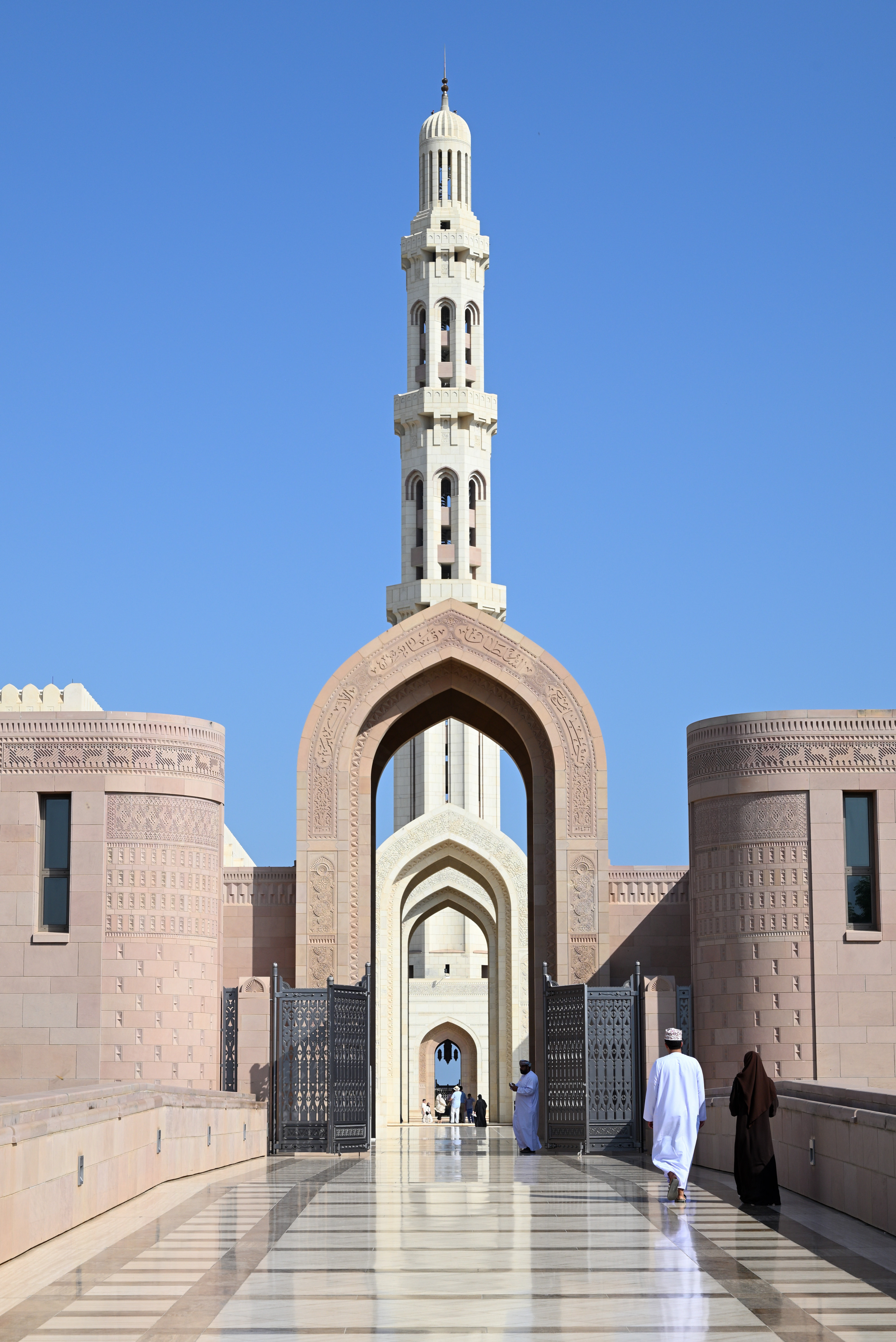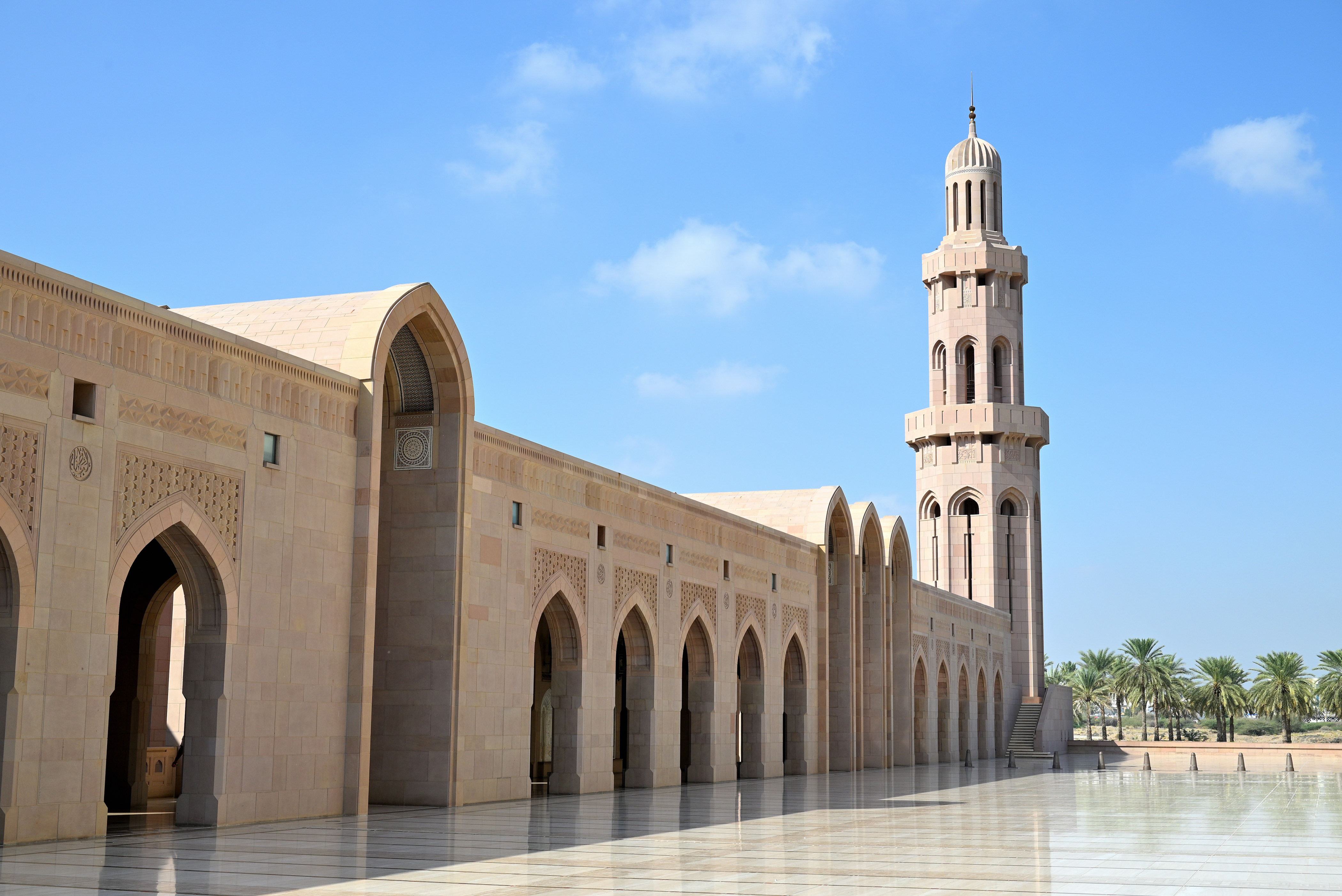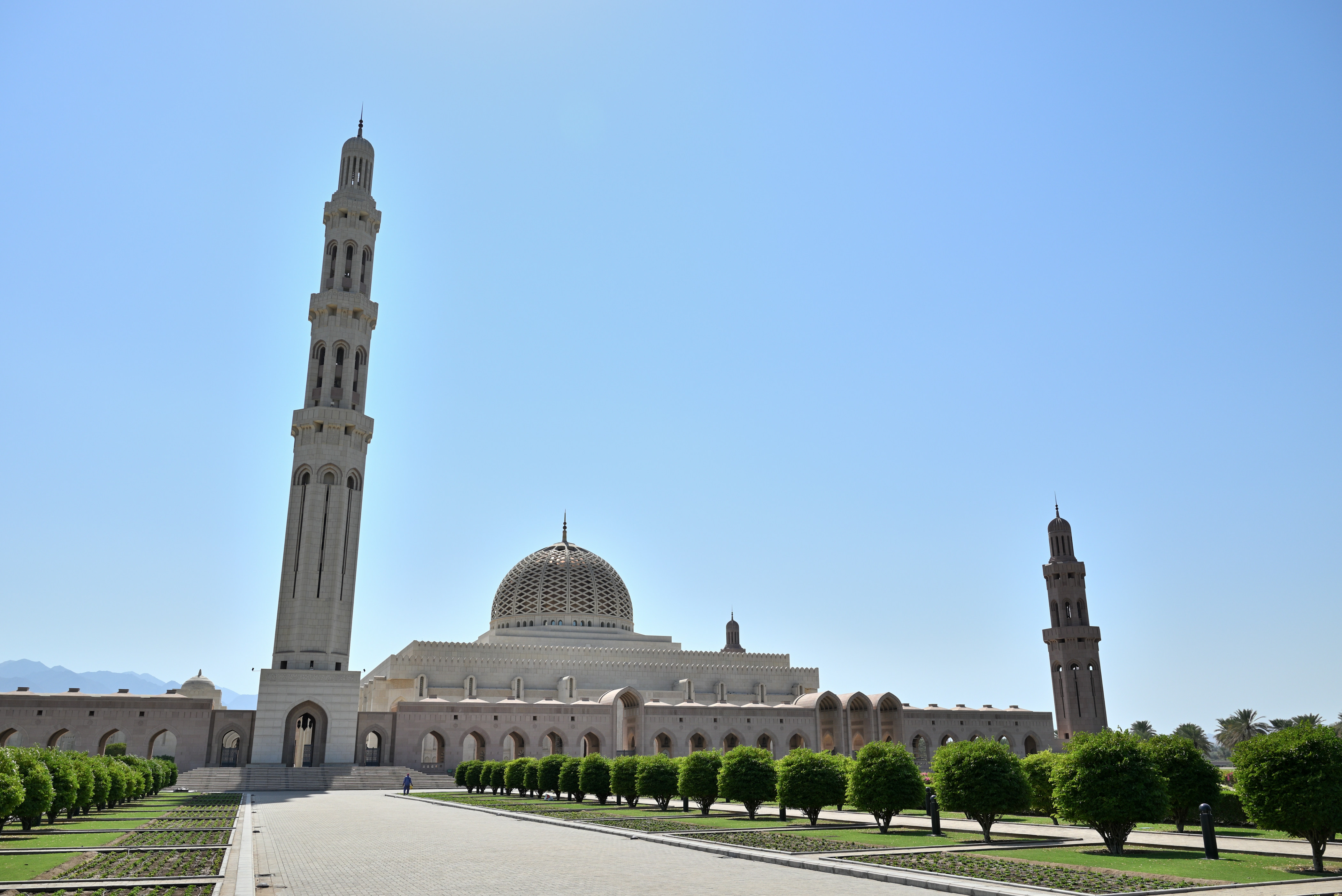 Unser Abenteuer im Oman beginnt! Nach einer späten Ankunft in der Nacht, einer schnellen Abwicklung der Formalitäten am Flughafen und der Übernahme unseres Mietwagens, erreichen wir müde, aber voller Vorfreude auf die nächsten Tage unser Hotel. Bereits am Morgen begrüßt uns die majestätische große Sultan-Qabus-Moschee mit ihrer atemberaubenden Architektur. Die Kuppel scheint den Himmel zu berühren, während der Marmorboden unter unseren Füßen glänzt.