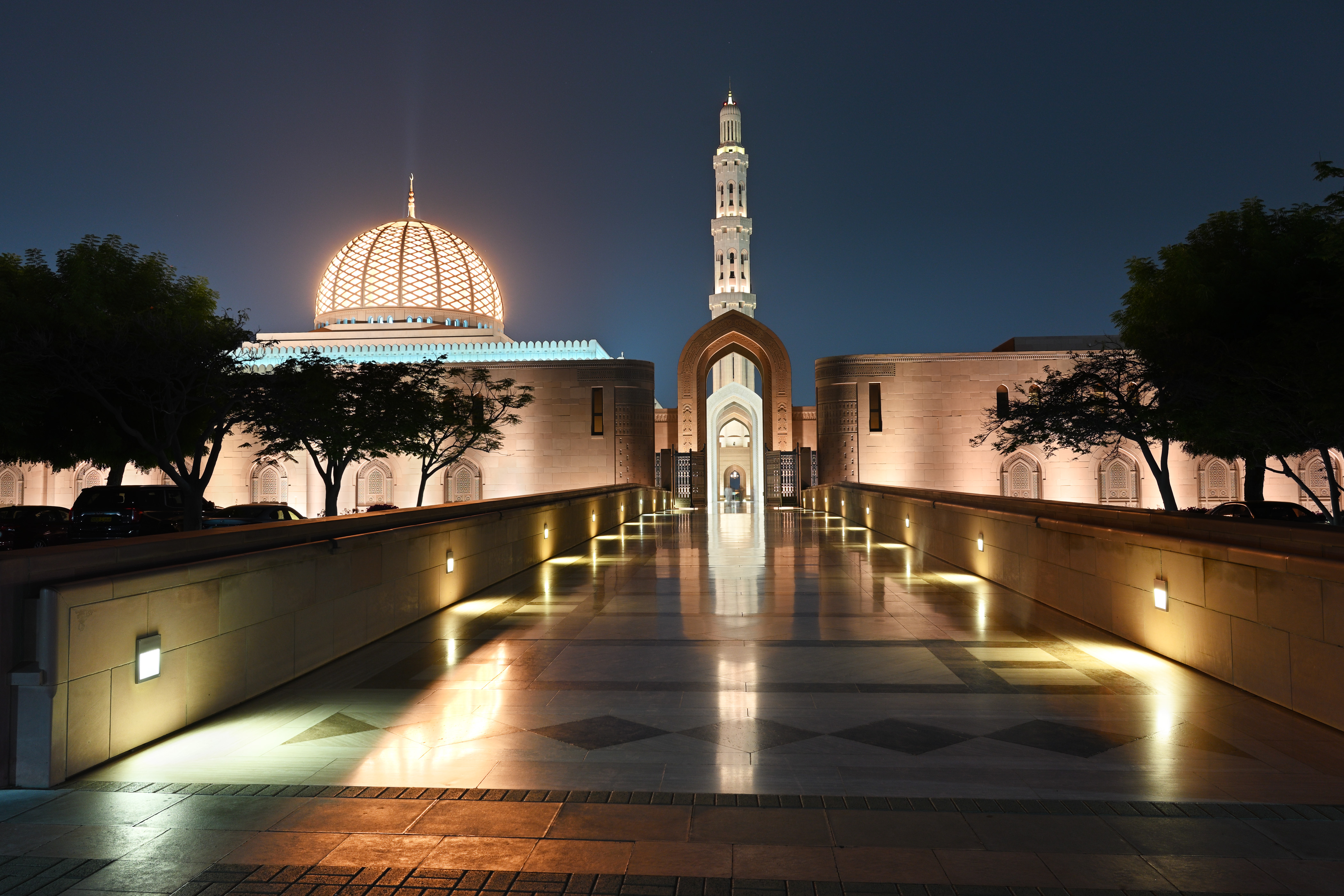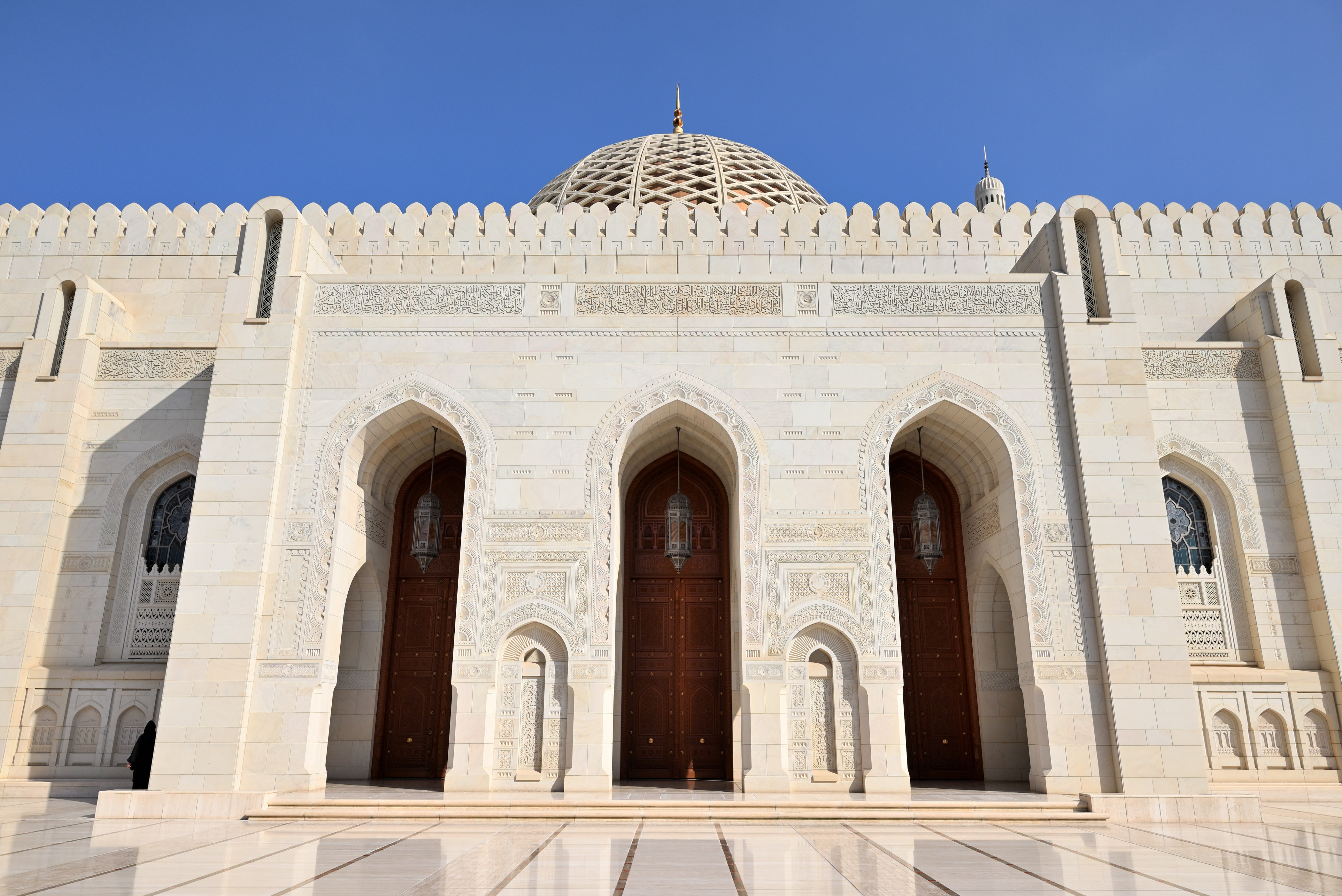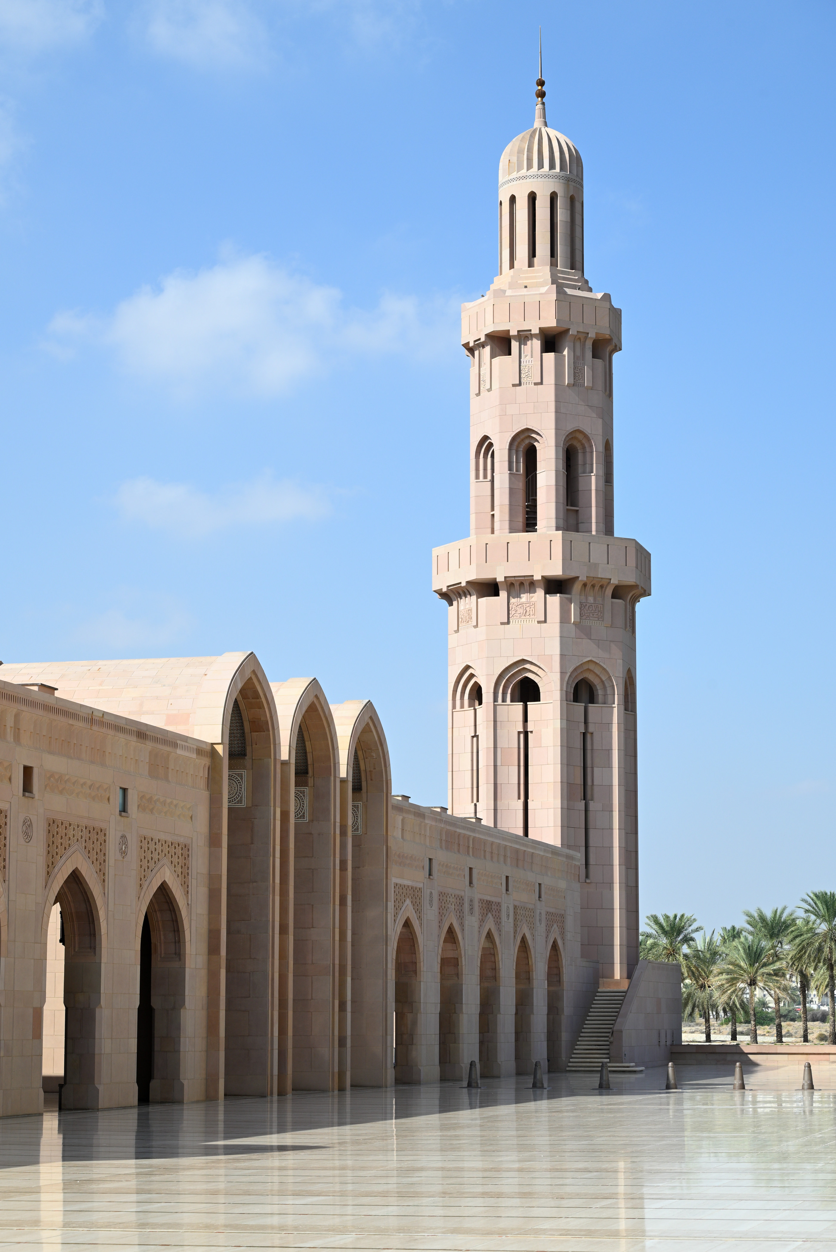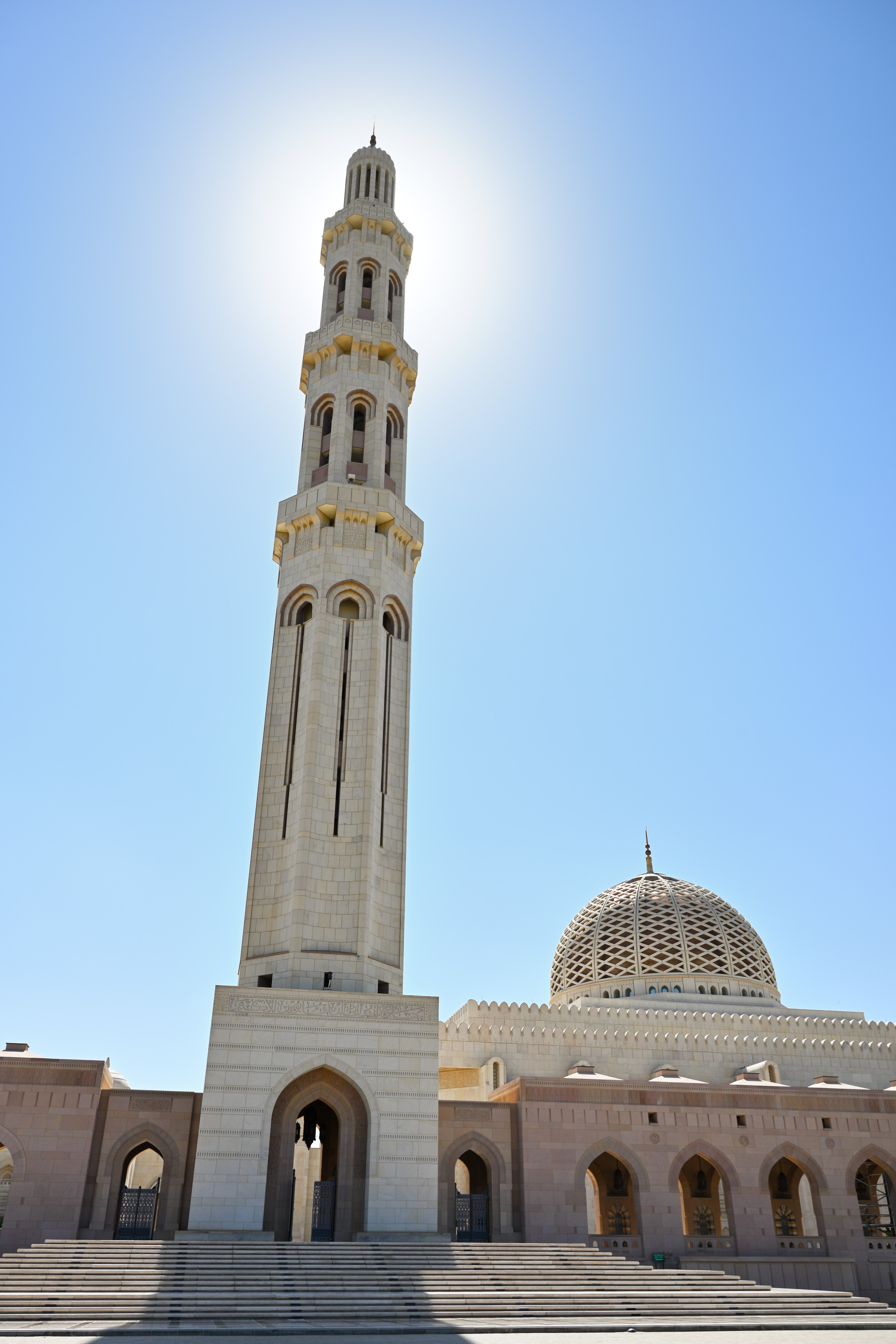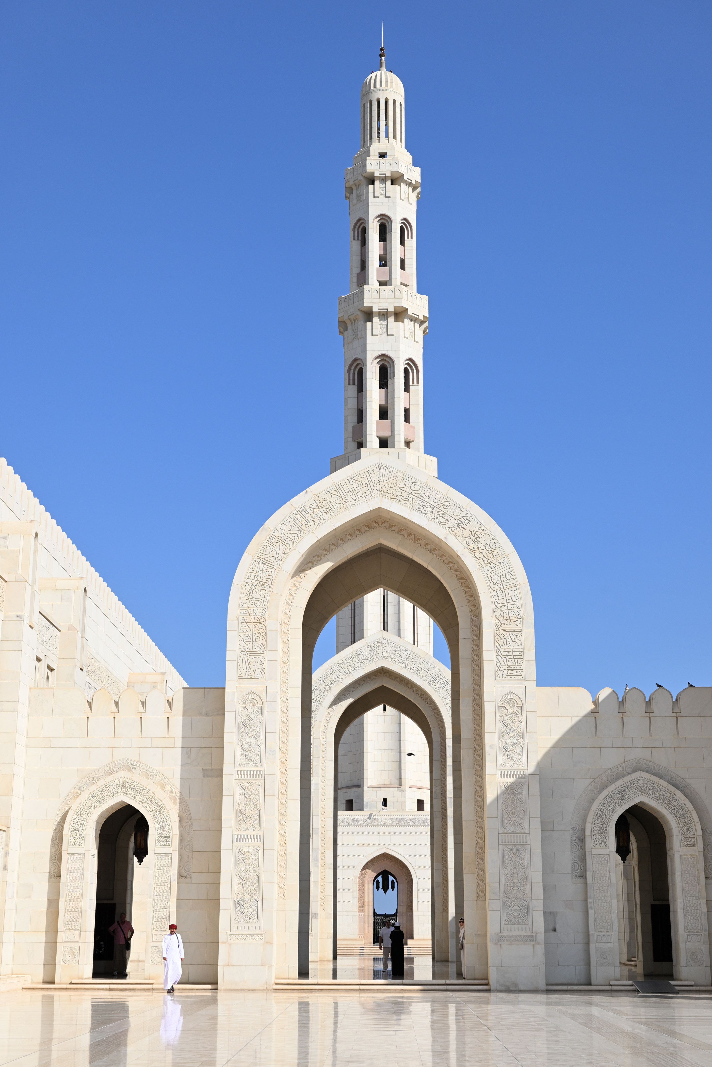 Unser Abenteuer im Oman beginnt! Nach einer späten Ankunft in der Nacht, einer schnellen Abwicklung der Formalitäten am Flughafen und der Übernahme unseres Mietwagens, erreichen wir müde, aber voller Vorfreude auf die nächsten Tage unser Hotel. Bereits am Morgen begrüßt uns die majestätische große Sultan-Qabus-Moschee mit ihrer atemberaubenden Architektur. Die Kuppel scheint den Himmel zu berühren, während der Marmorboden unter unseren Füßen glänzt.