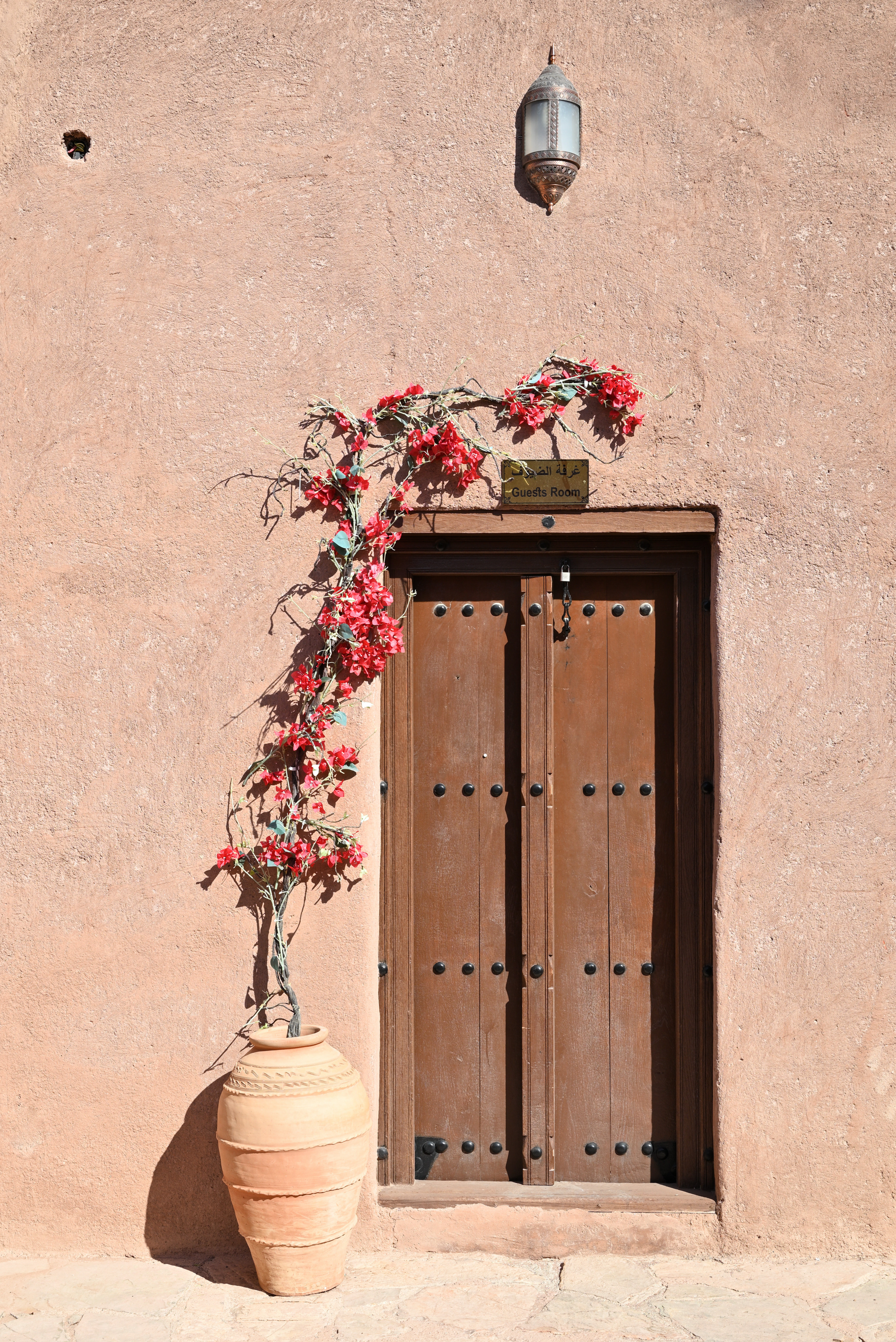 Nach diesem magischen Start machen wir uns auf den Weg zurück in die Talebene unterhalb des Hadschar-Gebirge. Unser Ziel ist die grüne Oase Al Hamra, wo uns eine charmante Unterkunft mit einem unglaublich herzlichen Gastgeber erwartet. Am Nachmittag führt uns der Weg in das Bergdorf Misfah al Abriyyin. Die engen Gassen, die aus Lehm erbauten Häuser und die kunstvoll geschnitzten Holztüren wirken wie ein lebendiges Museum. Es fühlt sich an, als wären wir in der Zeit zurückgereist.