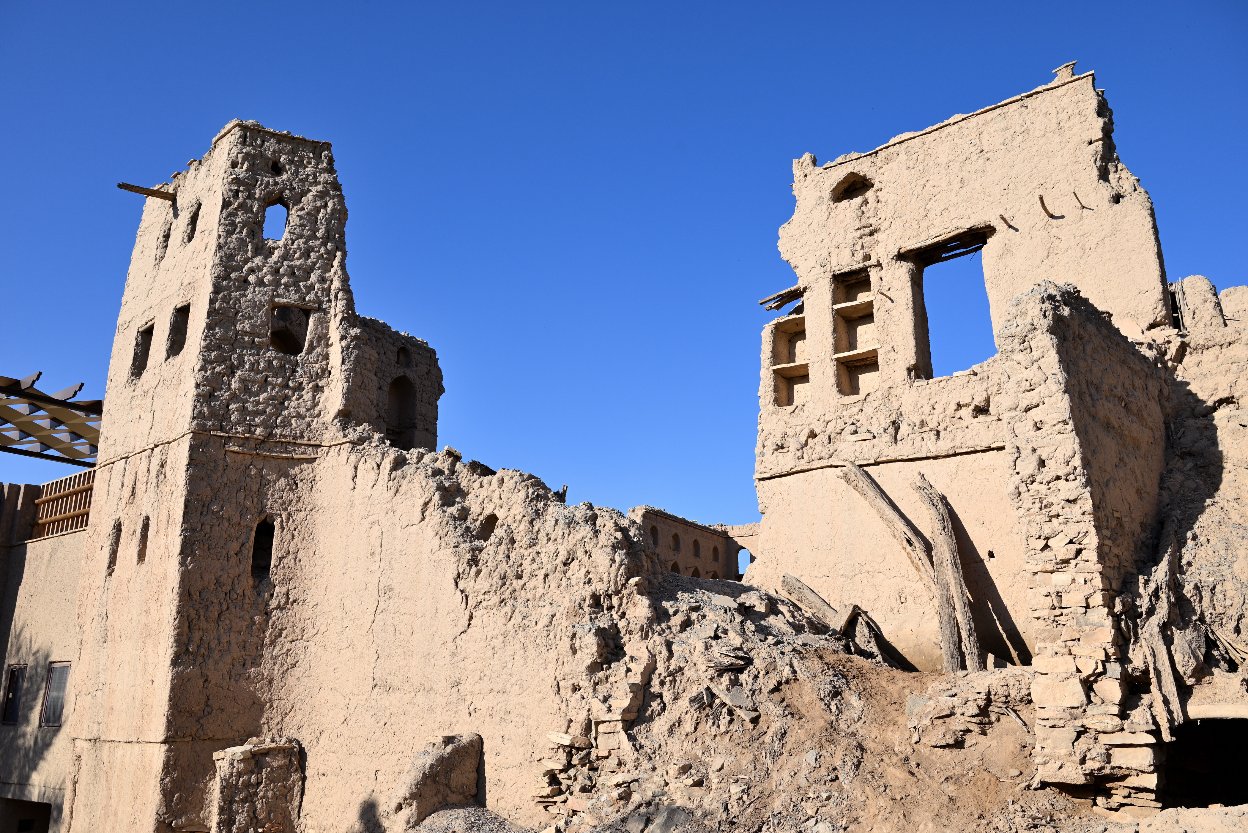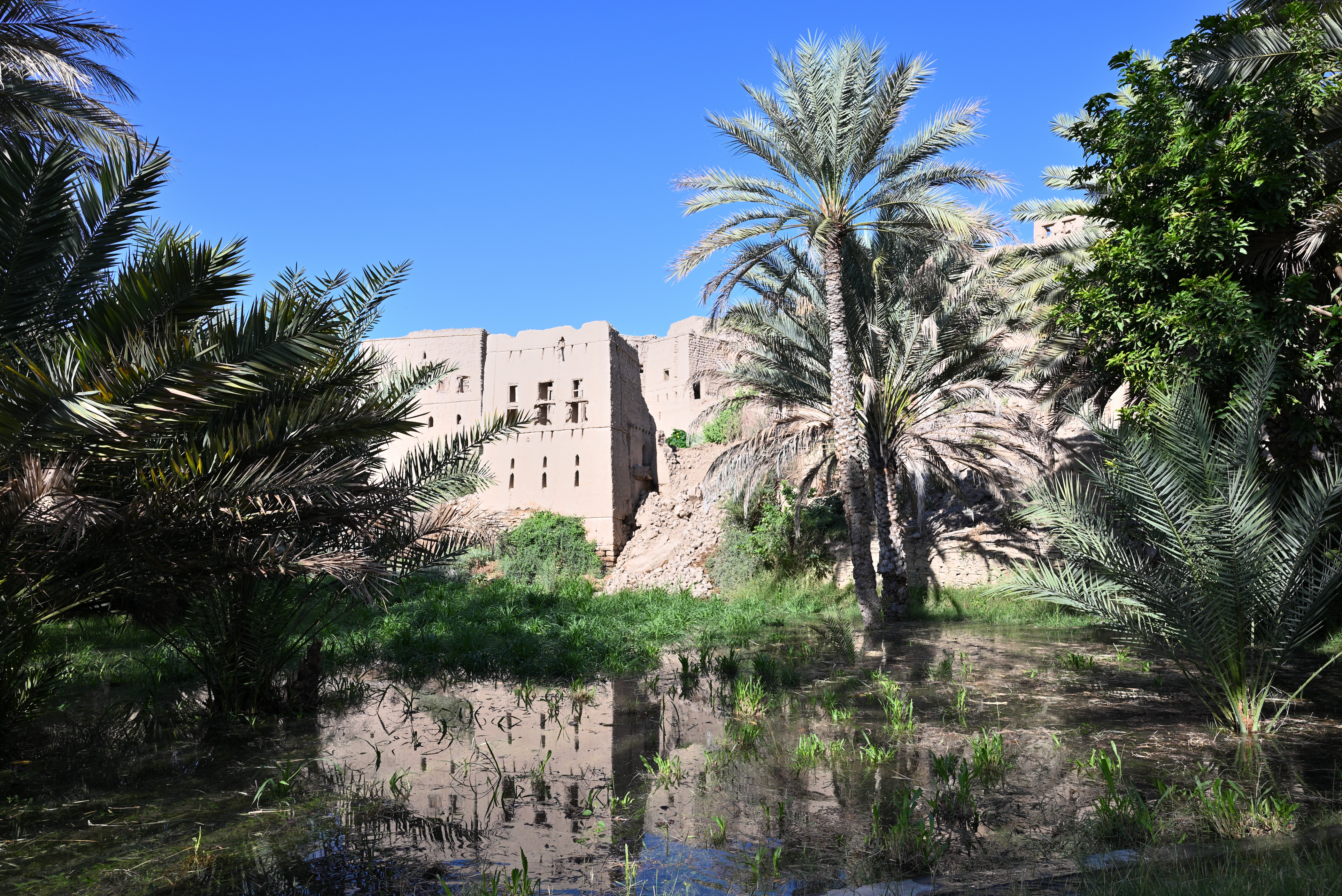 Der nächste Morgen beginnt mit einem Spaziergang unter den Schatten spendenden Dattelpalmen der Oase von Al Hamra. Das frische Grün und das leise Plätschern der Wasserkanäle schaffen eine fast meditative Atmosphäre. In der Altstadt erkunden wir die Ruinen, die Geschichten von vergangenen Generationen erzählen.