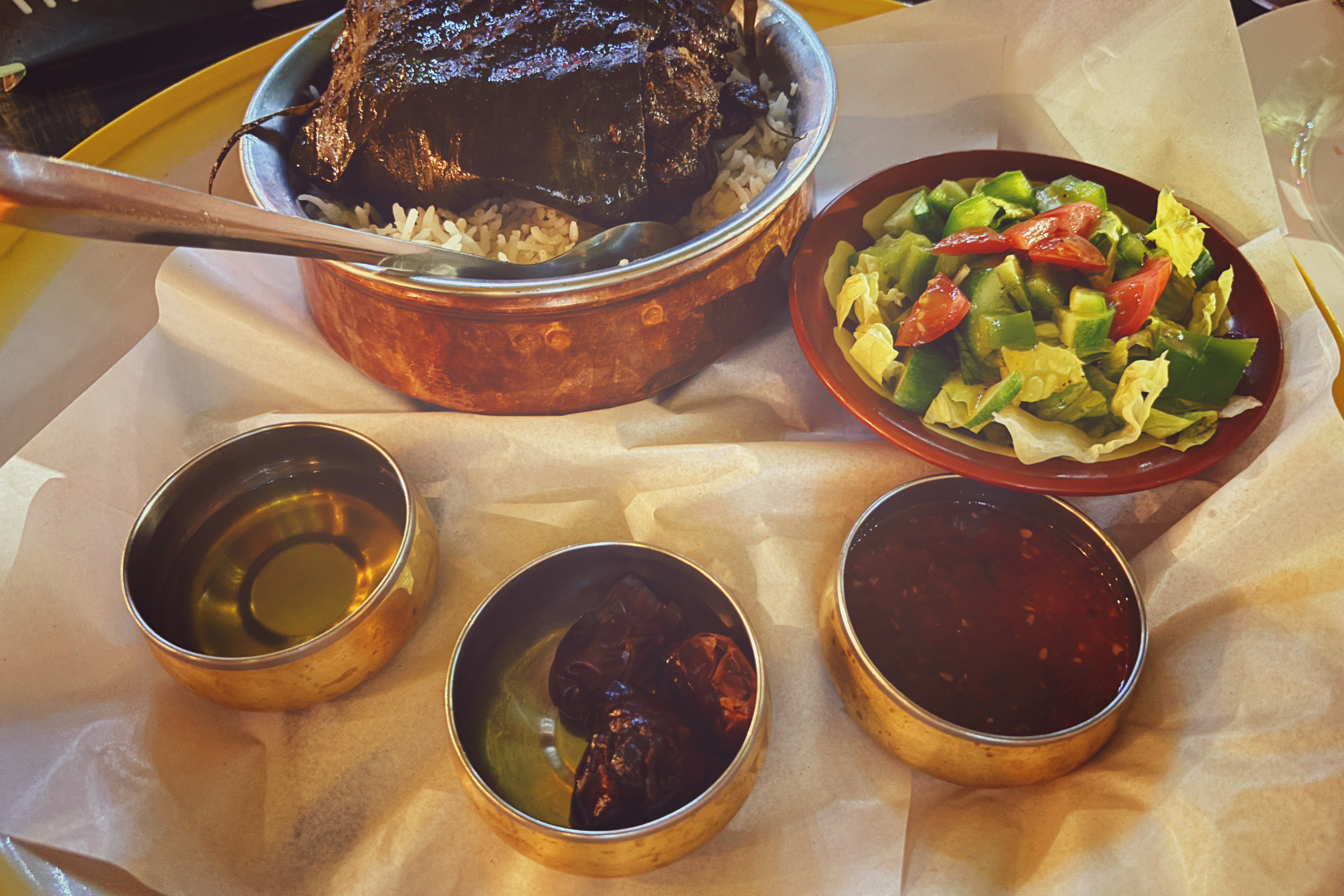 Am Nachmittag tauchen wir in die Eleganz der Oper ein und lassen uns später im „Green Cafe“ auf der Gartenterrasse kulinarisch verwöhnen. Es gibt Hummus, frisch gebackenes Mutabbal Brot, Zaatar Käsebrot, Omani Shuwa und Mandi Laham. Die omanischen Gerichte sind ein Feuerwerk aus Aromen: Safran, Kardamom, Zimt und gebratene Zwiebeln tanzen auf unseren Gaumen, während wir uns die zum Essen gereichten köstlichen Datteln und fruchtigen Cocktails schmecken lassen.