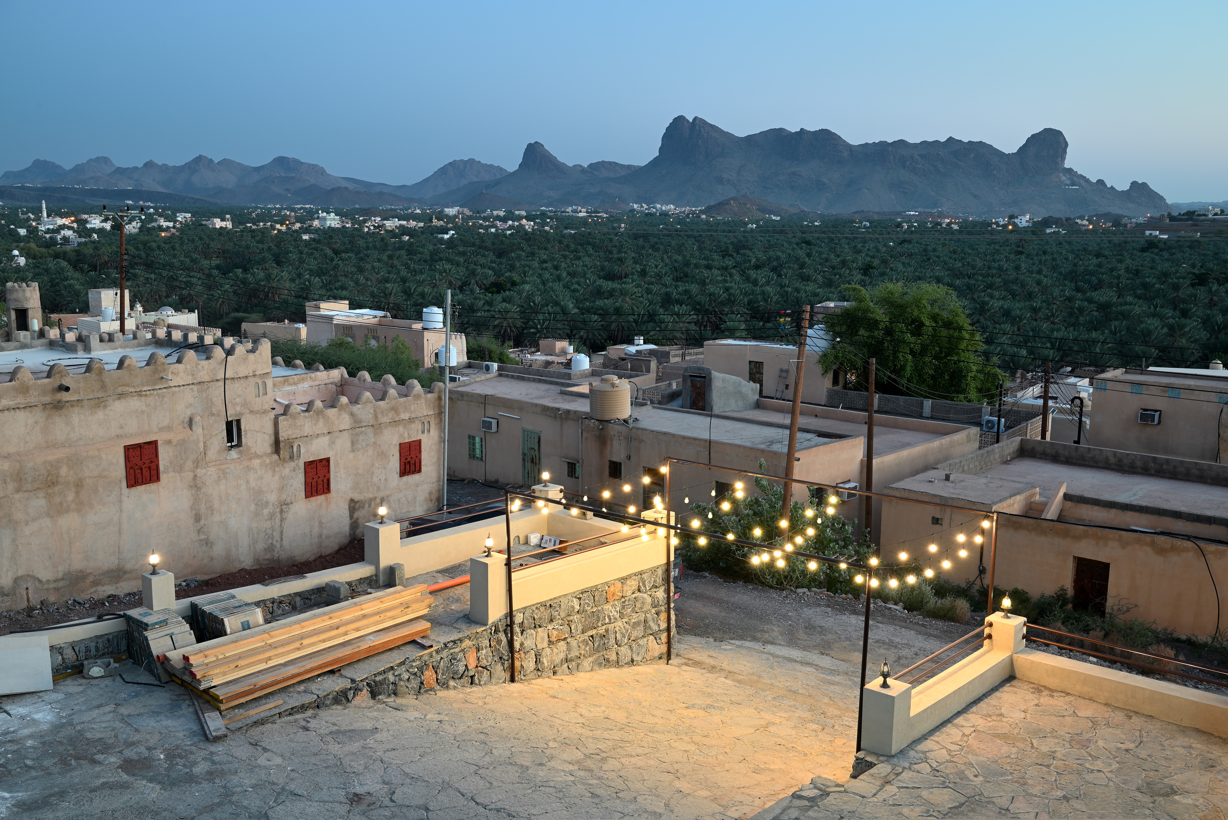 Am Nachmittag machen wir in Bahla Halt, einer Stadt, die für ihr beeindruckendes Fort bekannt ist. Die Hitze treibt uns in ein stilvolles Café direkt neben dem Fort, wo wir bei kühlen Getränken entspannen. Zurück in Misfah al Abriyyin wandern wir durch den Wadi Al-Saq, ein verstecktes Paradies mit schattigen Pfaden und plätschernden Wasserläufen. Abends erleben wir omanische Fast-Food-Kultur: In einem Straßenimbiss beobachten wir, wie die Einheimischen hupen, um ihre Bestellung aufzugeben, die dann direkt ans Auto geliefert wird. Wir sitzen auf der Terasse des Restaurants auf einfachen Plastikstühlen, dafür ist das Essen umso leckerer. Das Brot wird im Ofen frisch gebacken. Den Tag lassen wir auf der Dachterrasse unserer Unterkunft ausklingen, während die Sonne hinter den Bergen verschwindet und die Landschaft in warme Farben taucht.