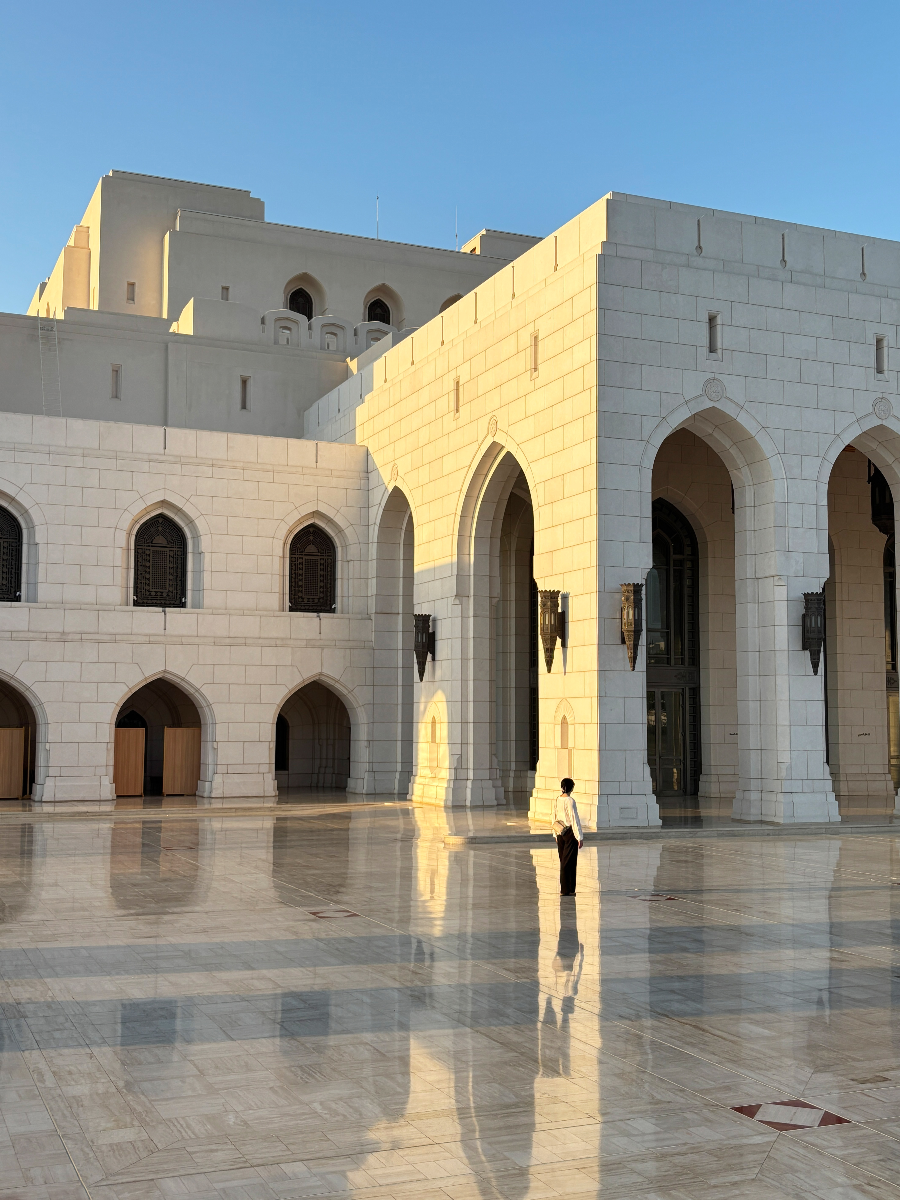 - Was uns ebenfalls ins Auge fällt, ist die Sauberkeit und Modernität des Landes. In Maskat sehen wir immer wieder grün gekleidete Arbeiter auf Motorrädern, die jeden noch so kleinen Müll sofort aufsammeln. Es wirkt fast surreal, wie makellos alles ist. Diese Liebe zum Detail spiegelt sich auch in der Architektur und den gepflegten Straßen wieder. Es ist ein Land, das Tradition und Moderne auf eine Weise vereint, die uns tief beeindruckt.