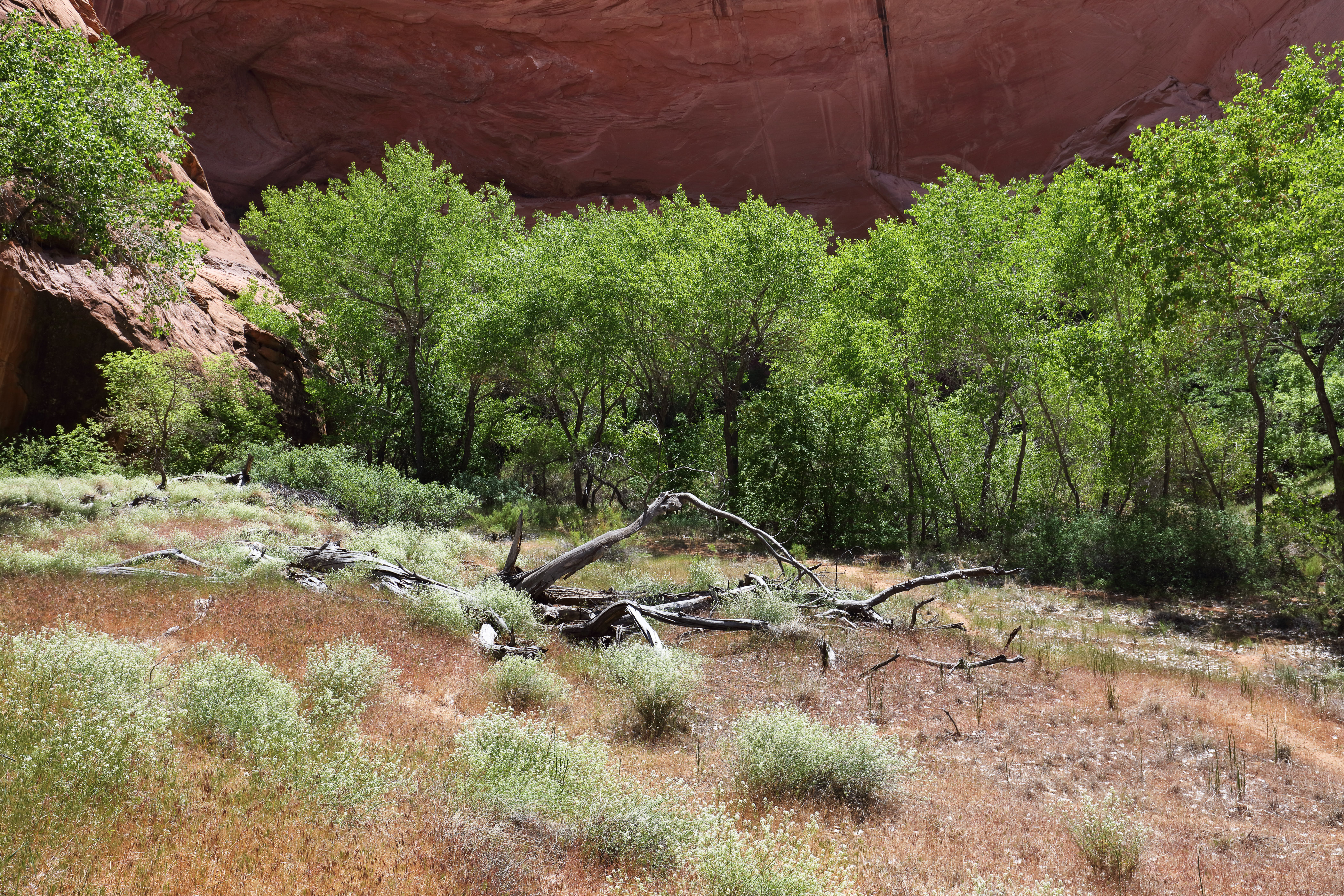 Da mir der Ein-/Ausstieg über die Sneaker Route zu steil ist, habe ich mich für eine Wanderung ausgehend vom Red Well Trailhead entschieden. Diese Route ist zwar die längste (ca. 1,5 Kilometer länger bis zum Jacob Hamblin Arch als über den Red Well Trailhead), jedoch wandert man die meiste Zeit im Schatten unter Cottonwood Bäumen. Zudem stößt man bereits nach weniger als zwei Kilometern auf den ganzjährig wasserführenden Coyote Creek. Den Backpacking Trip in den Coyote Gulch habe ich im Mai 2019 gemacht, als ich mehrere Tage bei Escalante war. Die Wettervorhersage für die nächsten Tage war fantastisch, so stand der Wanderung nichts mehr im Wege.