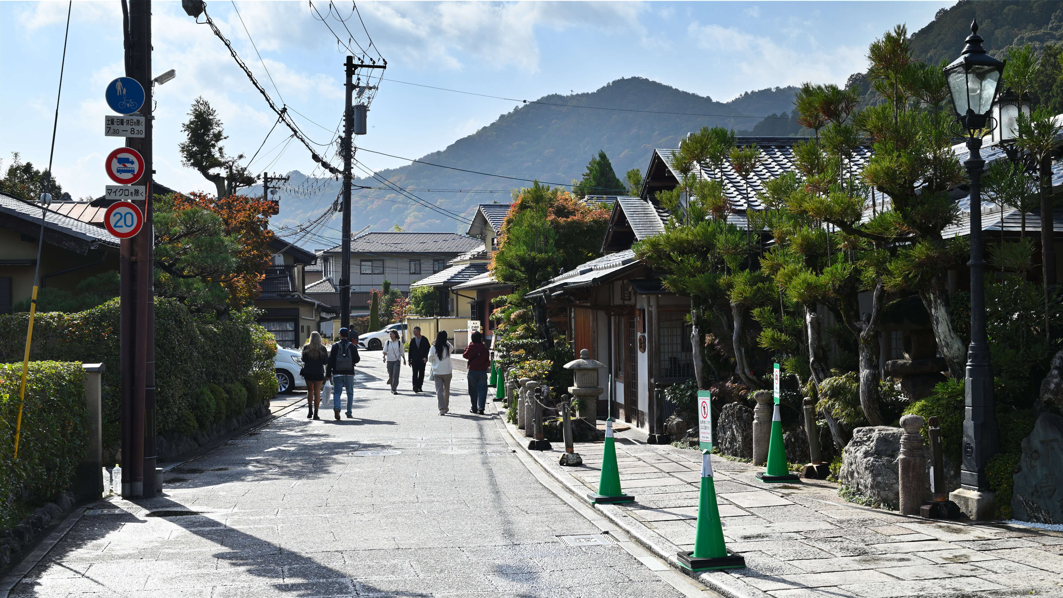 In Arashiyama besuche ich den Adashino Nenbutsu-ji Tempel mit Bambuswald und vielen Steinfiguren. Der kleine Giō-ji Tempel liegt versteckt im Wald, still und moosig. Danach spaziere ich durch Straßen im Kita-ku Ward. Am Nachmittag der Kinkaku-ji Tempel (Goldener Pavillon): viel Wind, unruhiges Wasser, extrem viele Besucher – aber zwischendurch perfekte Spiegelungen.