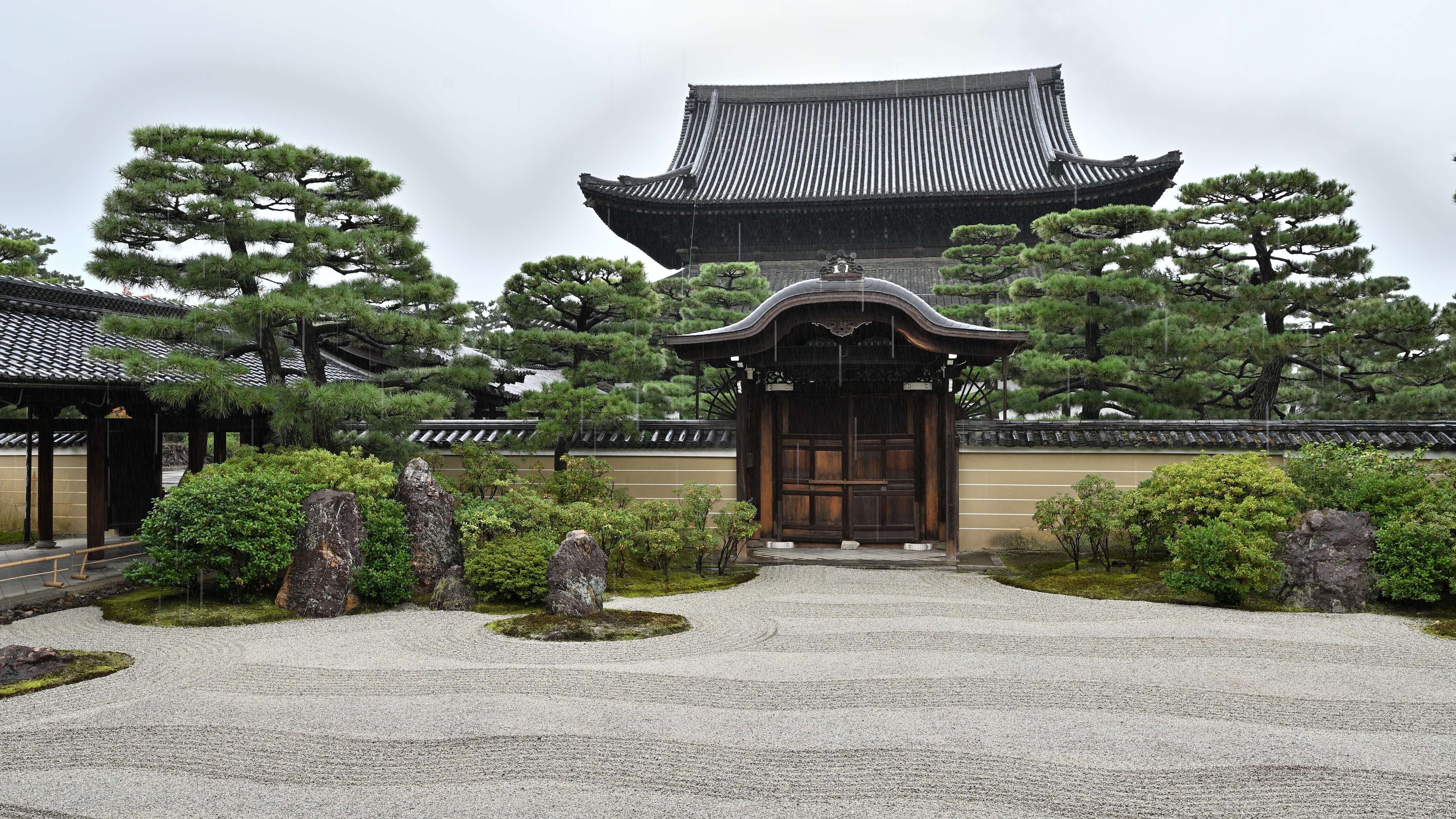 Am Morgen stehe ich wieder an der Yasaka-Pagode in Ninenzaka. Der Kennin-ji Tempel mit Zen-Gärten wirkt im Regen besonders ruhig und authentisch. Zen Atmosphäre pur. Der Kōdaiji Tempel hingegen enttäuscht etwas.