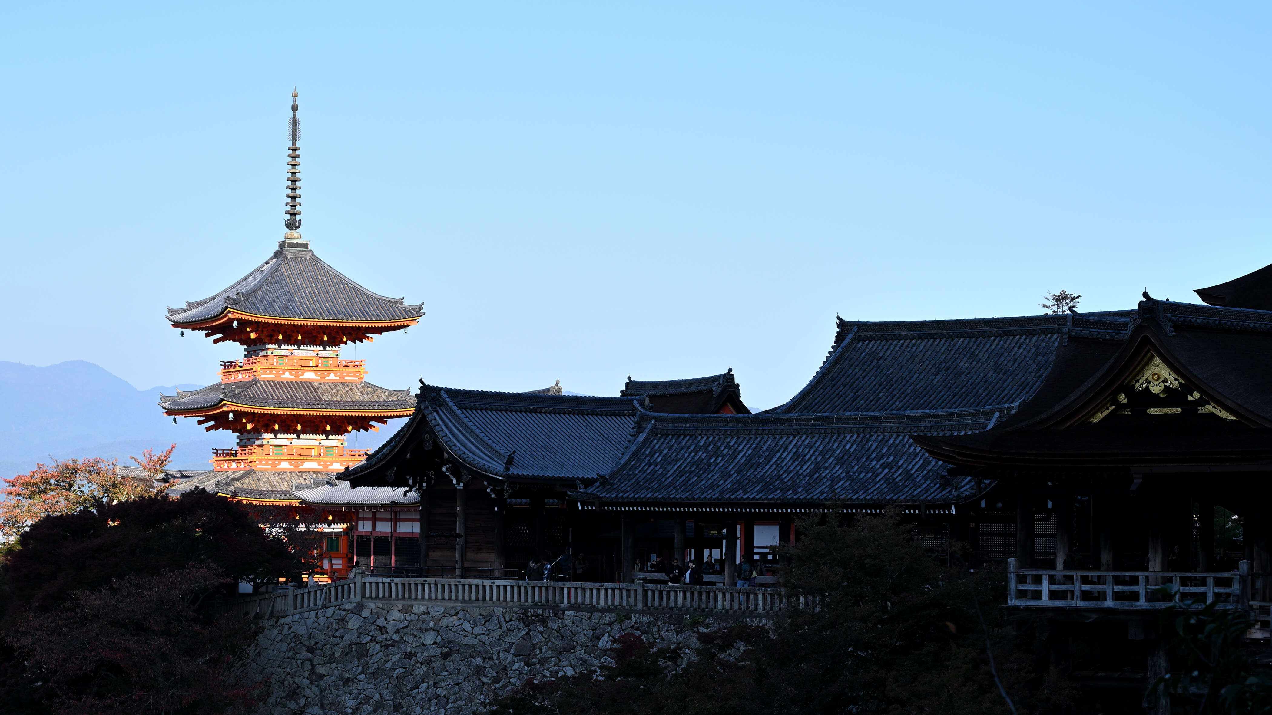 In der blauen Stunde fotografiere ich früh morgens die Yasaka-Pagode, gemeinsam mit anderen Fotografen. Tagsüber ist das Viertel hoffnungslos überlaufen. Der Kiyomizu-dera Tempel ist beeindruckend, der berühmte Balkon aber etwas enttäuschend. Spontan geht es nach Osaka. Auf der riesigen Burganlage findet ein Volksfest mit singenden Tänzern im perfekten Herbstwetter statt. Spätnachmittags Tsutenkaku-Tower im Neonmeer von Shinsekai zur blauen Stunde.