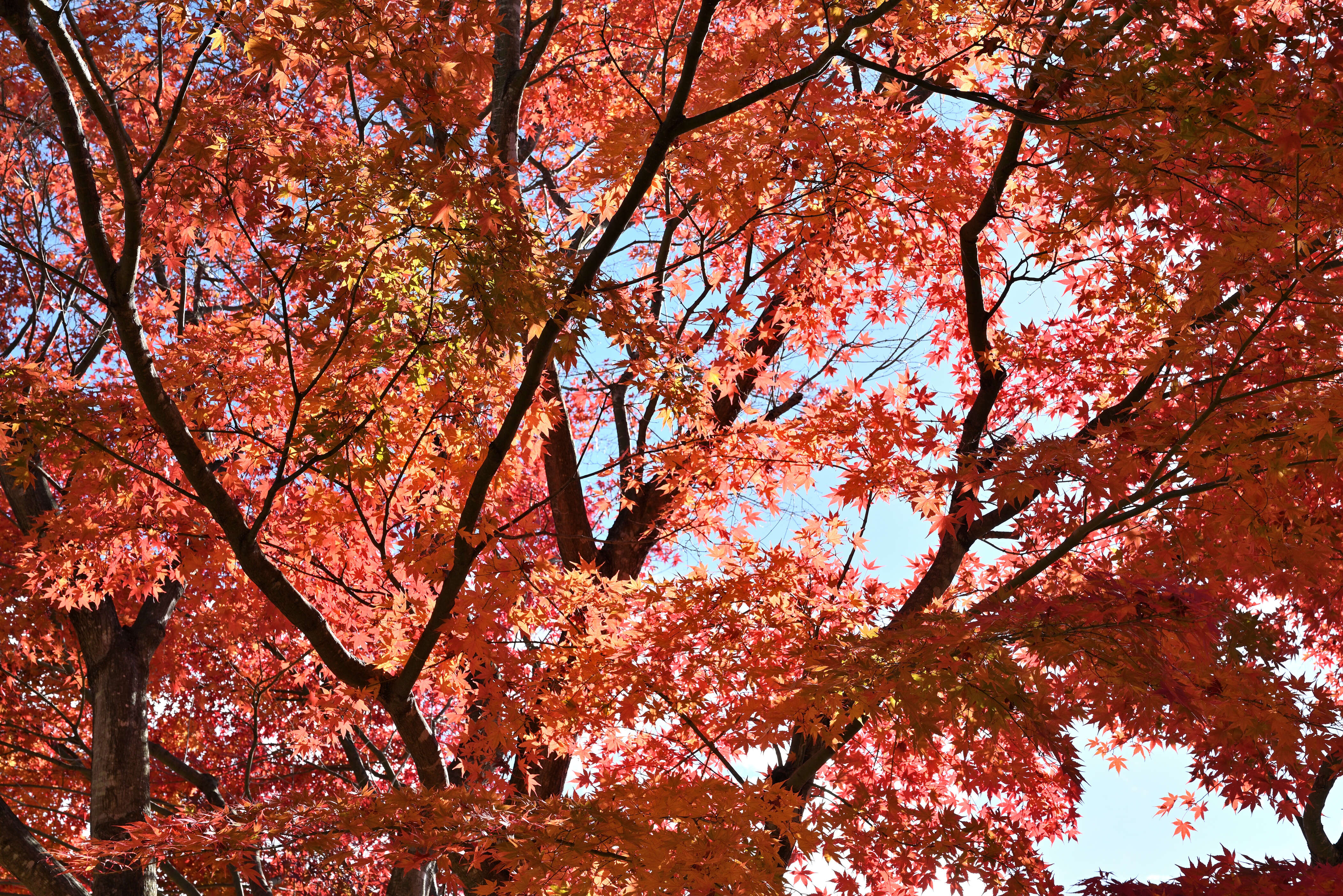 Im Enkō-ji Tempel eröffnen offene Räume wunderschöne Blicke auf herbstliche Gärten. Der Rurikō-in Tempel begeistert mit Spiegelungen der Bäume auf einem Tisch im Innenraum. Zufällig entdecke ich den Renge-ji Tempel, ruhig, zenartig, bevor ich Kyoto Station und den Skywalk besuche.