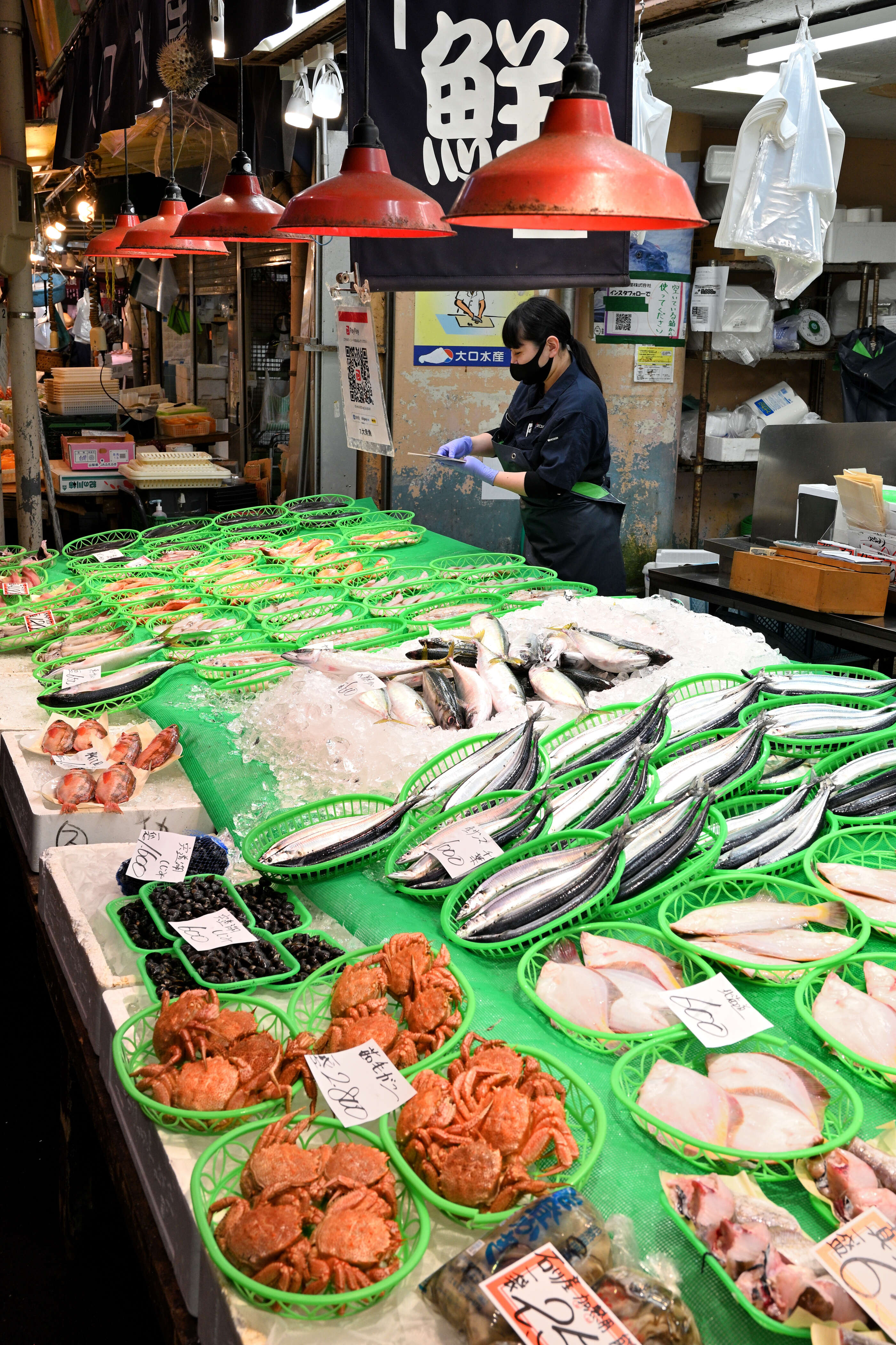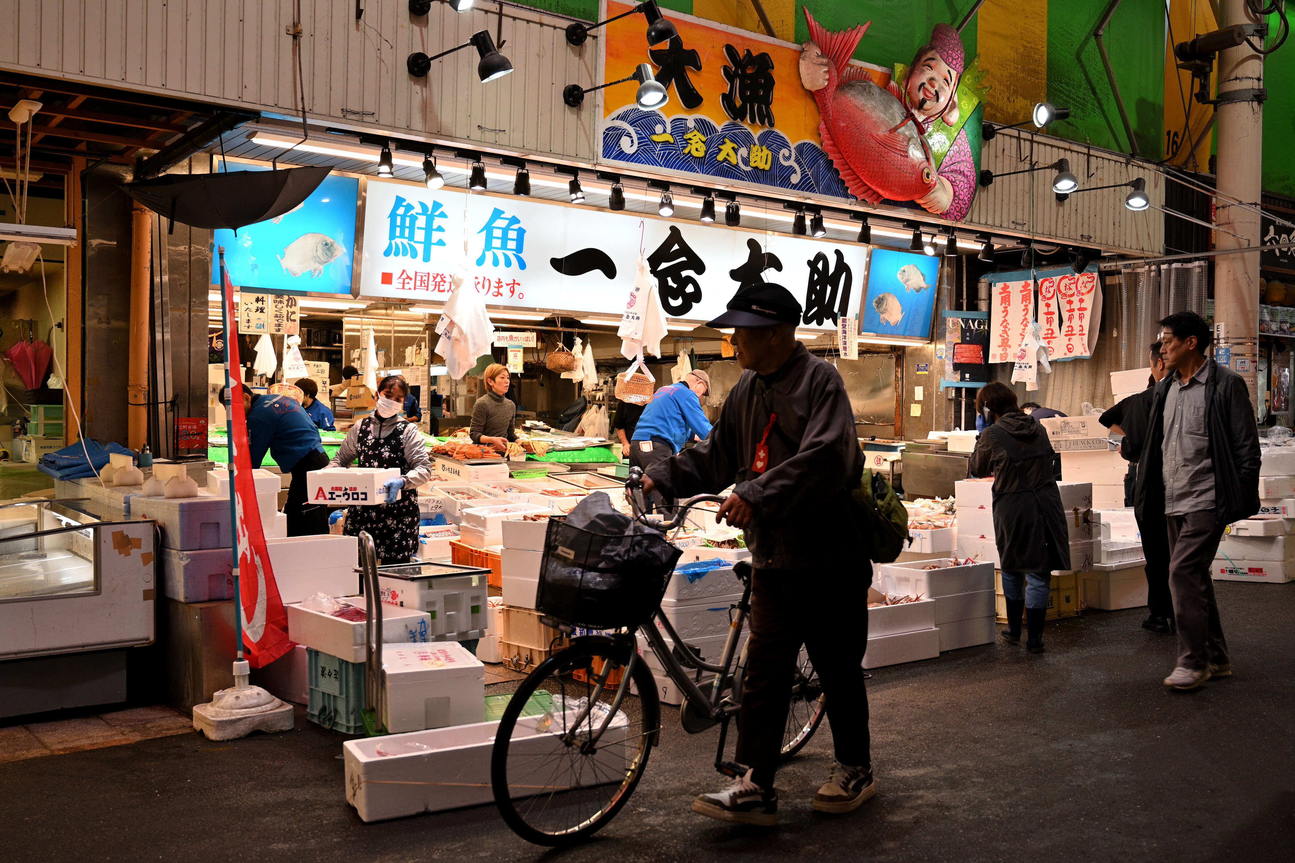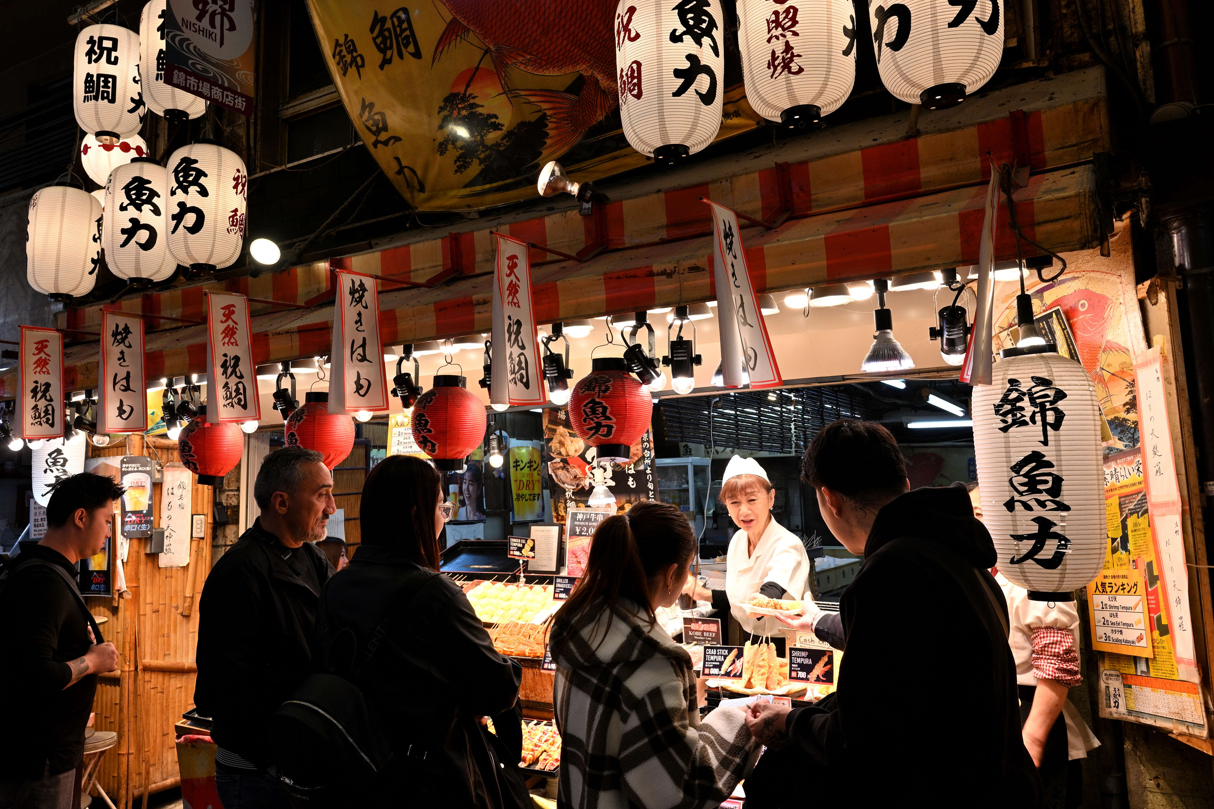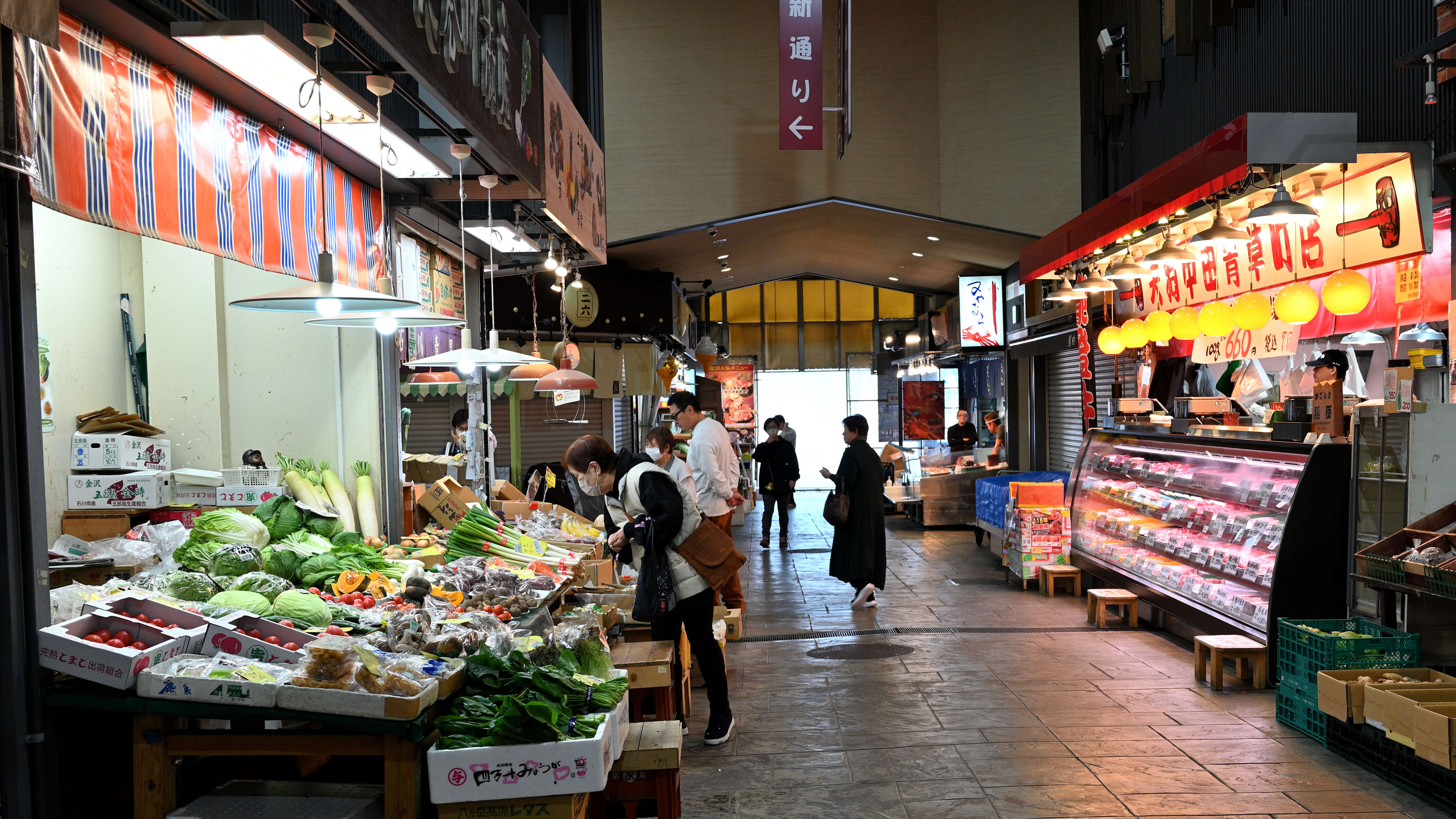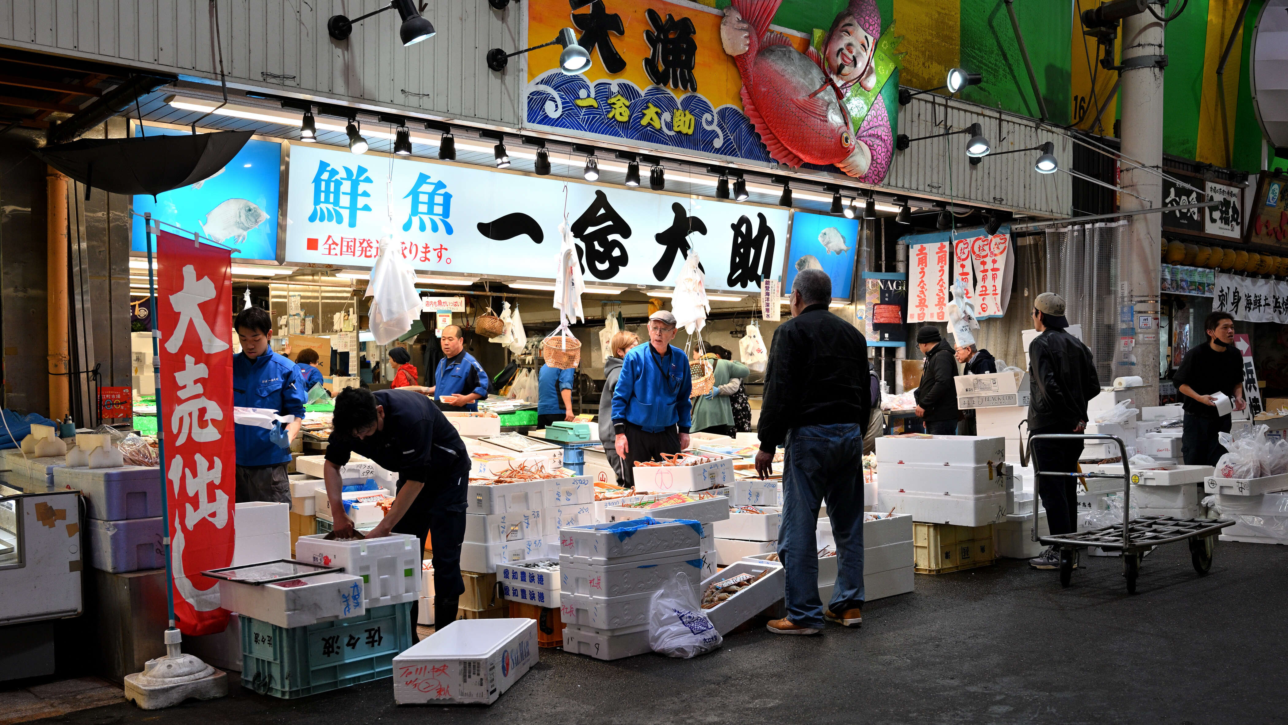 Der Tag beginnt entspannt im Hotel mit Smoothies und Kaffee. Auf dem Omichō-Markt herrscht dichtes Gedränge, Händler verkaufen Fisch und ich esse frisches Sashimi. Nach einem weiteren Izakaya-Lunch fotografiere ich erneut den Oyama-Schrein und den Gyokusenin Maru Garten.