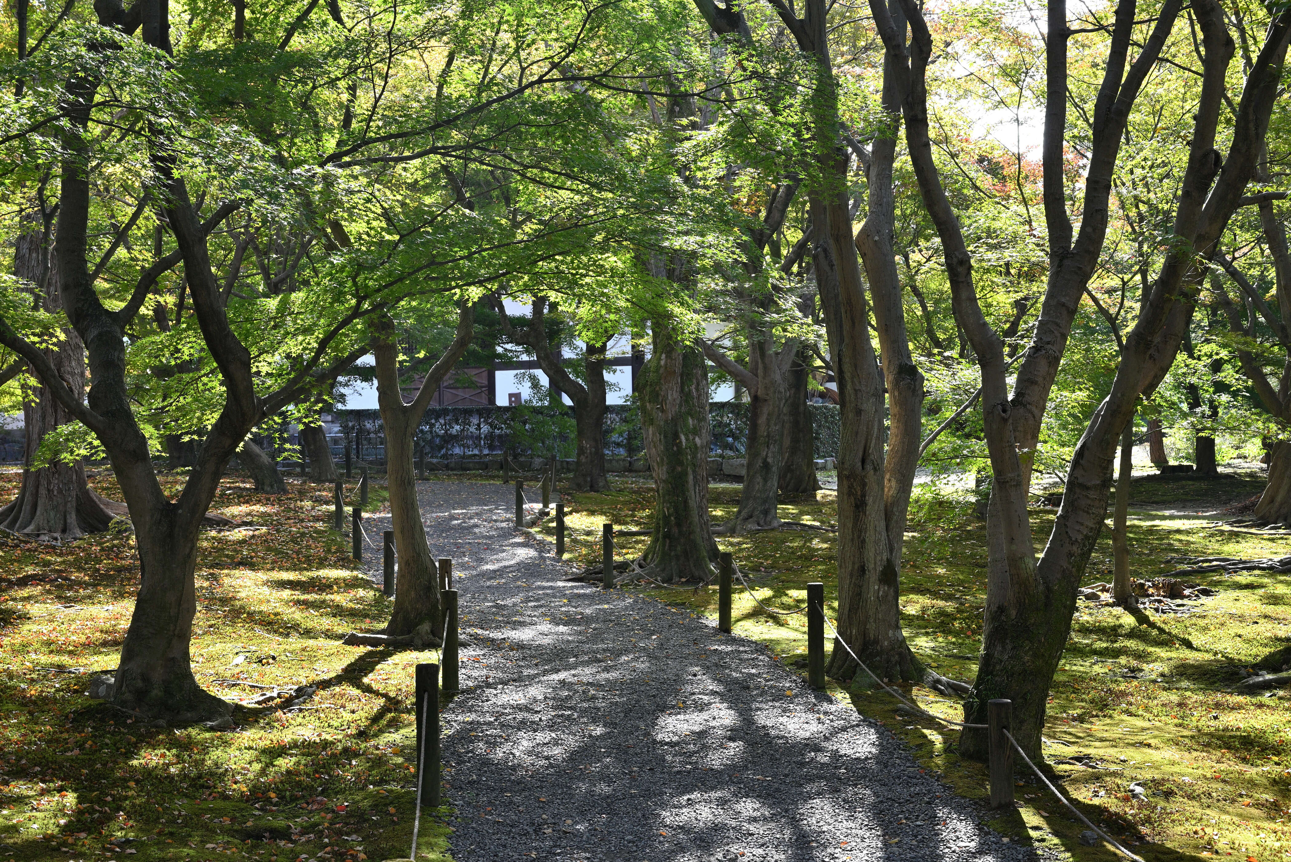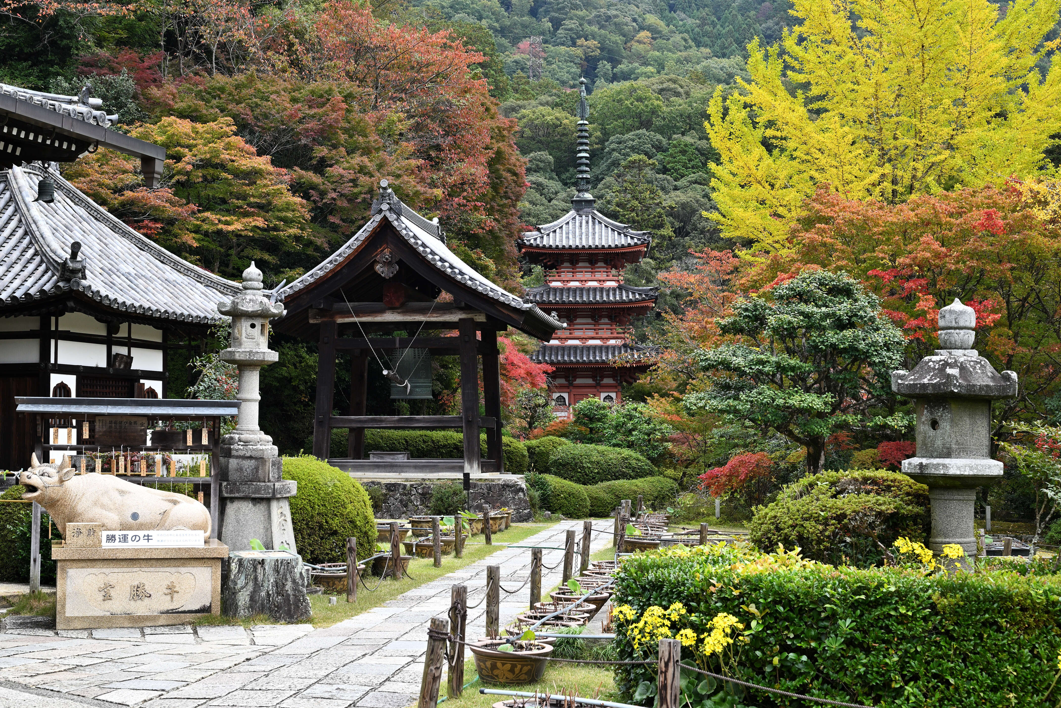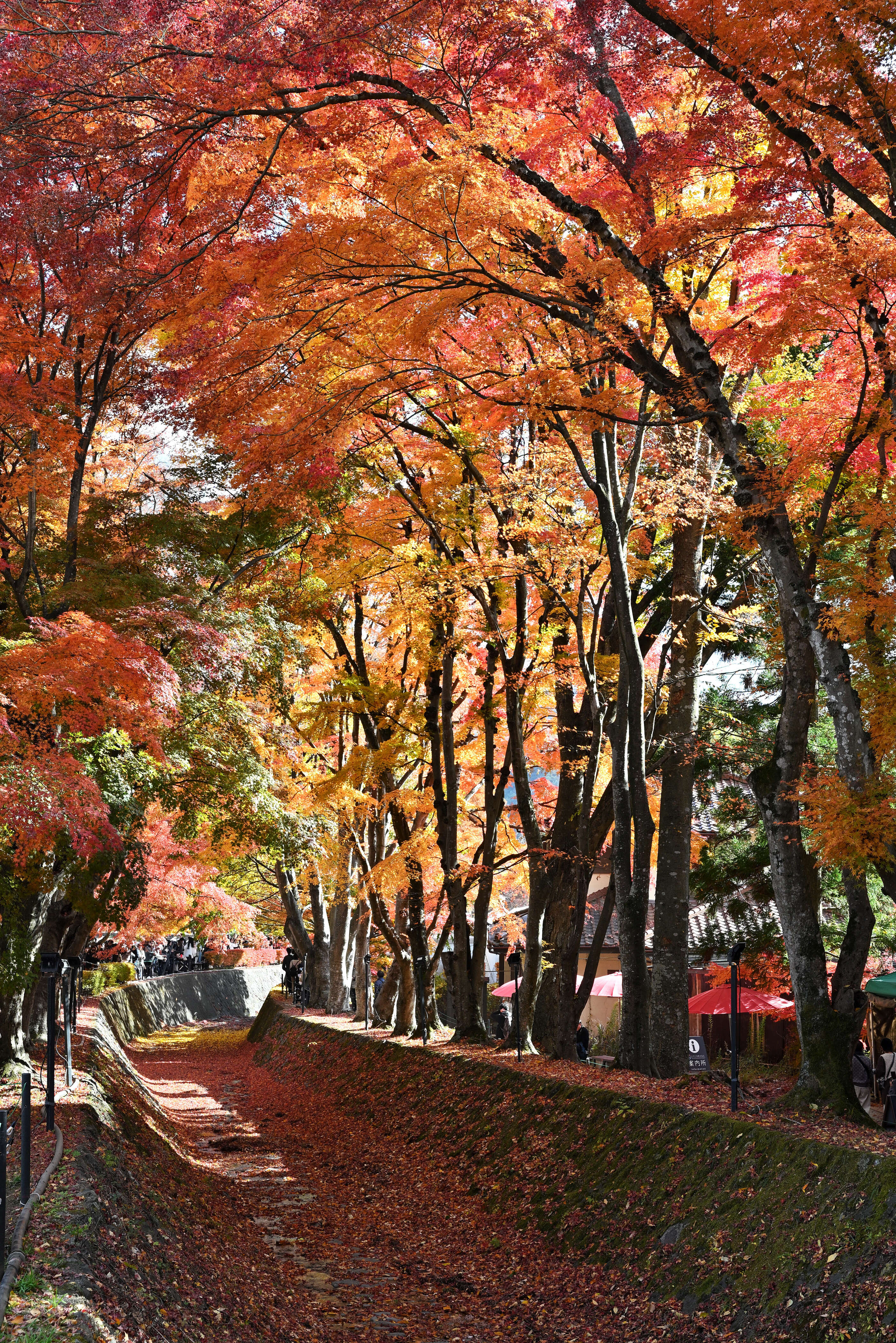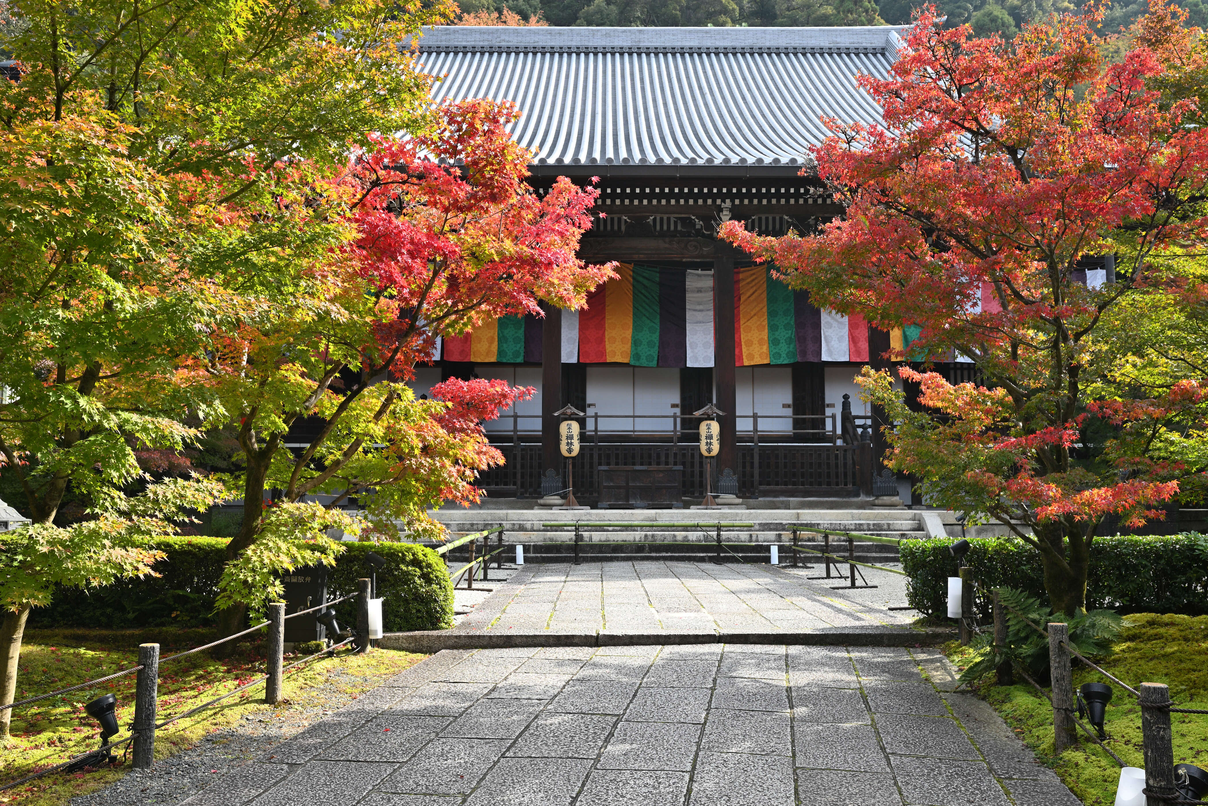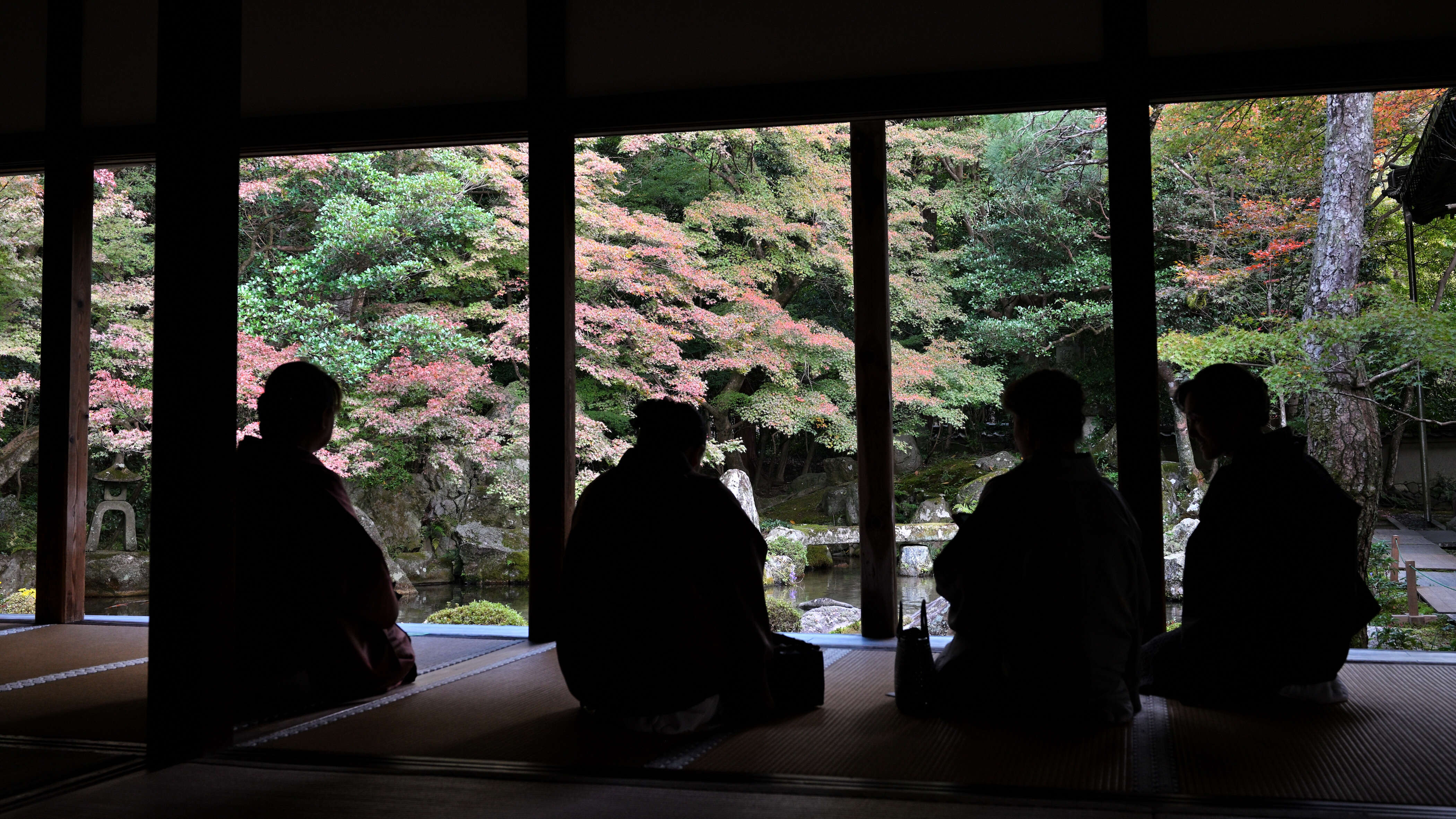Im Enkō-ji Tempel eröffnen offene Räume wunderschöne Blicke auf herbstliche Gärten. Der Rurikō-in Tempel begeistert mit Spiegelungen der Bäume auf einem Tisch im Innenraum. Zufällig entdecke ich den Renge-ji Tempel, ruhig, zenartig, bevor ich Kyoto Station und den Skywalk besuche.