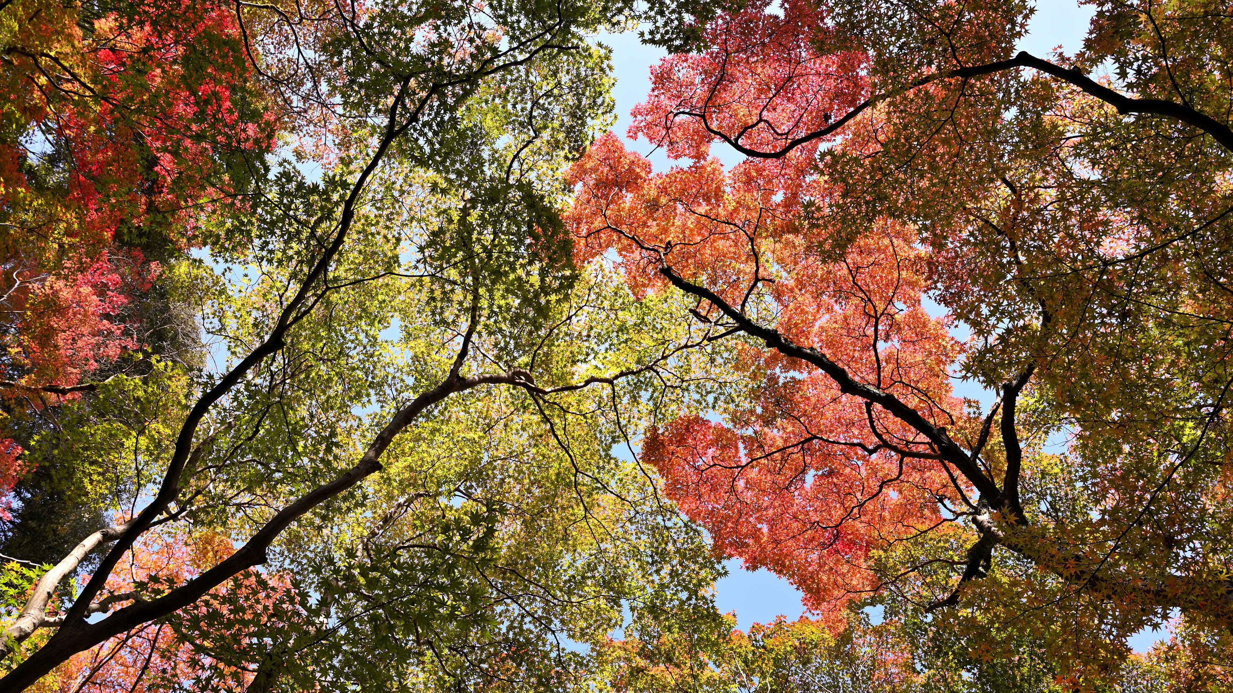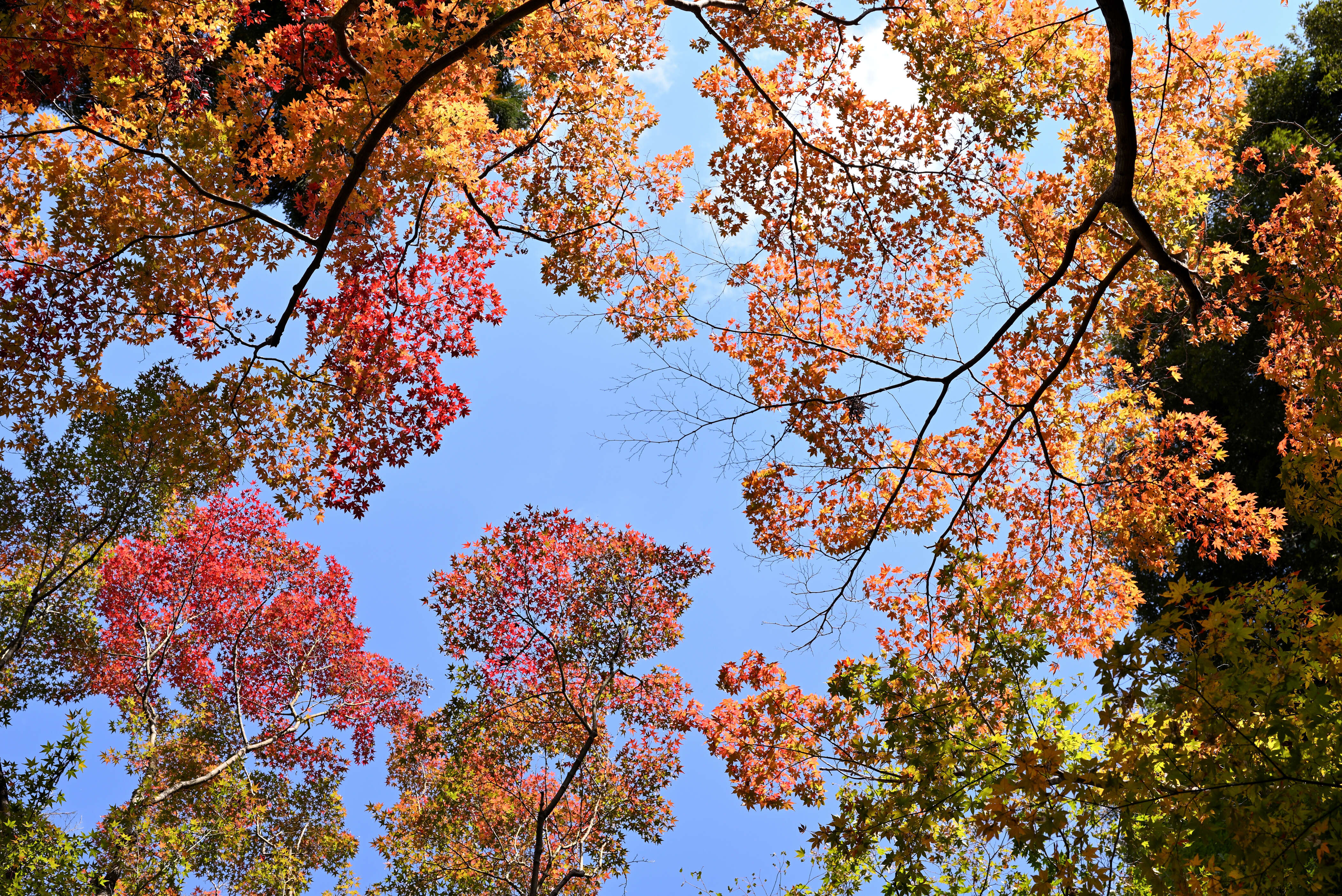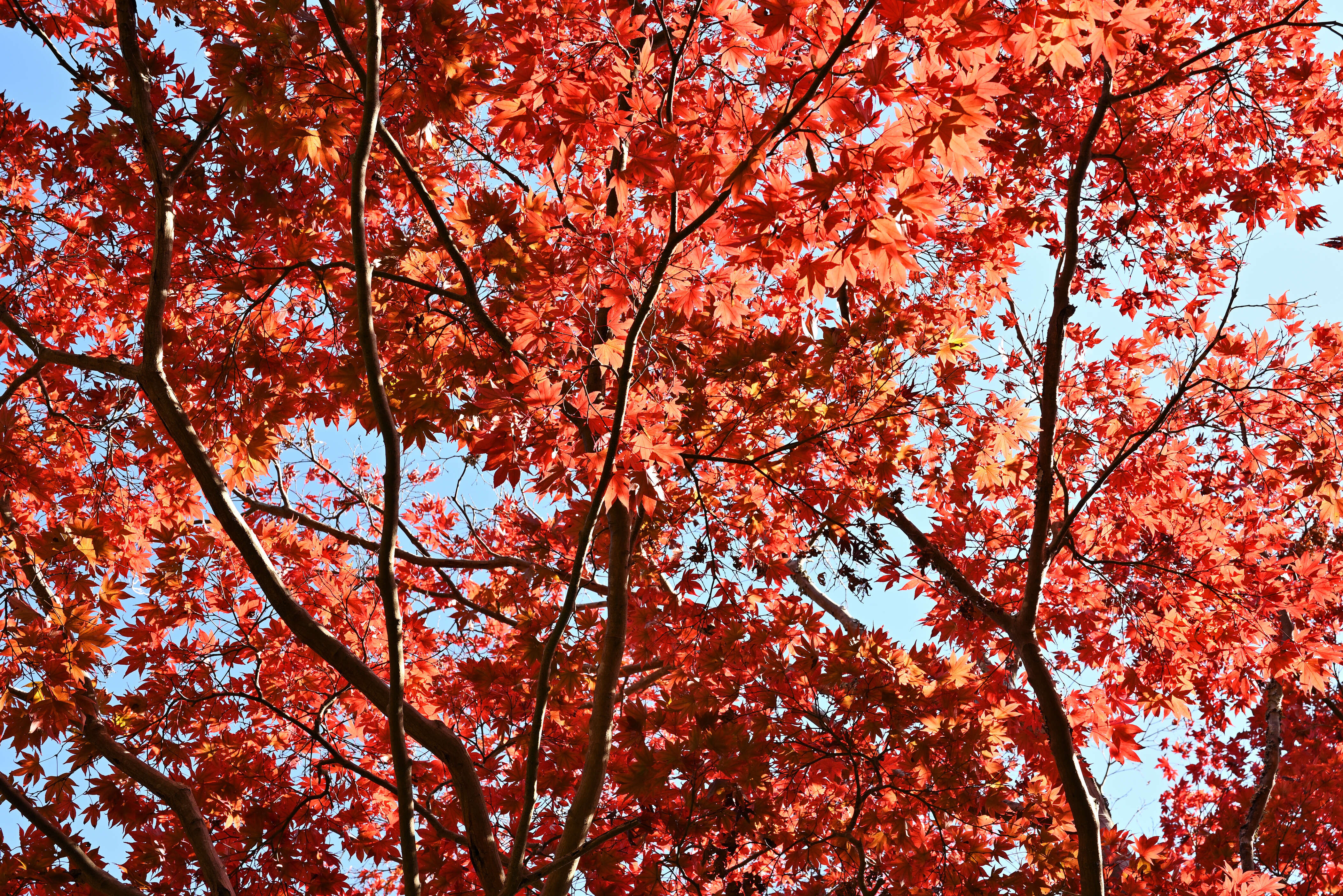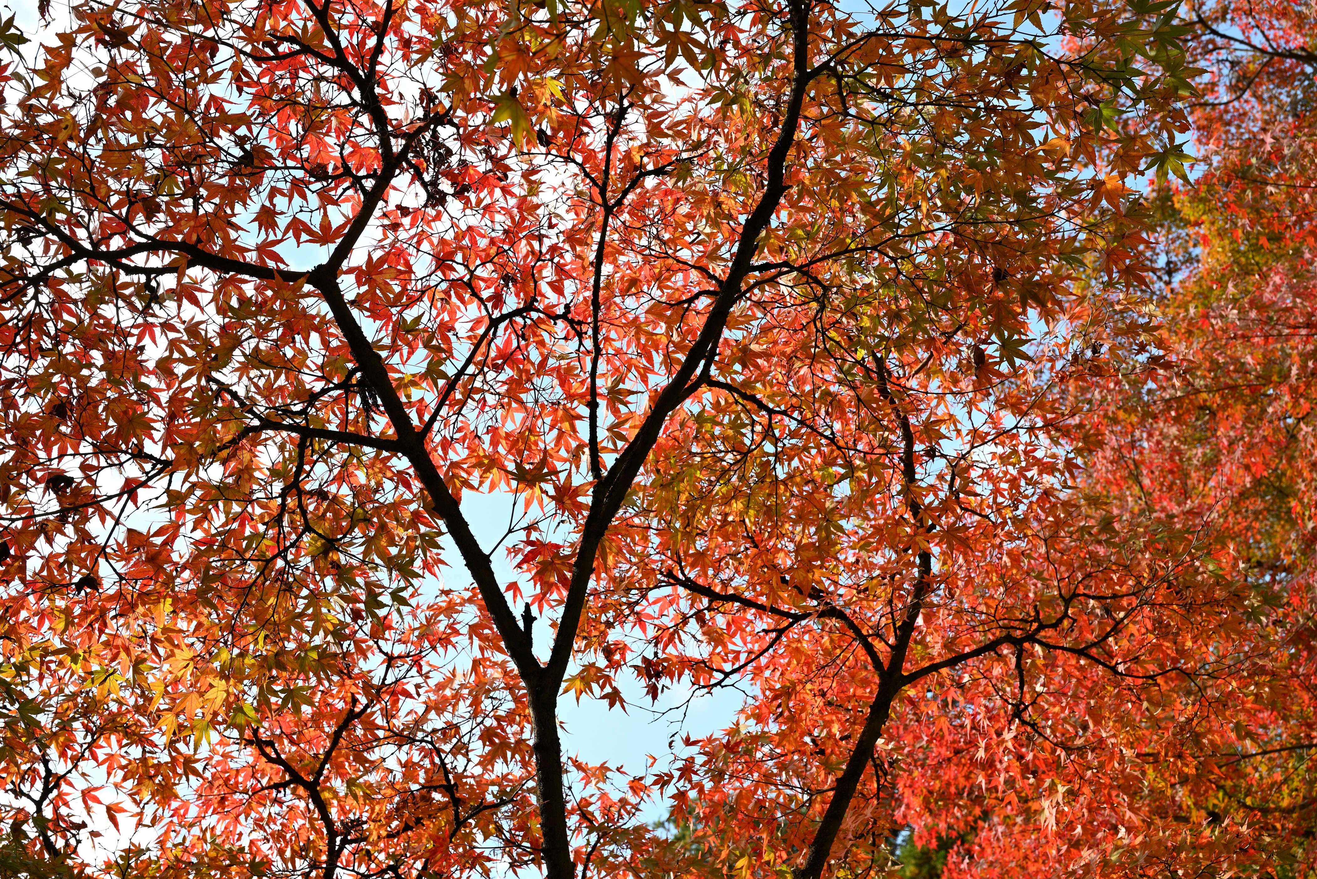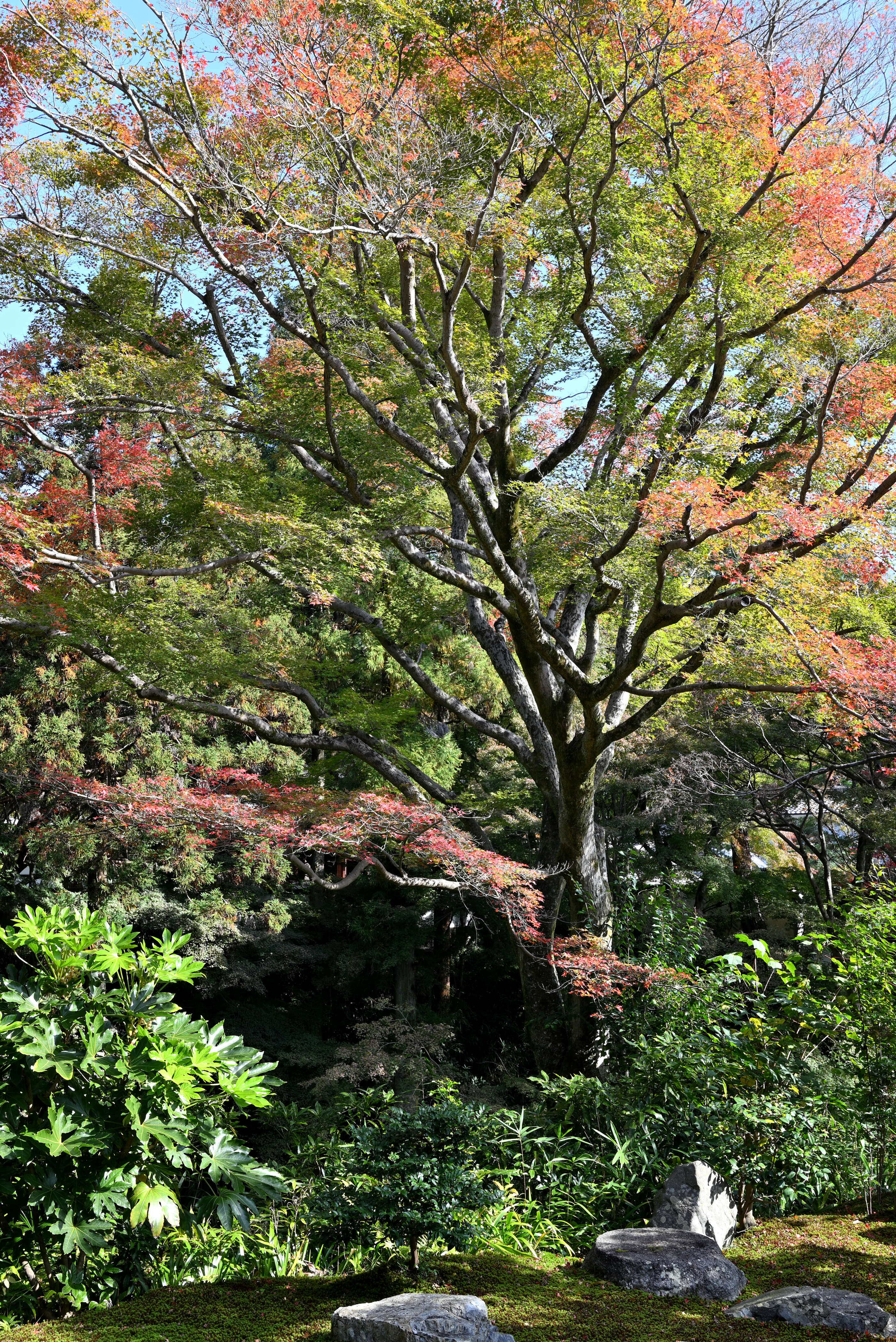 Im Enkō-ji Tempel eröffnen offene Räume wunderschöne Blicke auf herbstliche Gärten. Der Rurikō-in Tempel begeistert mit Spiegelungen der Bäume auf einem Tisch im Innenraum. Zufällig entdecke ich den Renge-ji Tempel, ruhig, zenartig, bevor ich Kyoto Station und den Skywalk besuche.