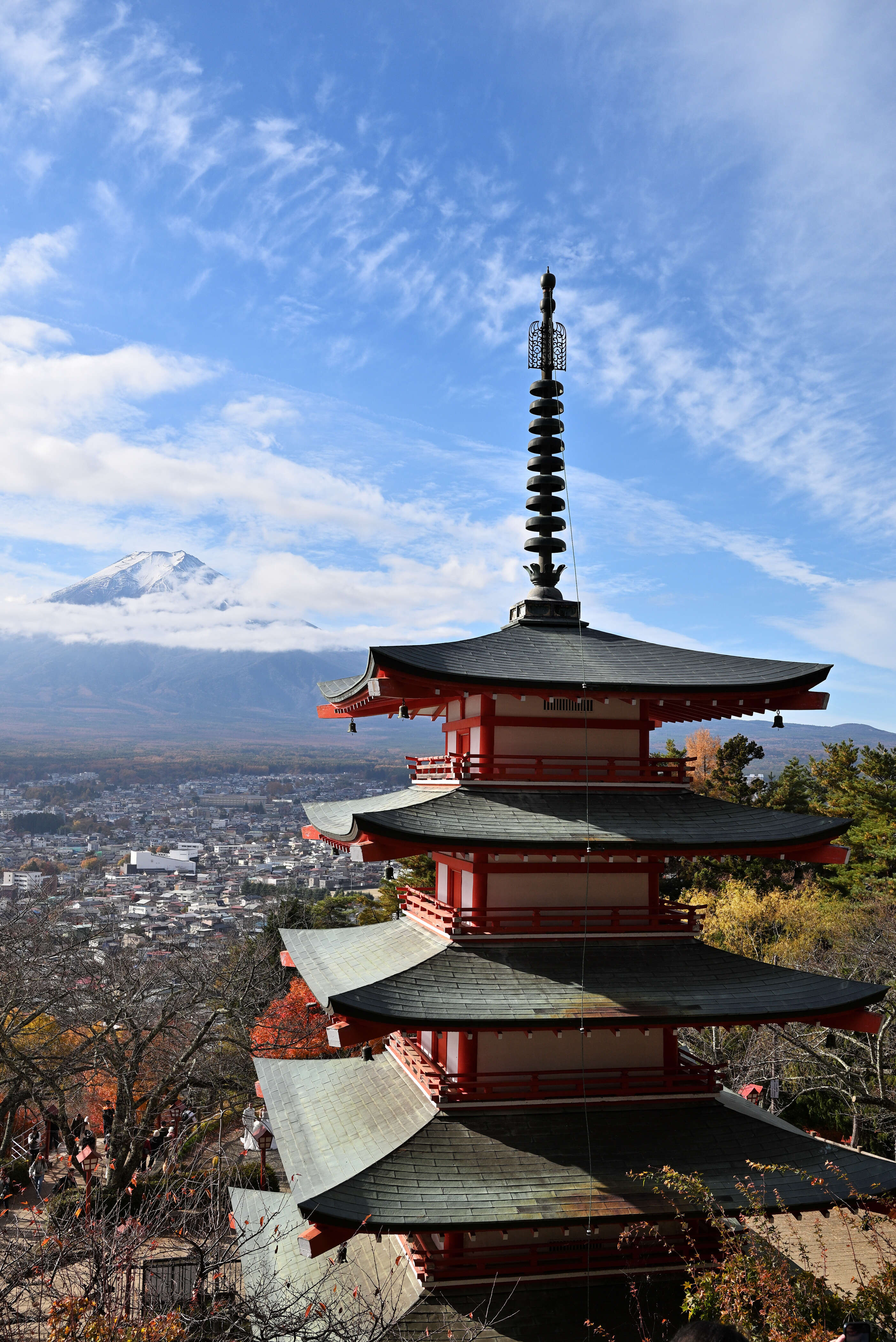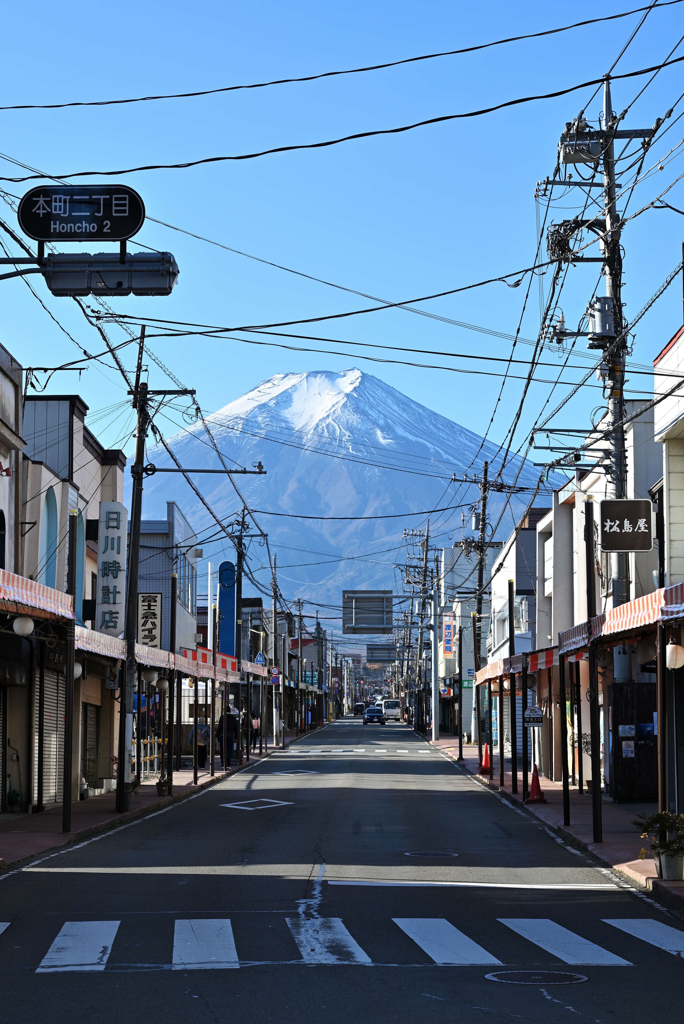 Zum Sonnenaufgang stehe ich am Sedoyama View Deck. Nach dem Frühstück geht es zur Chureito-Pagode, bevor ab 10 Uhr die Massen eintreffen. Ich radle zum Kawaguchi-See mit fantastischen Fuji-Blicken und fotografiere später erneut die Straßen von Fujiyoshida.