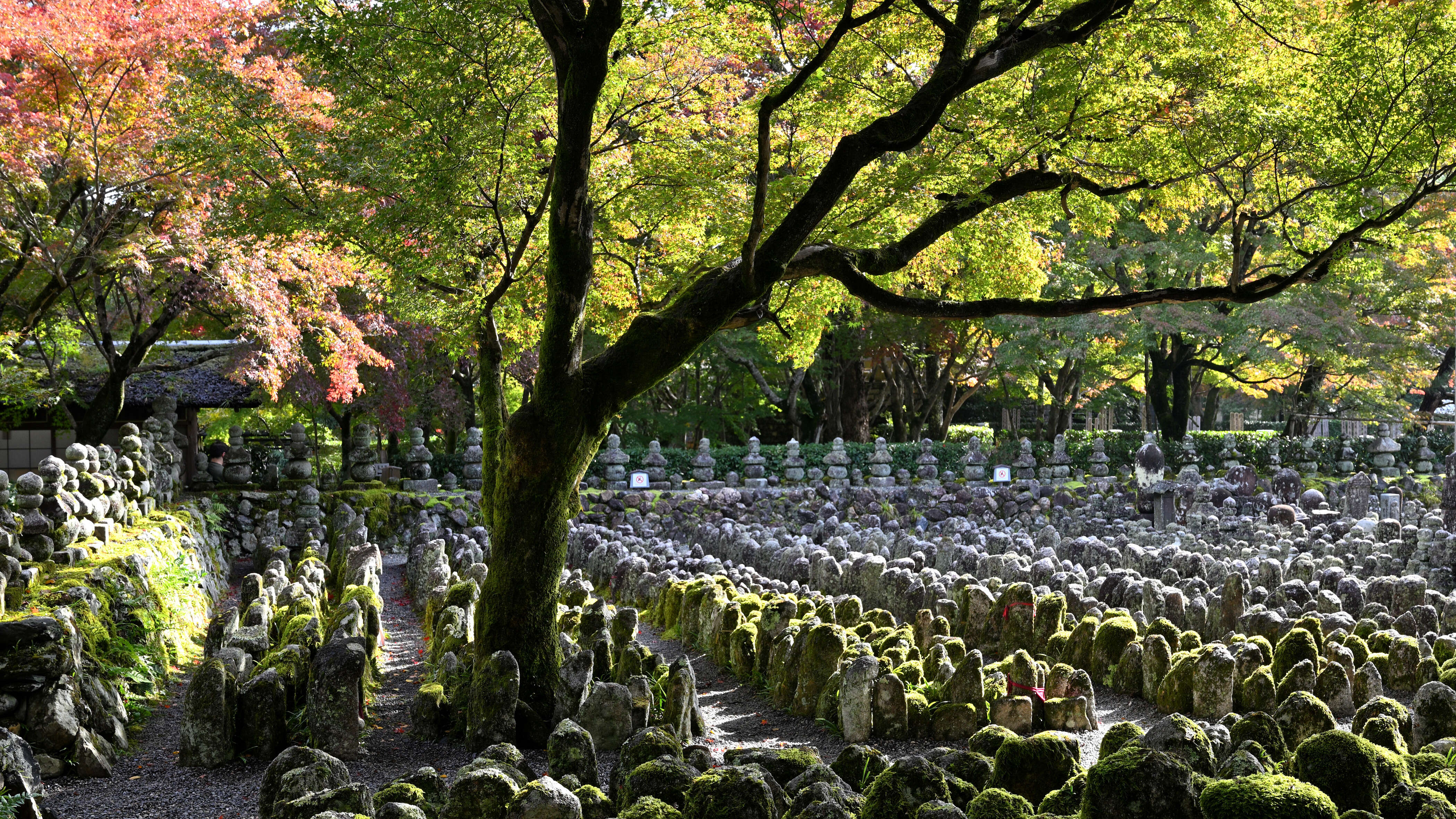 In Arashiyama besuche ich den Adashino Nenbutsu-ji Tempel mit Bambuswald und vielen Steinfiguren. Der kleine Giō-ji Tempel liegt versteckt im Wald, still und moosig. Danach spaziere ich durch Straßen im Kita-ku Ward. Am Nachmittag der Kinkaku-ji Tempel (Goldener Pavillon): viel Wind, unruhiges Wasser, extrem viele Besucher – aber zwischendurch perfekte Spiegelungen.