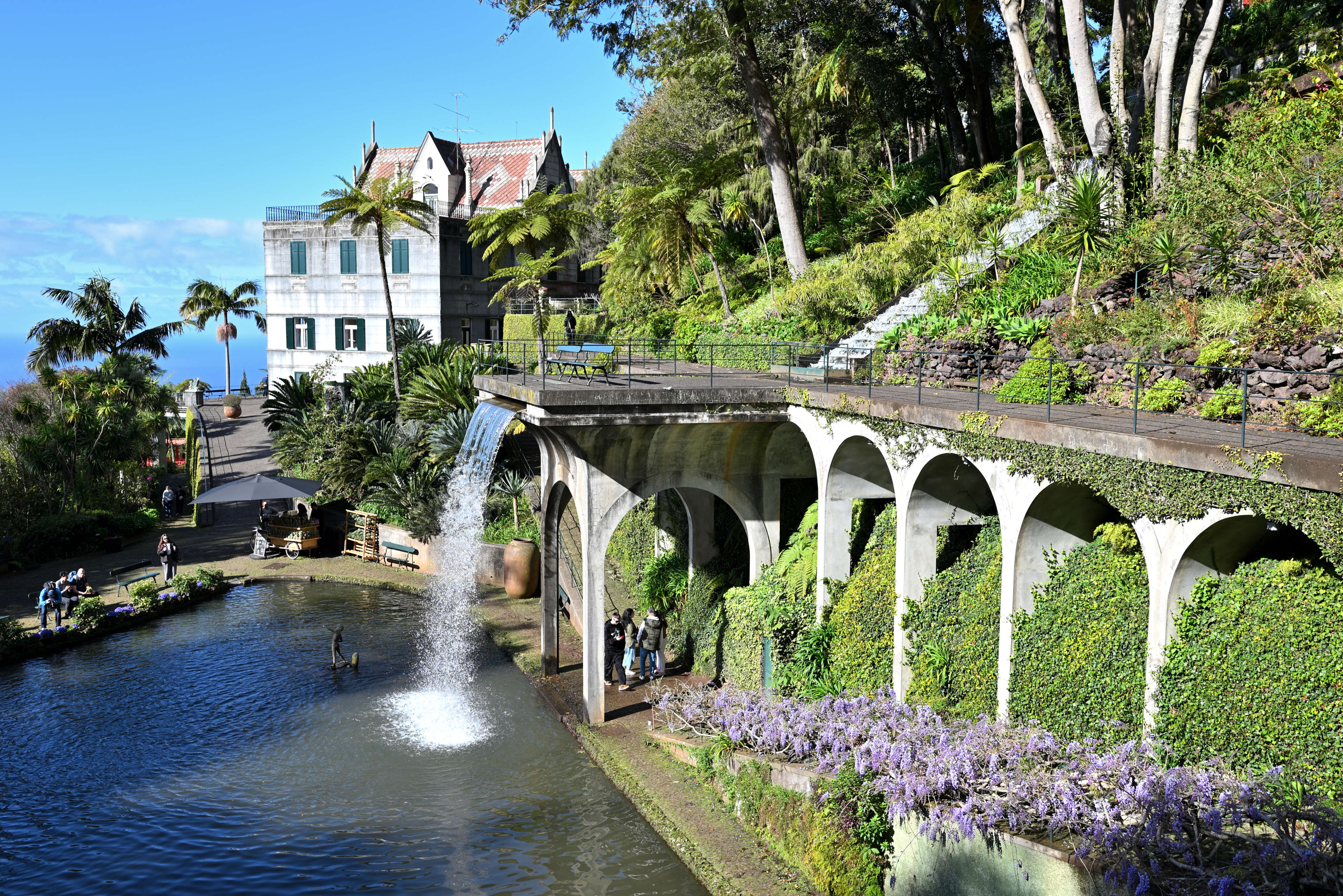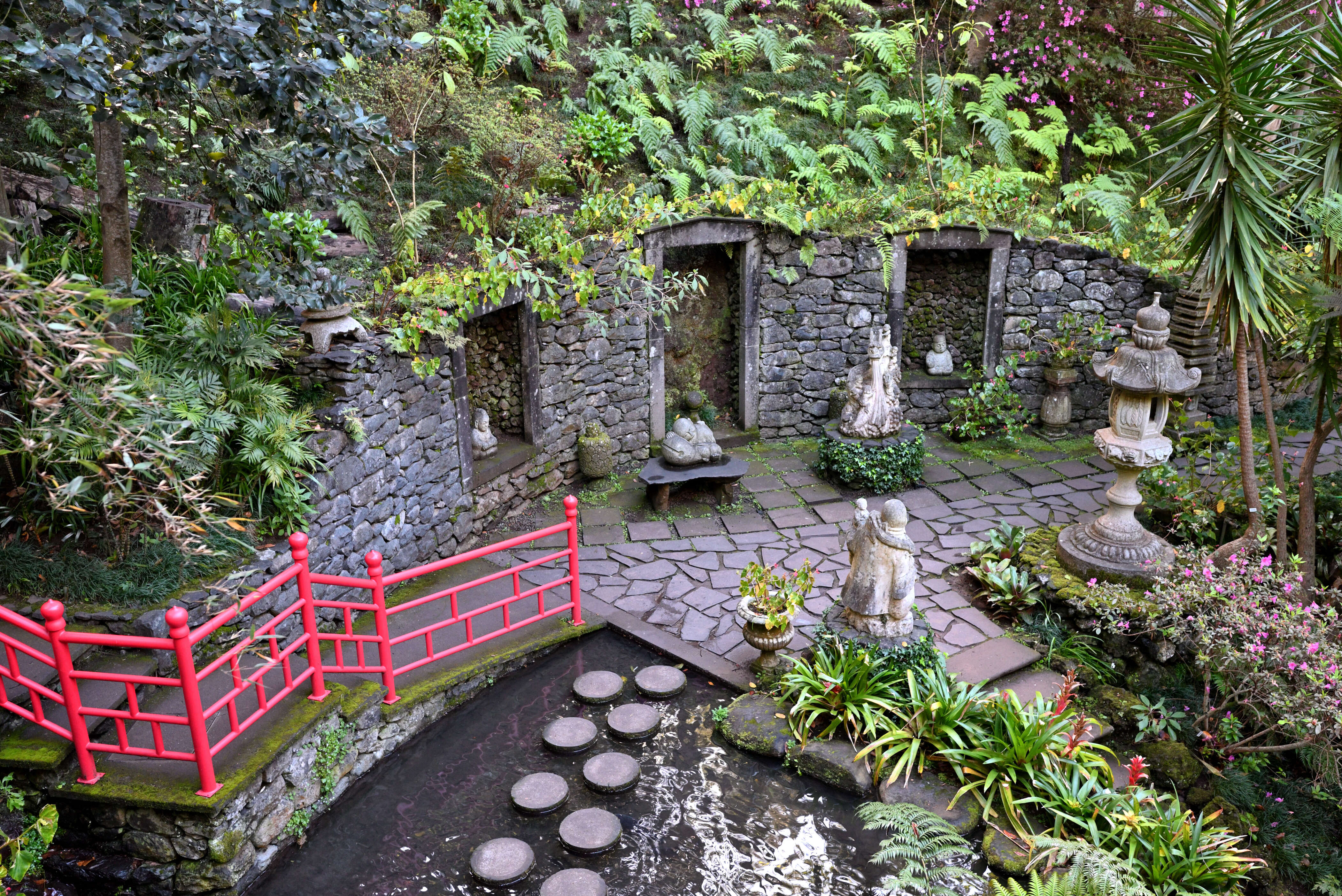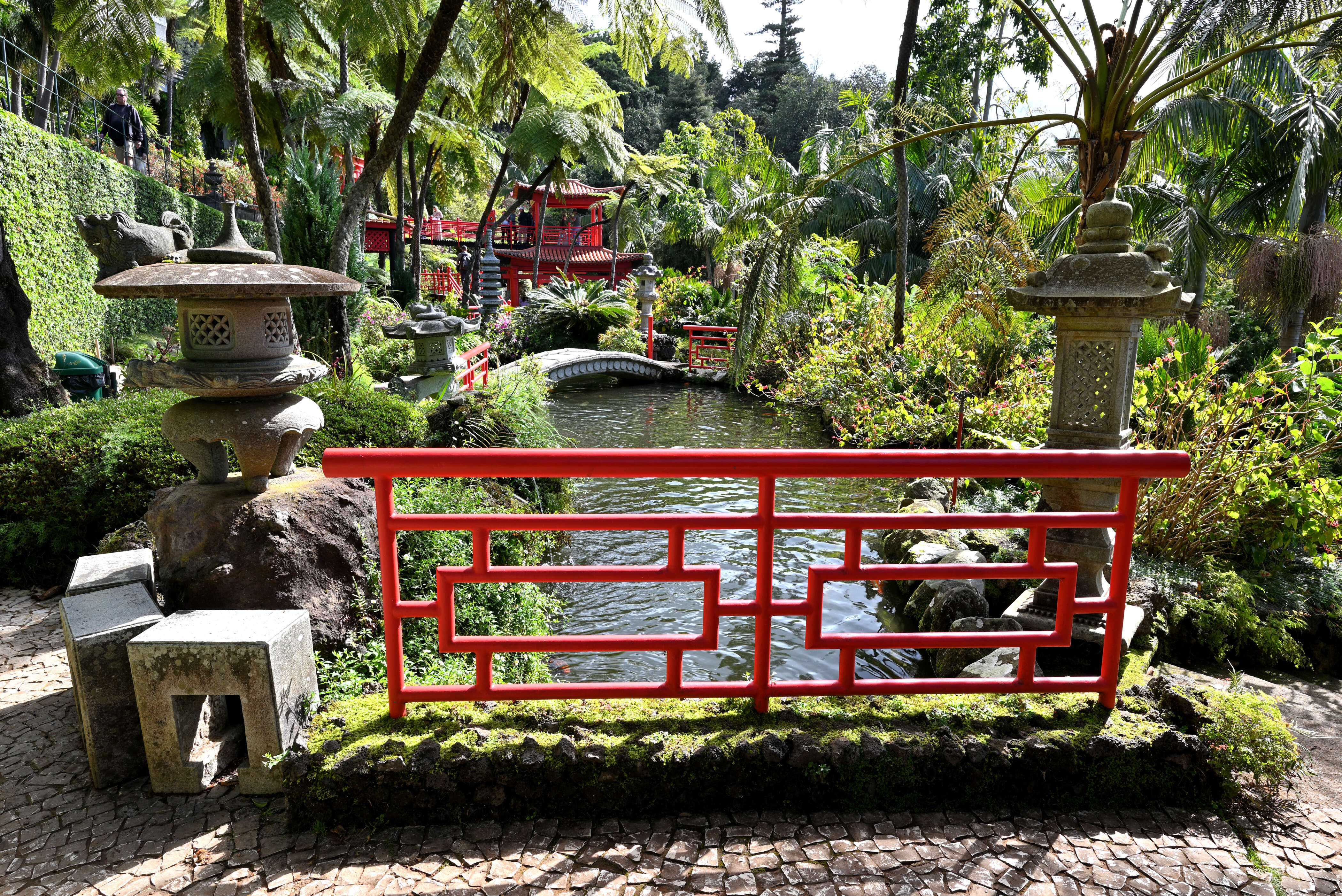 Der Tag beginnt mit einem Höhenflug – allerdings nicht per Seilbahn, sondern auf vier Rädern. Über steile Straßen geht es hinauf zum Monte Palace. Der Garten ist eine Reise durch Fernost und die Fantasie: Pagoden, Koi-Teiche, Bambushaine und moosbewachsene Wege – fast schon zu fotogen, um wahr zu sein.
