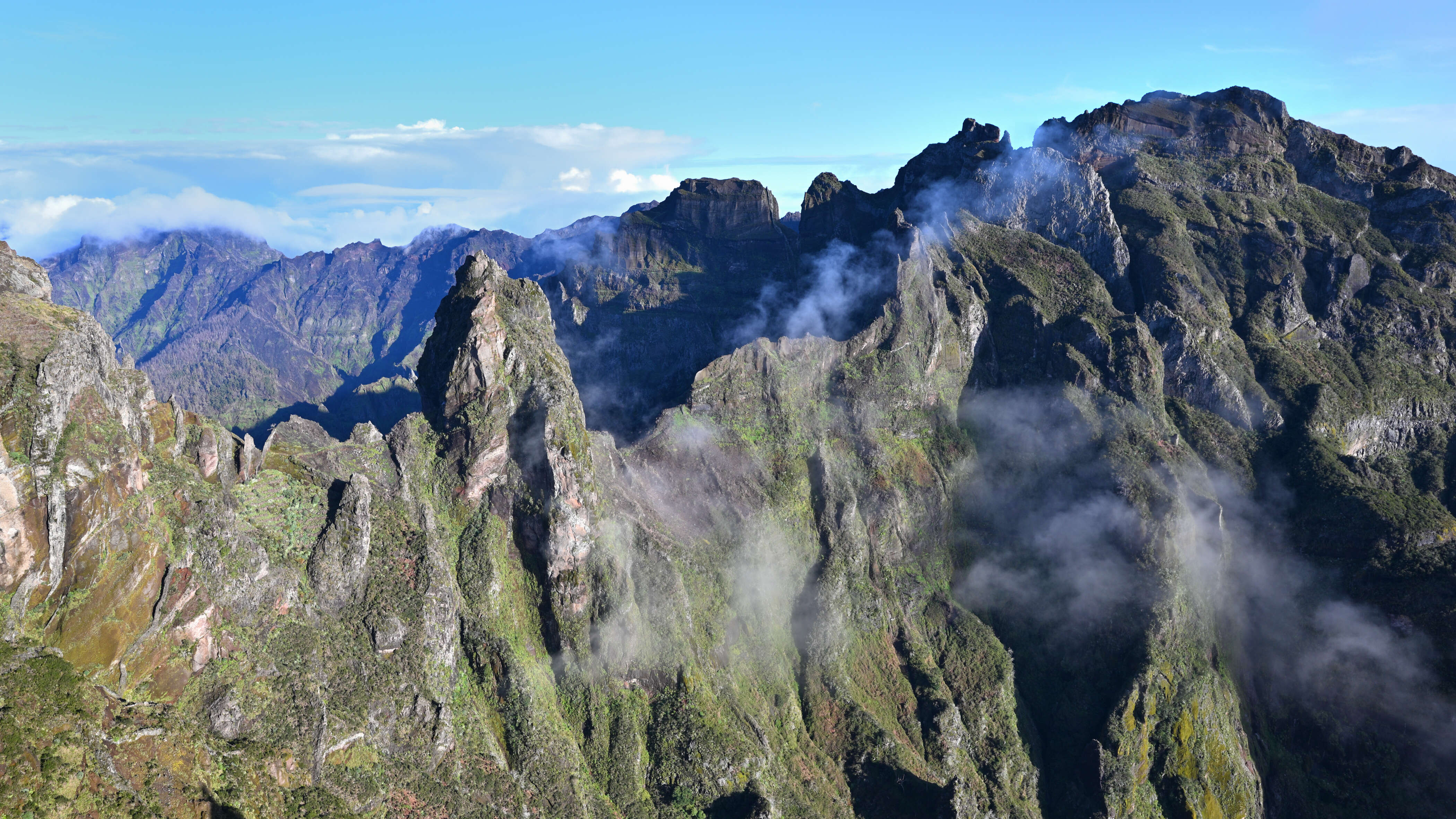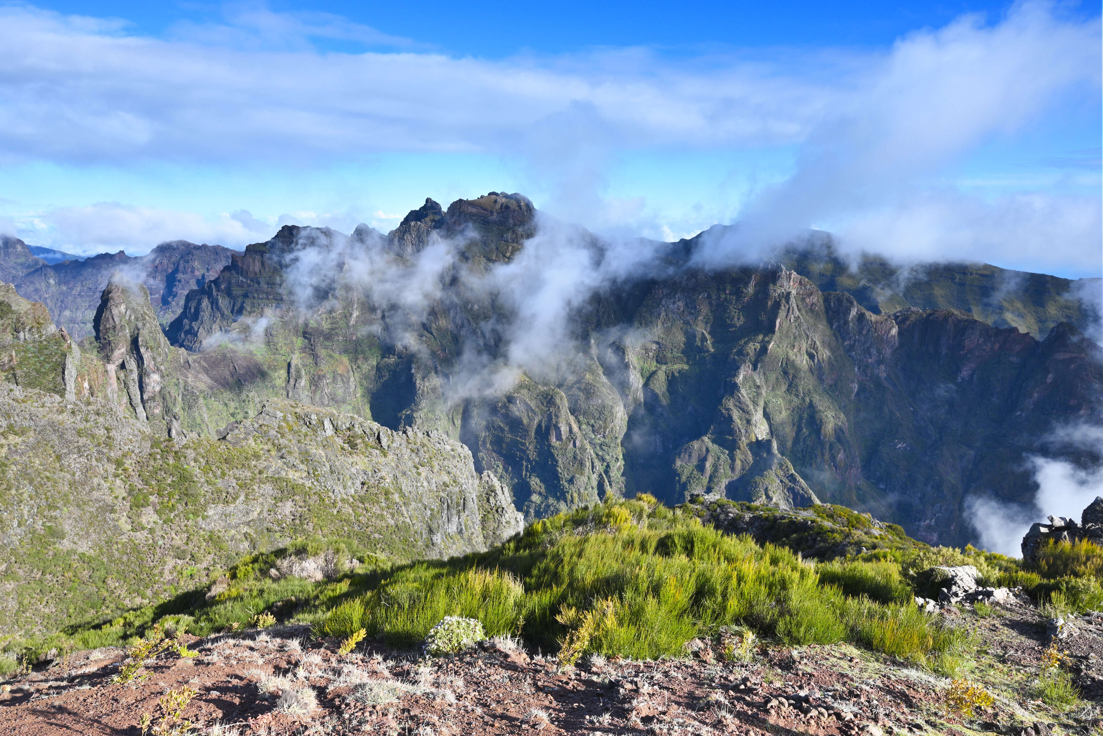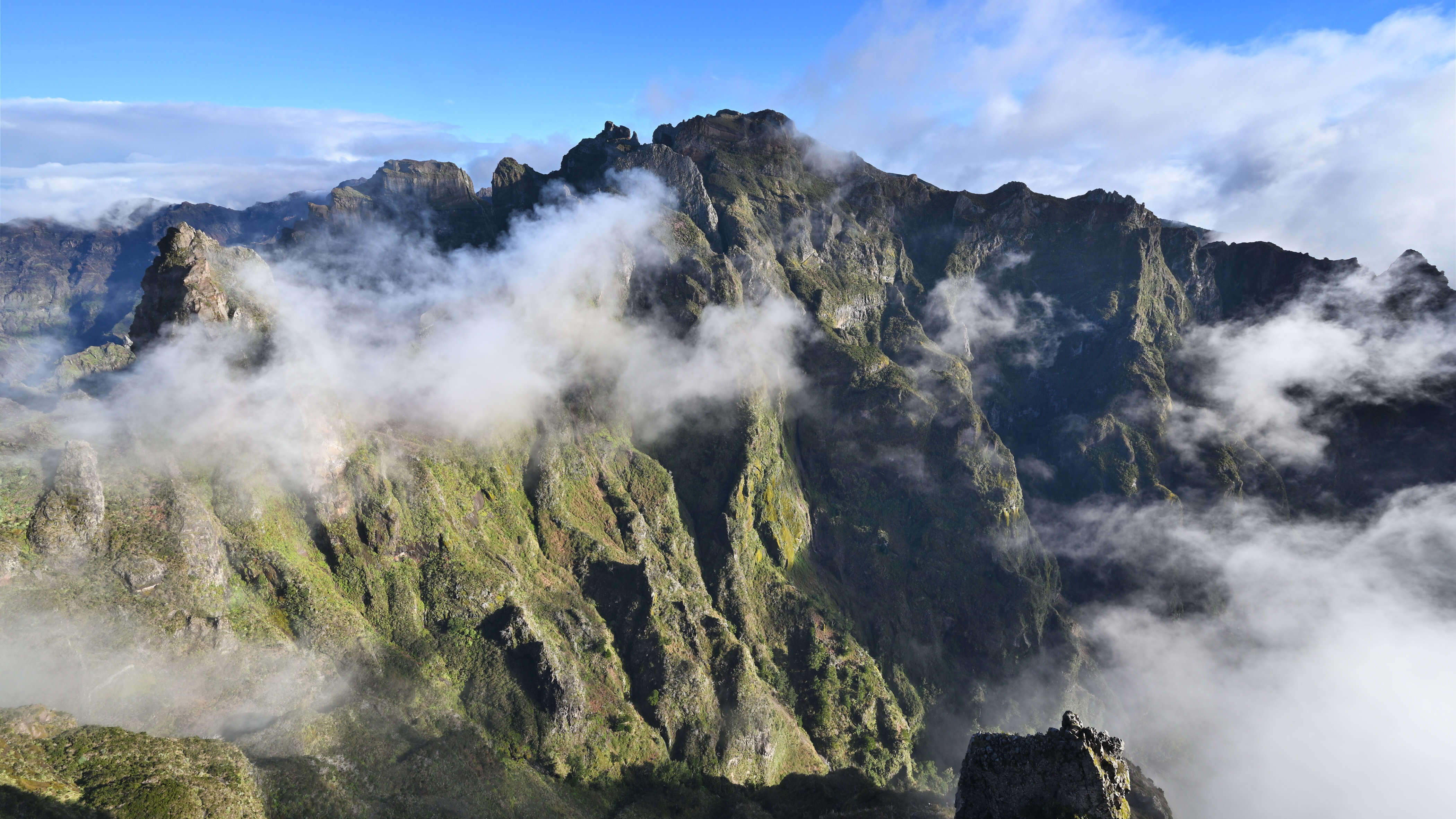 Früh am Morgen starten wir zur Wanderung auf den Pico Ruivo. Noch liegt Stille über den Bergen, als wir den höchsten Punkt der Insel erreichen. Doch kaum sind wir oben, rollen Wolken über die Berge – ein Spiel aus Licht, Wind und Weiß.