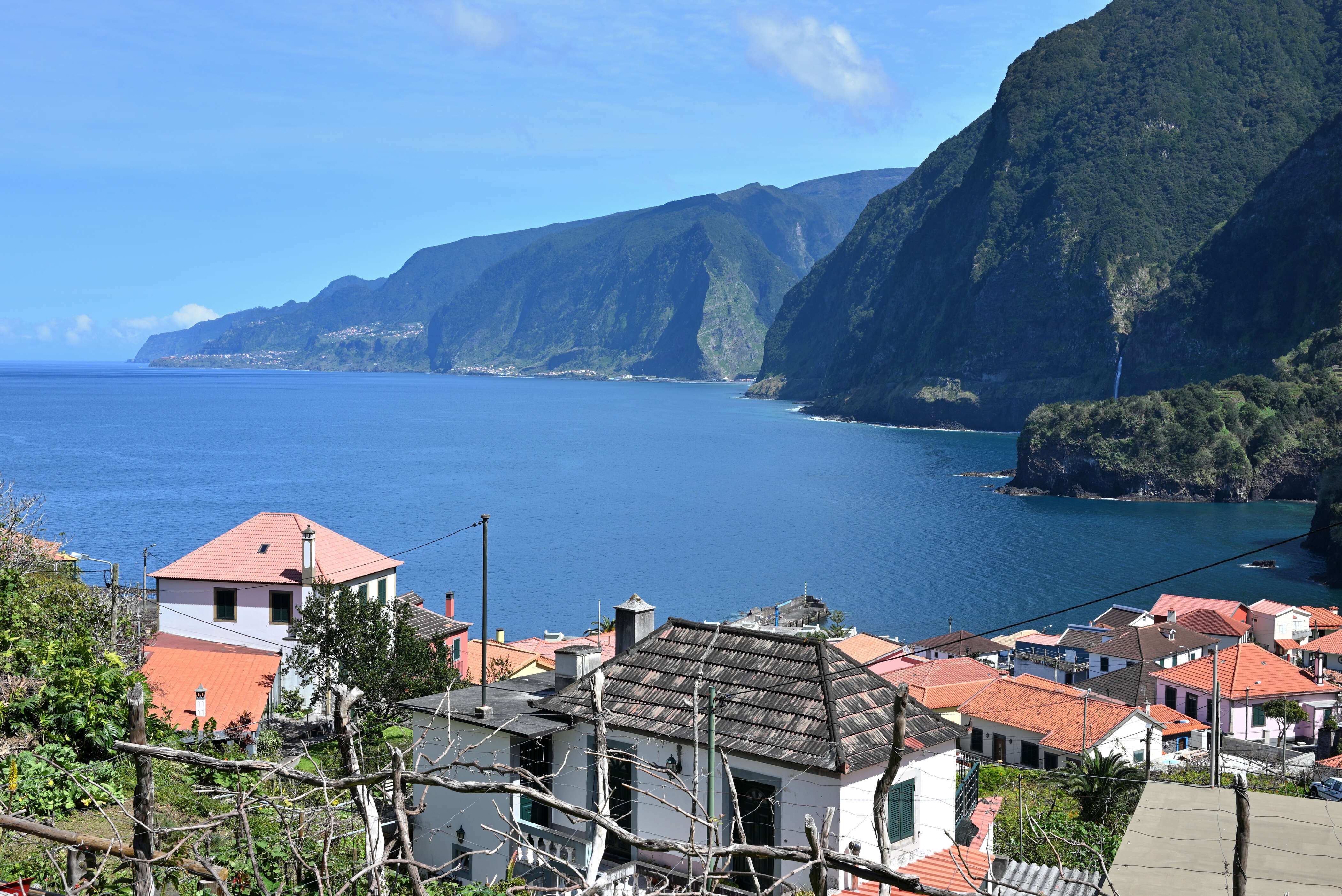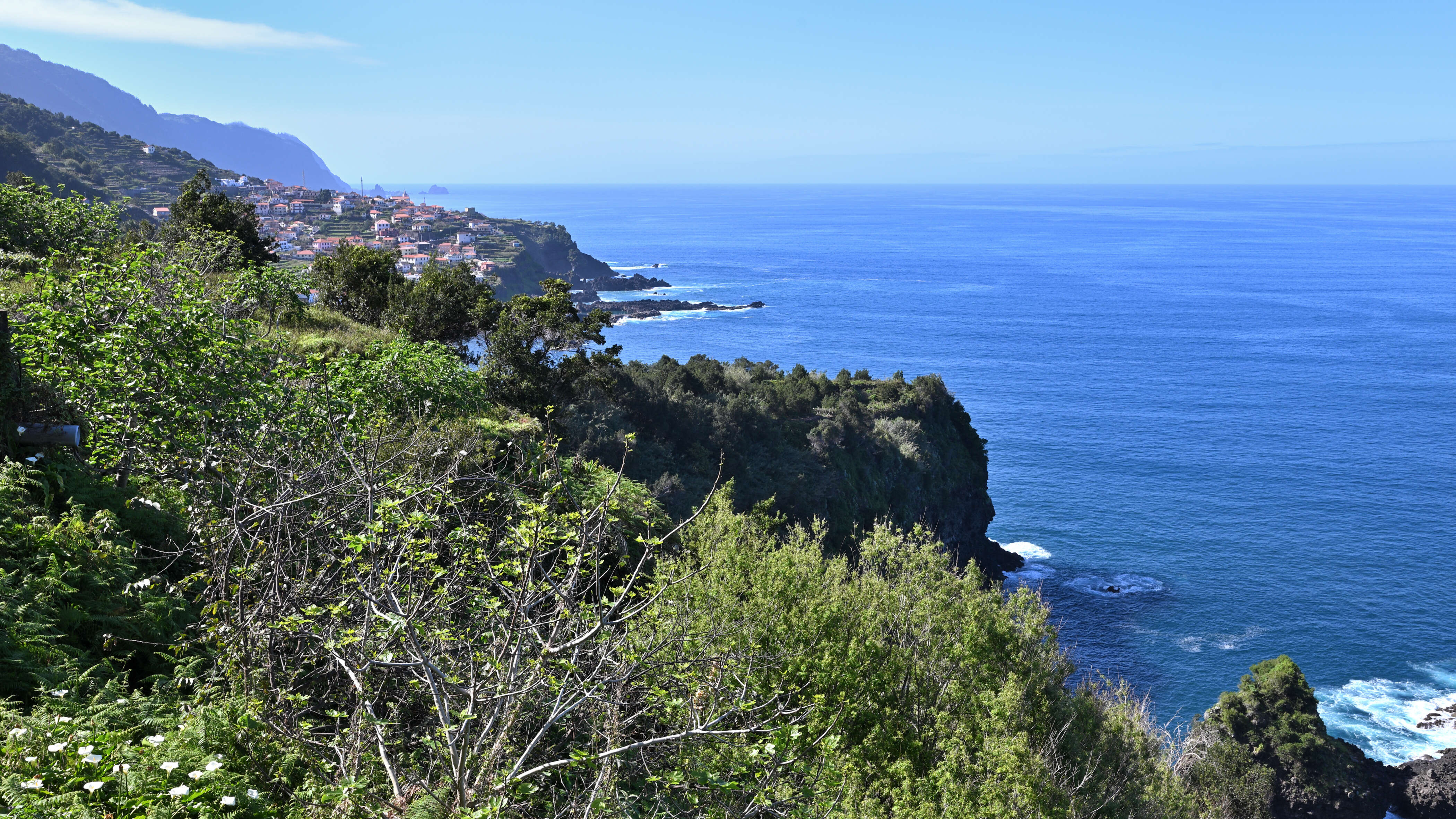 Vom Miradouro do Massapez blicken wir später über das Tal von Paul do Mar, bevor wir die kurvige steile Bergstraße zum Meer herunterfahren. Abends essen wir fangfrischen Fisch in einem kleinen einheimischen Lokal in Madalena do Mar – schlicht, einfach, köstlich.