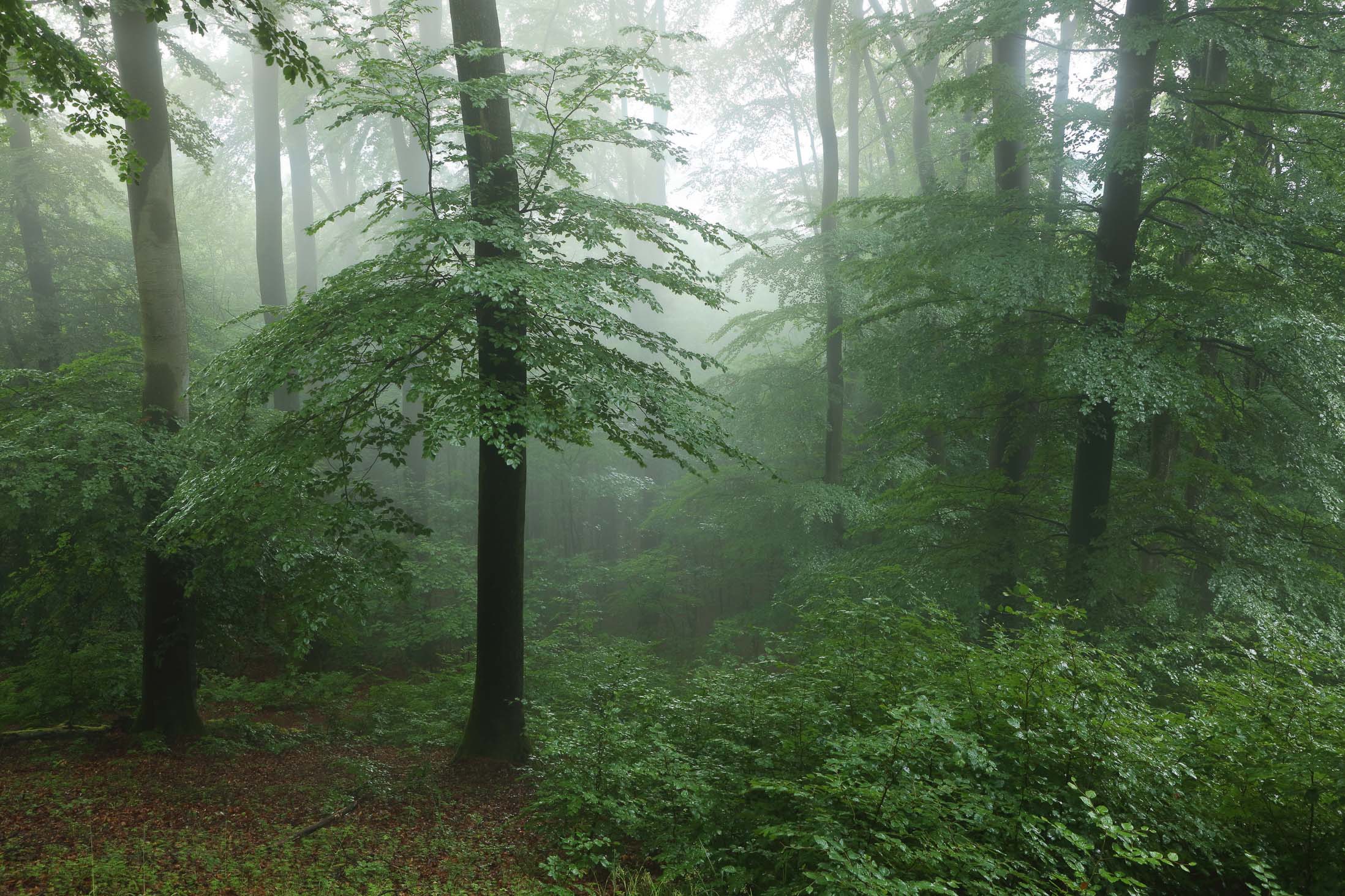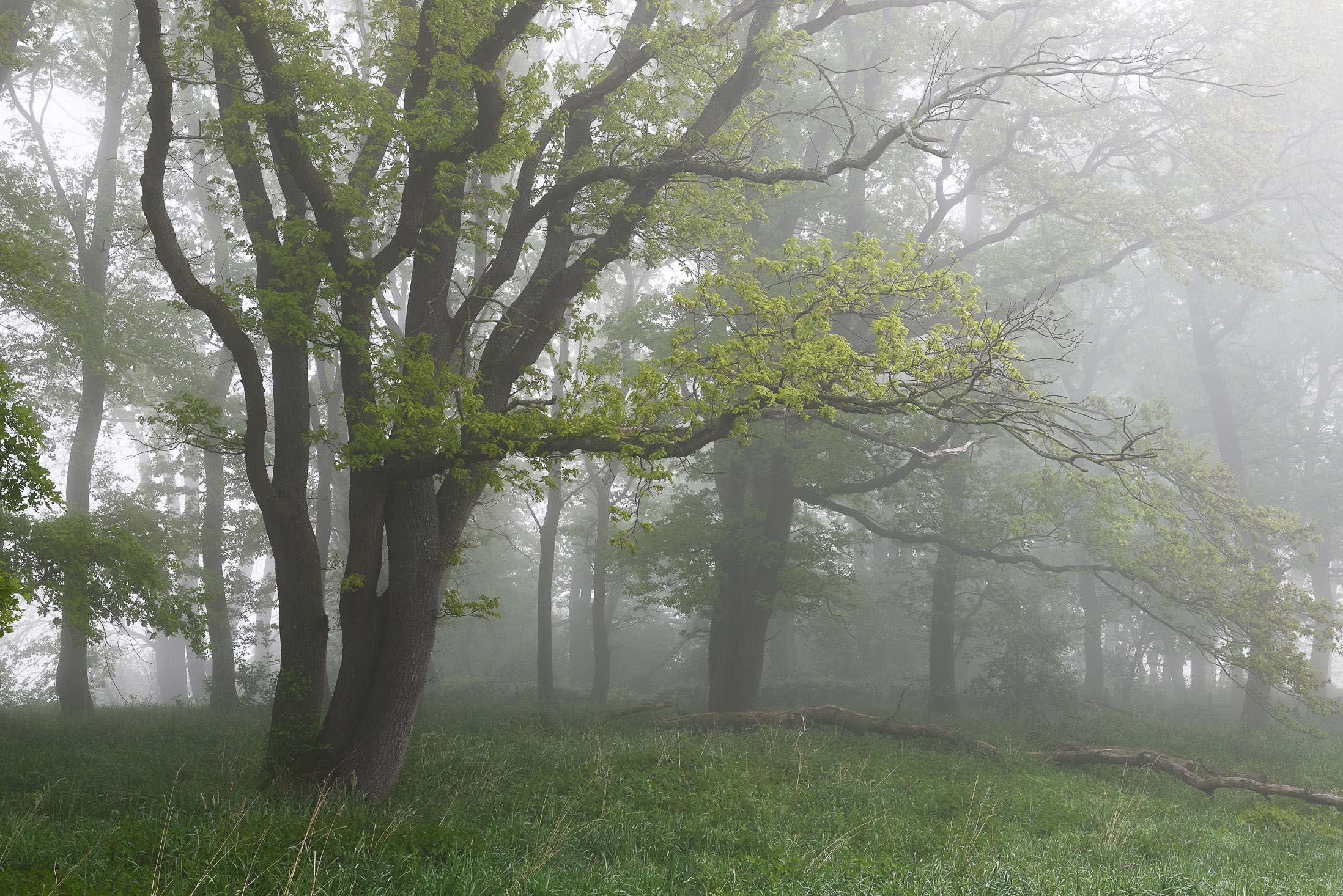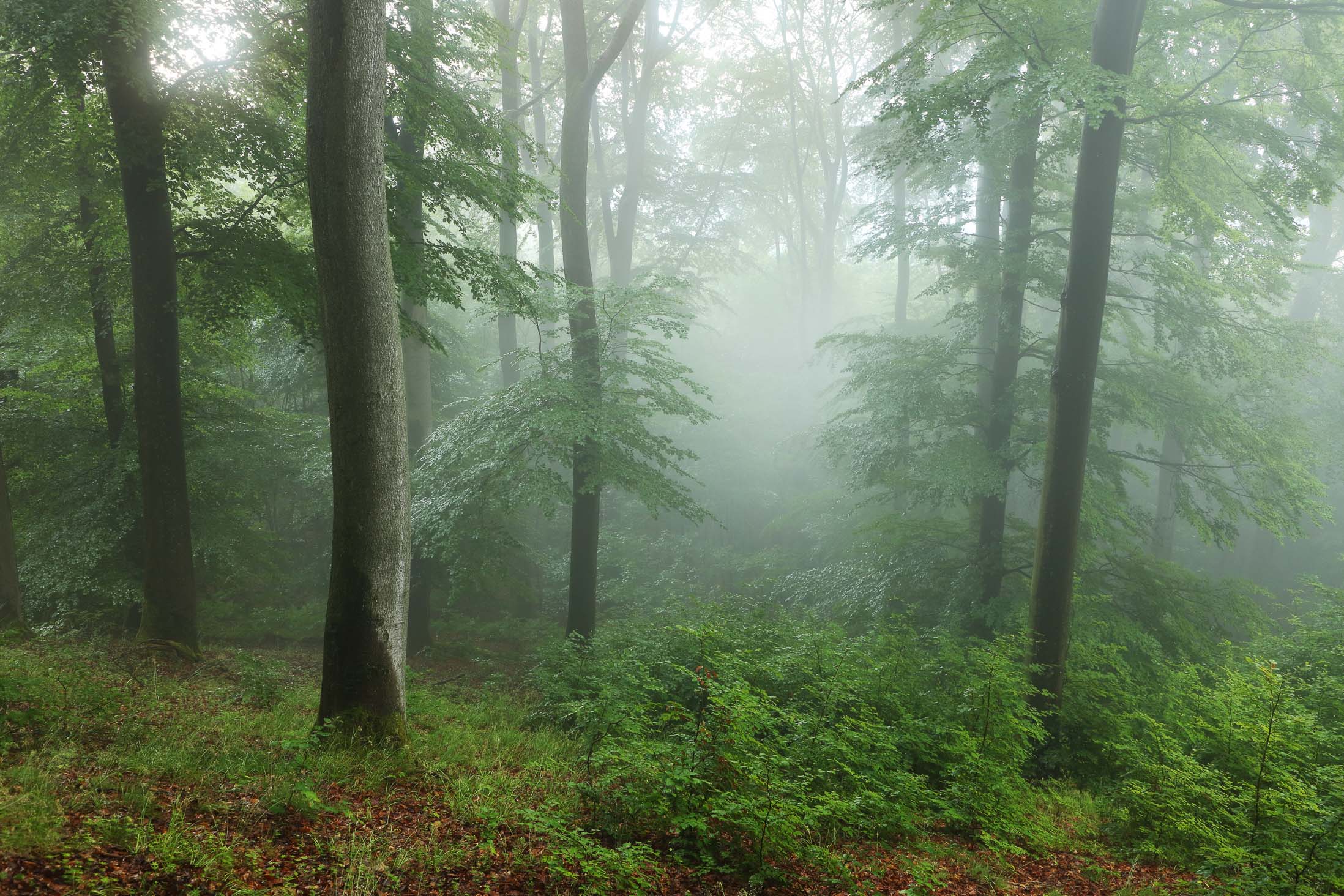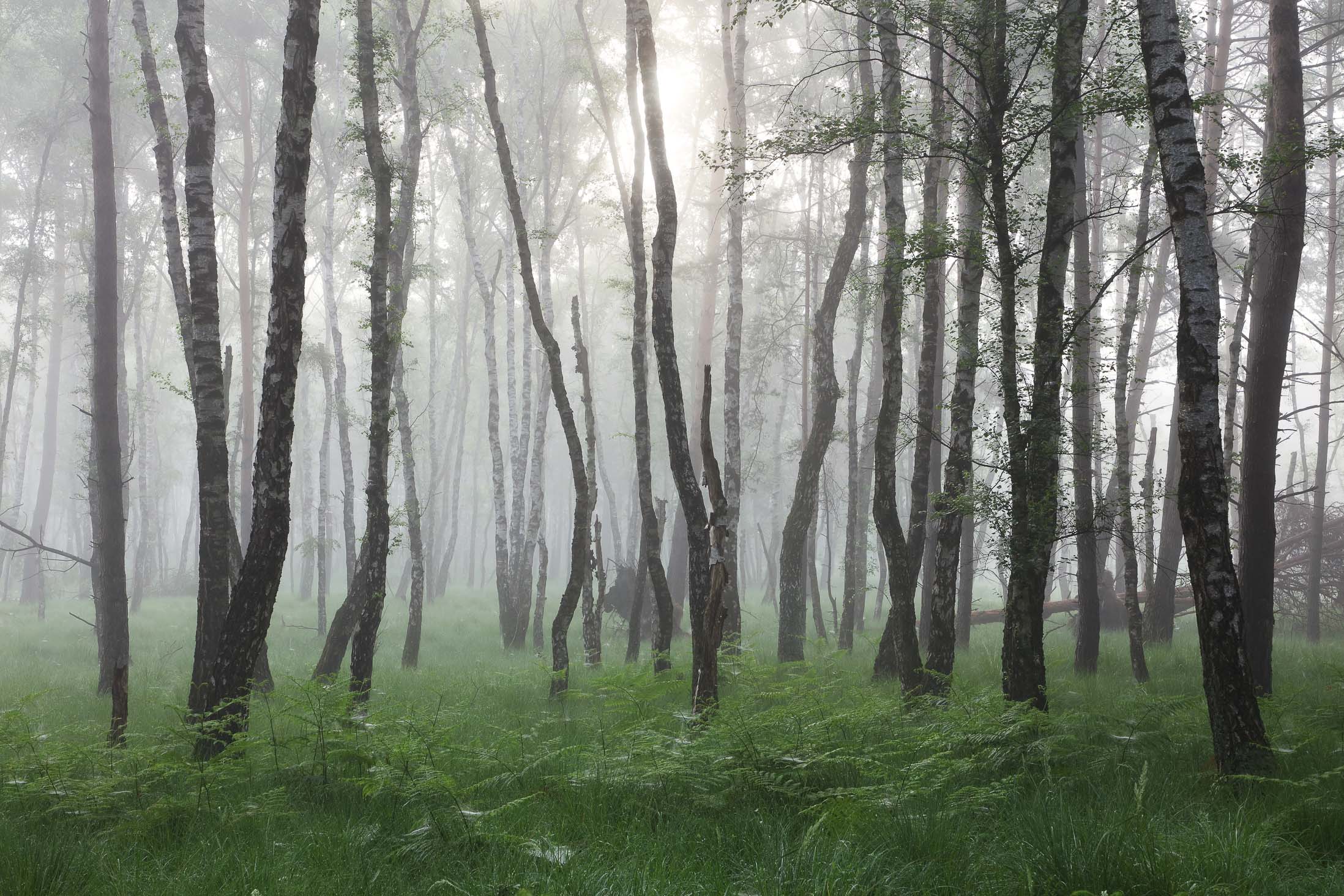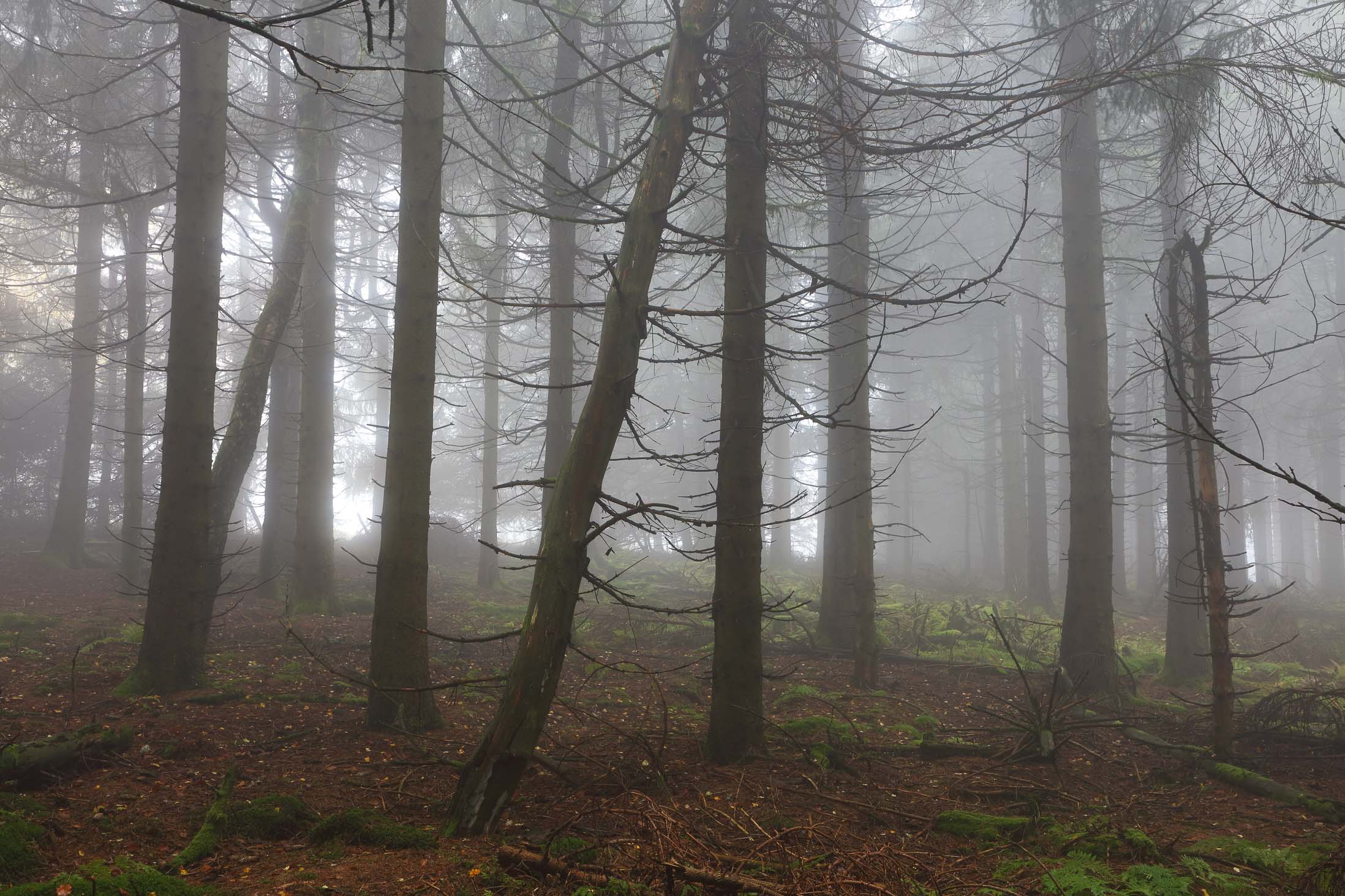 A particularly mystical atmosphere is created in the forest when trees are shrouded in dense fog swallowing all sounds. This gallery shows such mystical fog moods in birch, beech, and conifer forests.