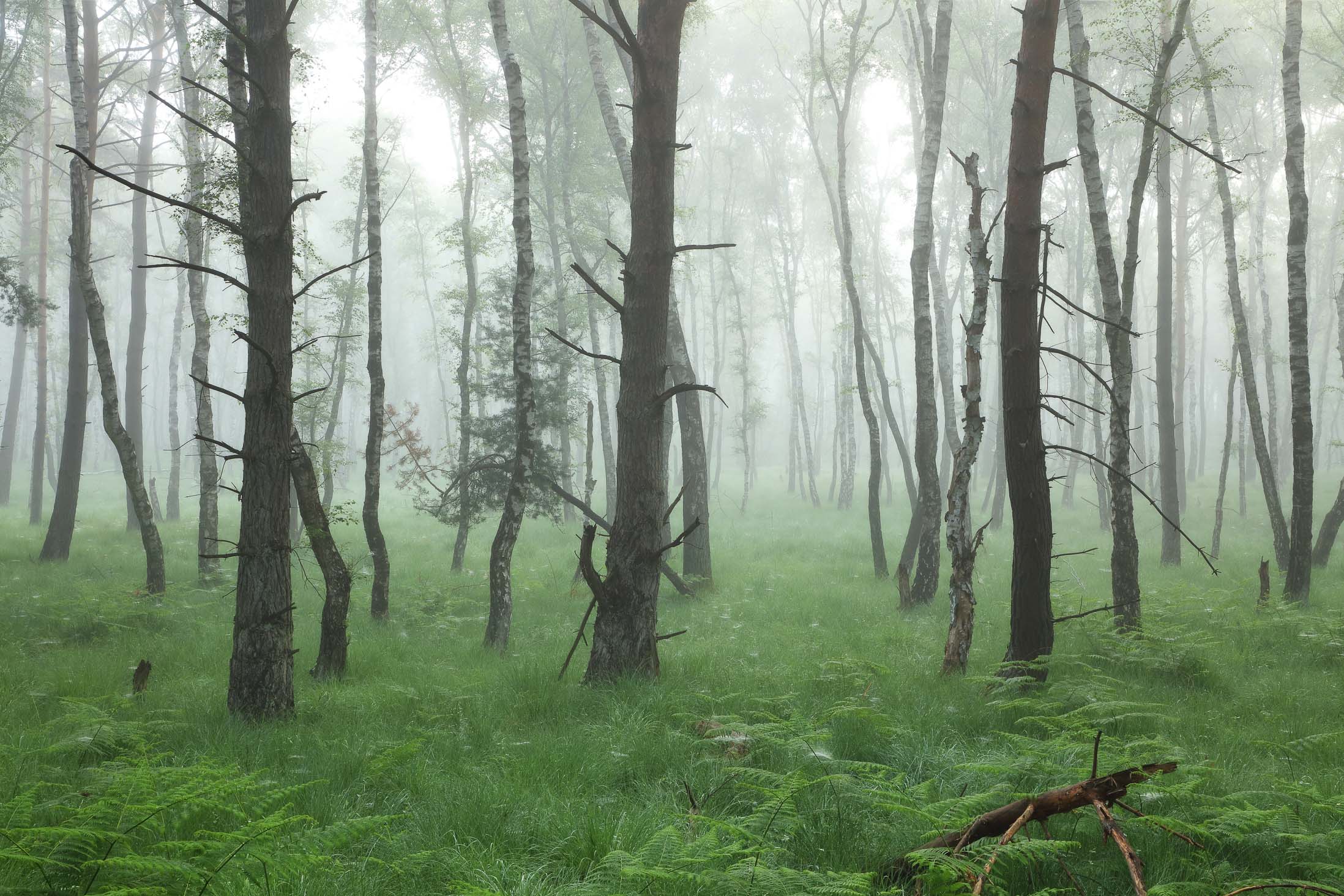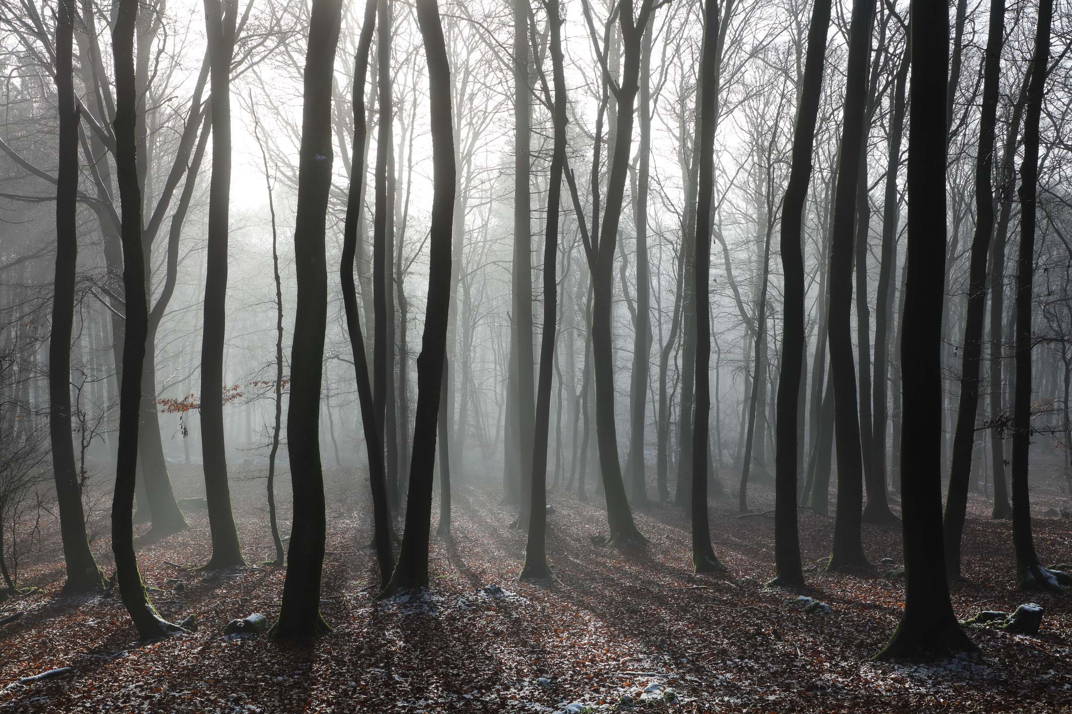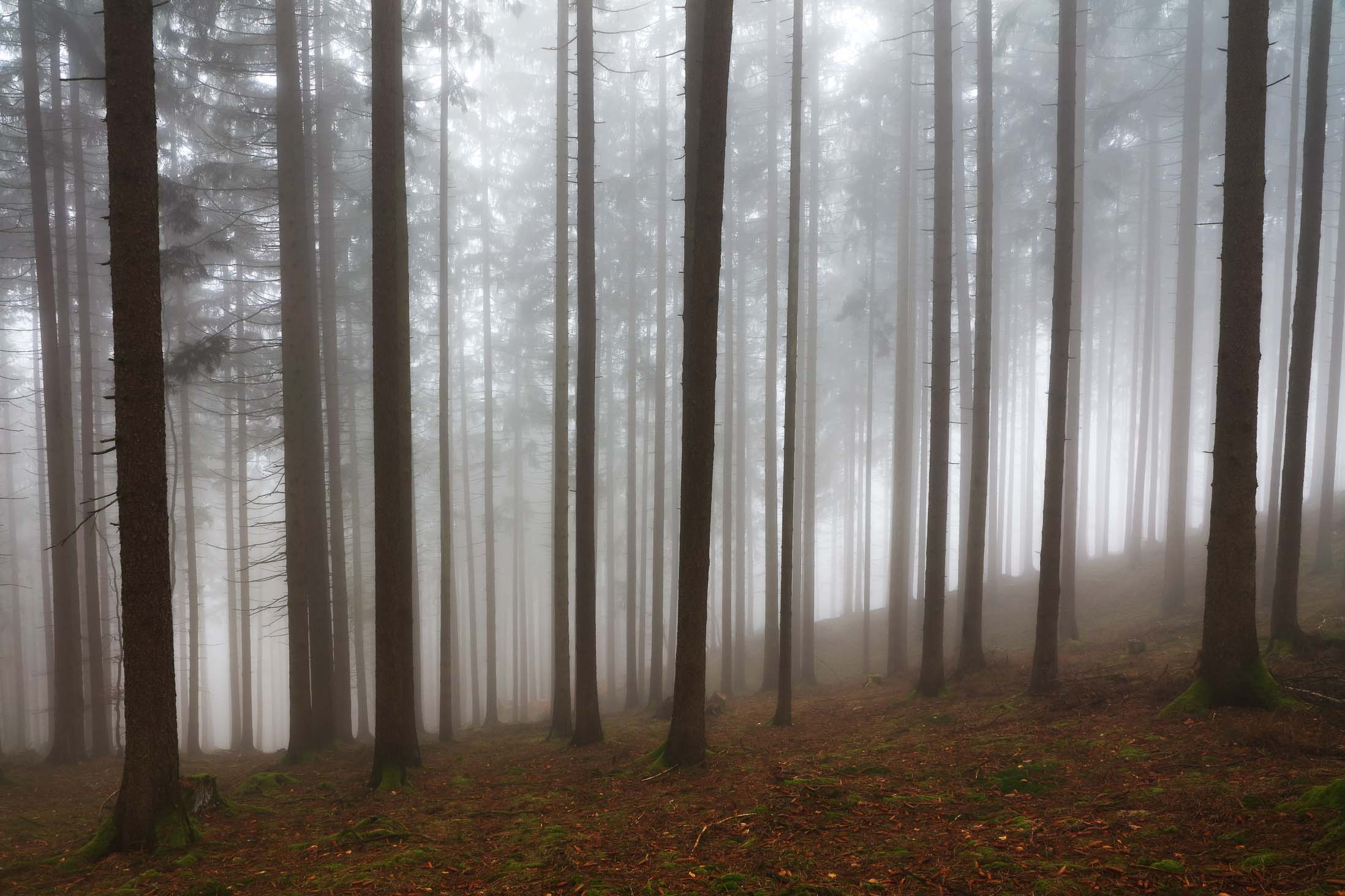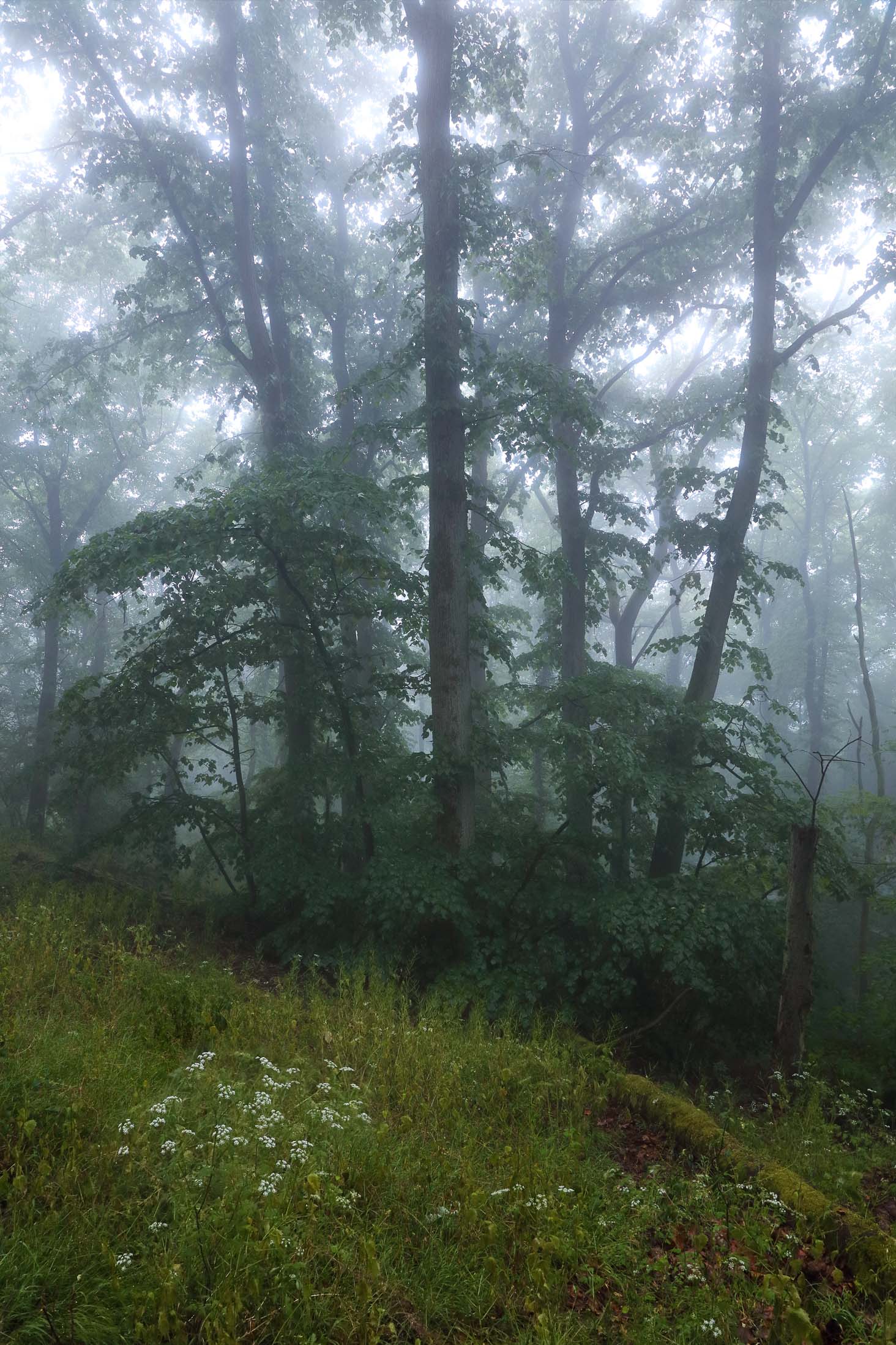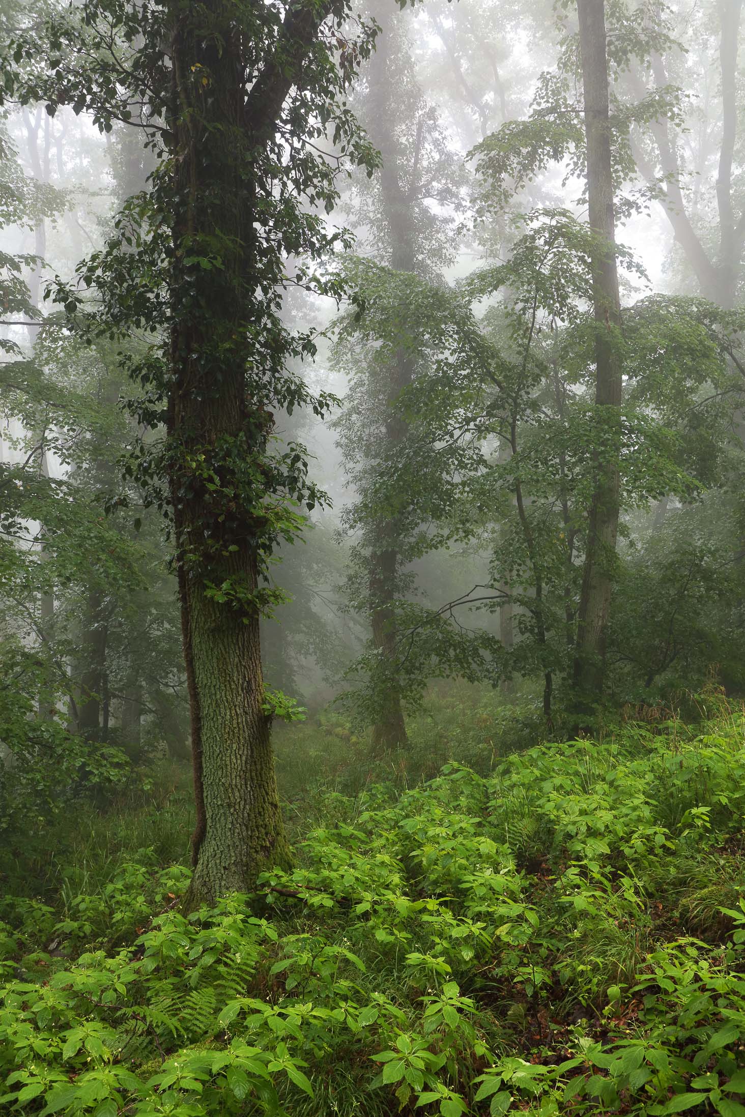 A particularly mystical atmosphere is created in the forest when trees are shrouded in dense fog swallowing all sounds. This gallery shows such mystical fog moods in birch, beech, and conifer forests.