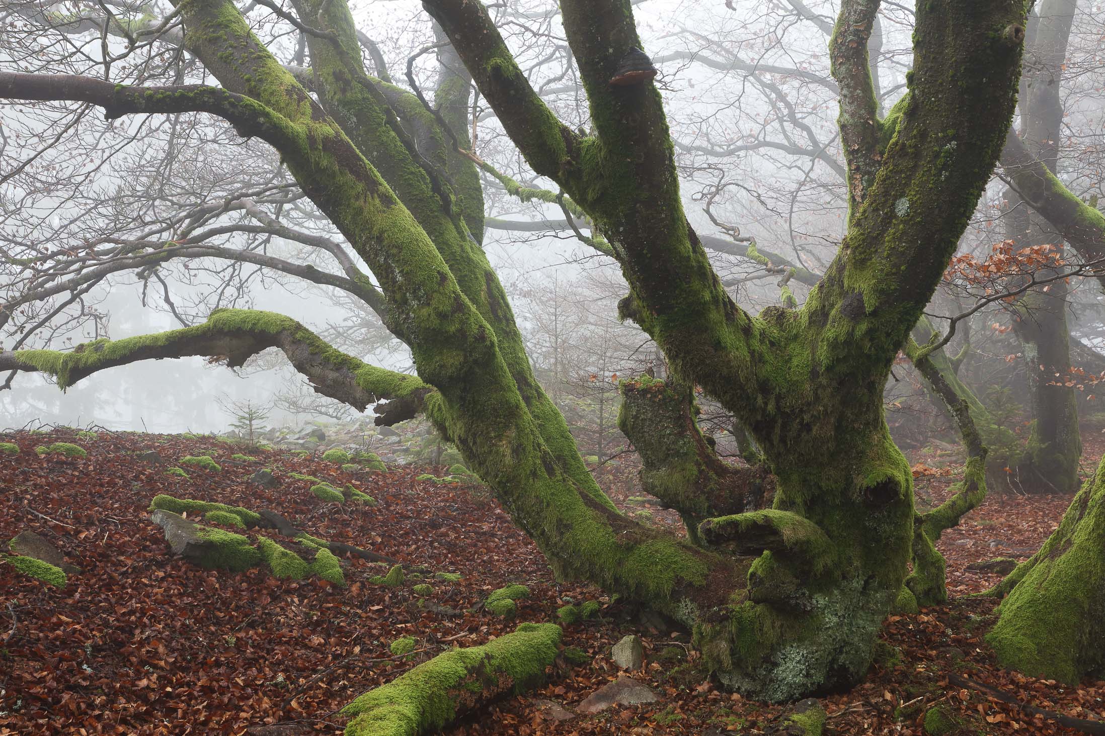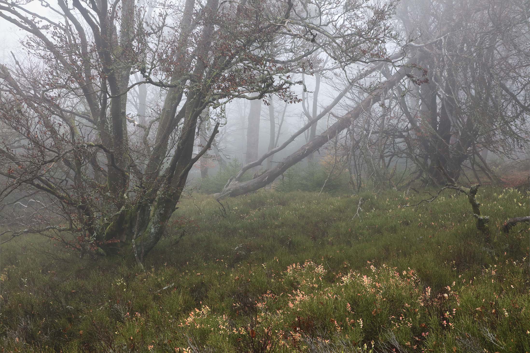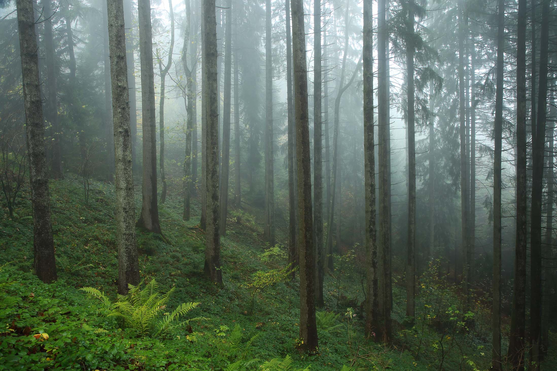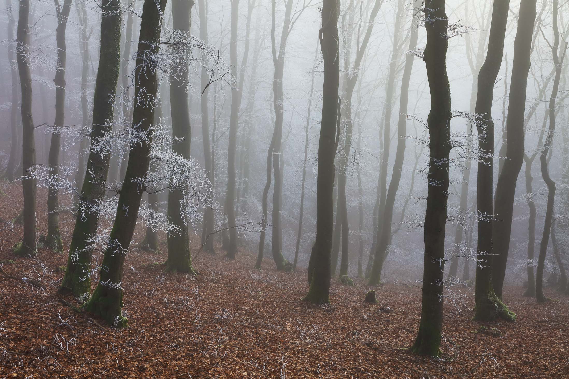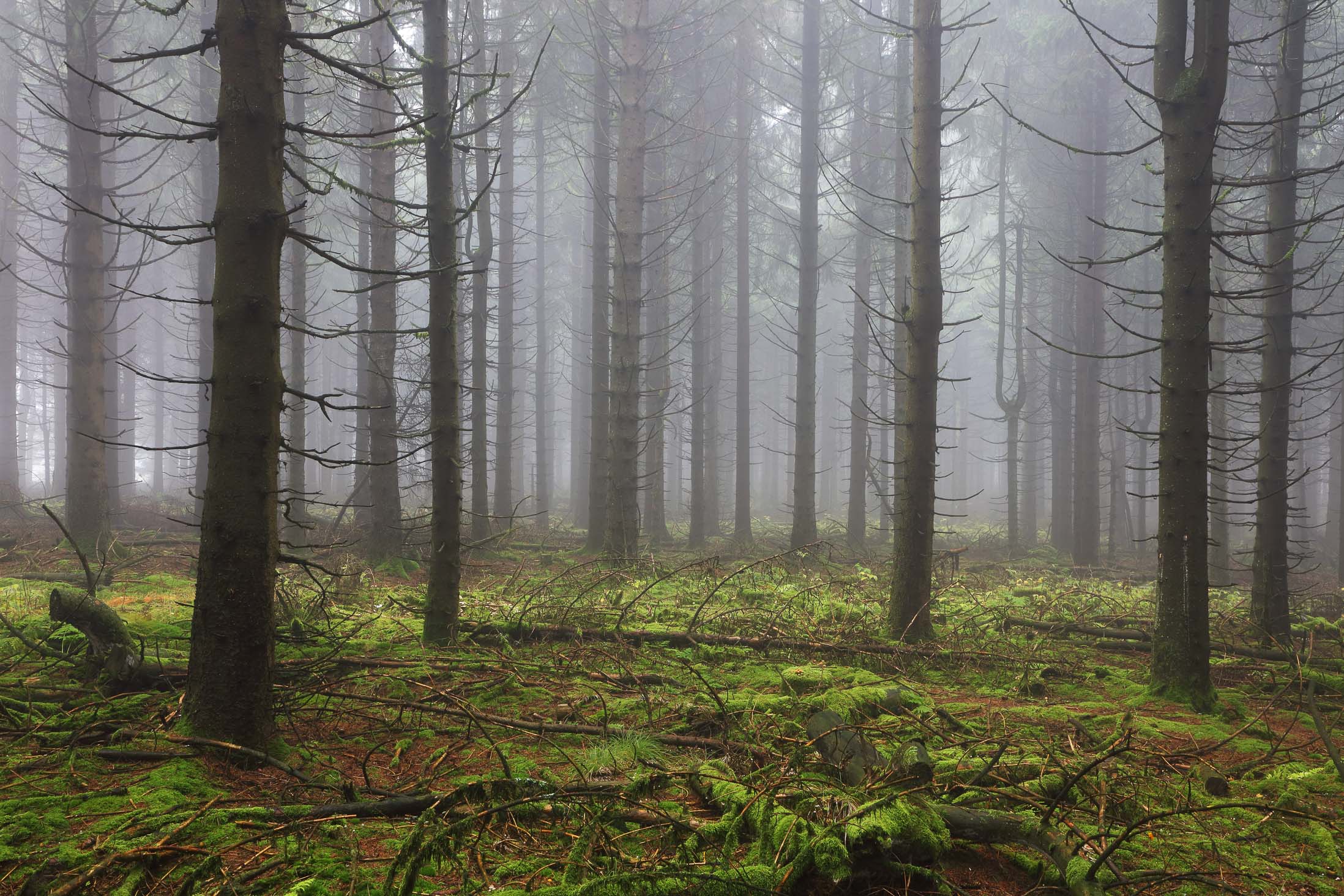 A particularly mystical atmosphere is created in the forest when trees are shrouded in dense fog swallowing all sounds. This gallery shows such mystical fog moods in birch, beech, and conifer forests.