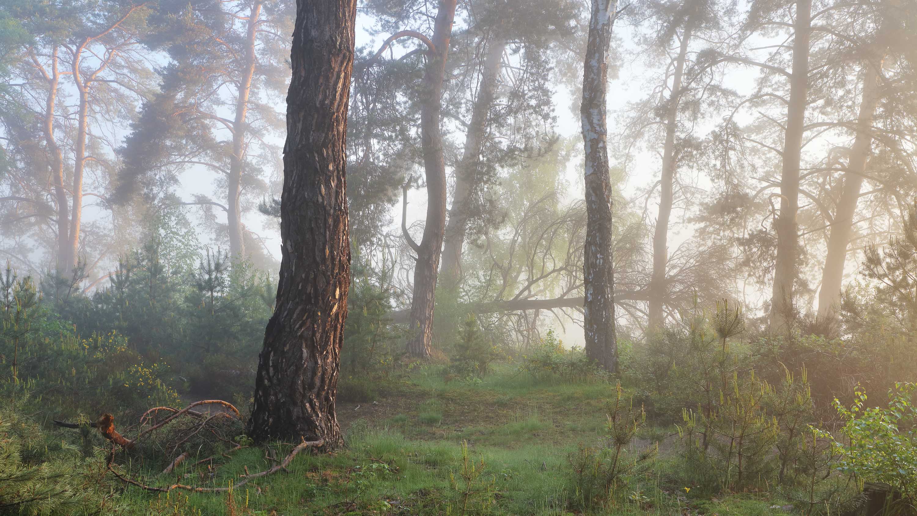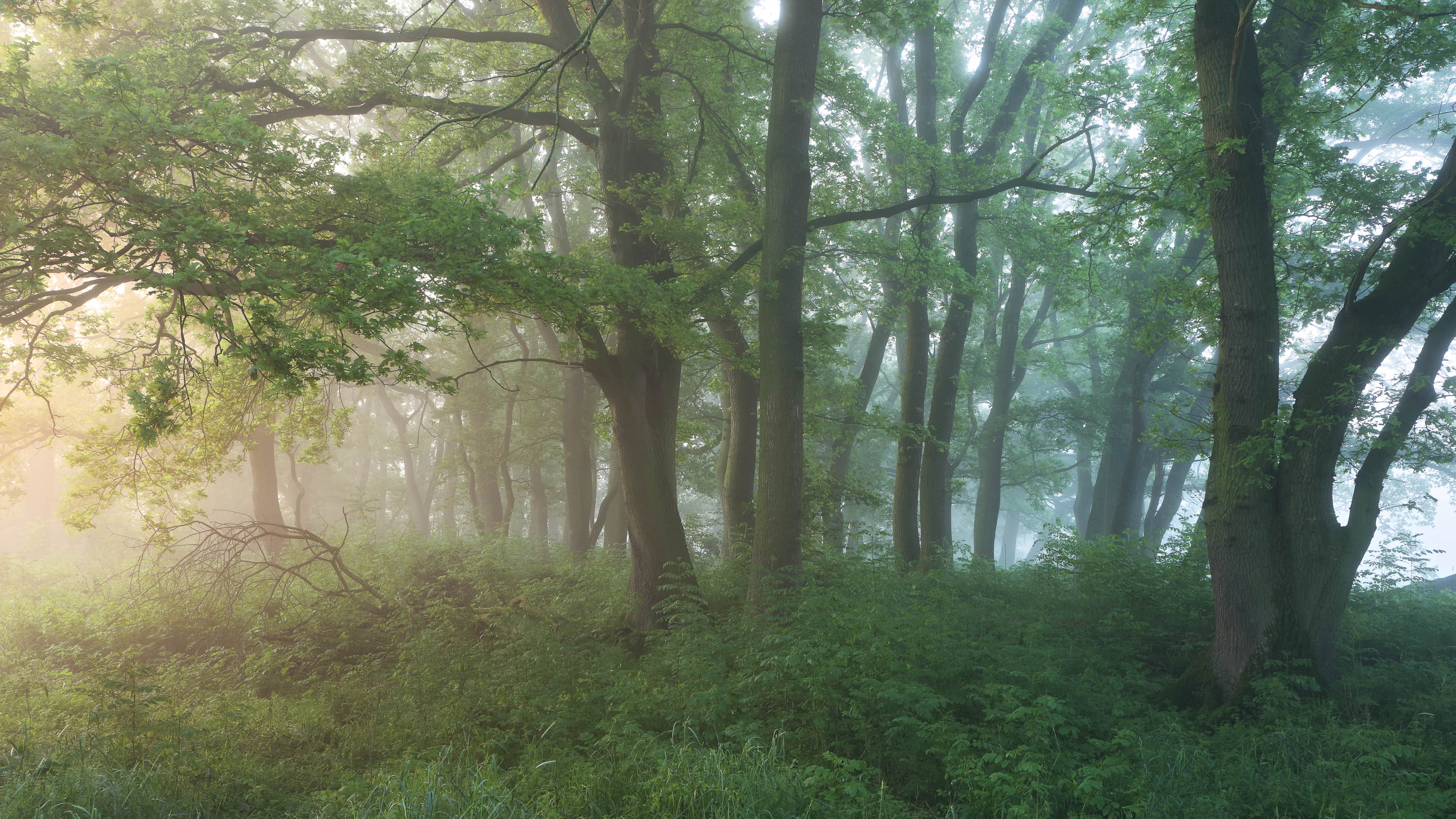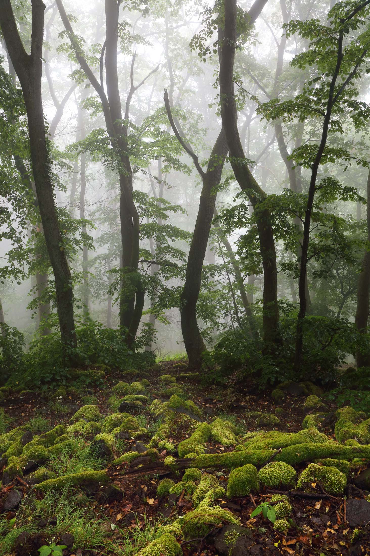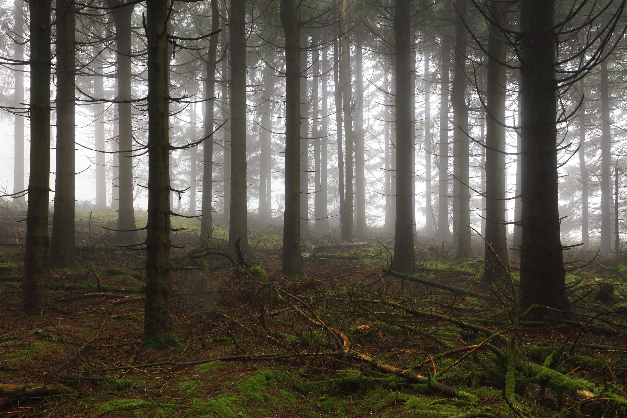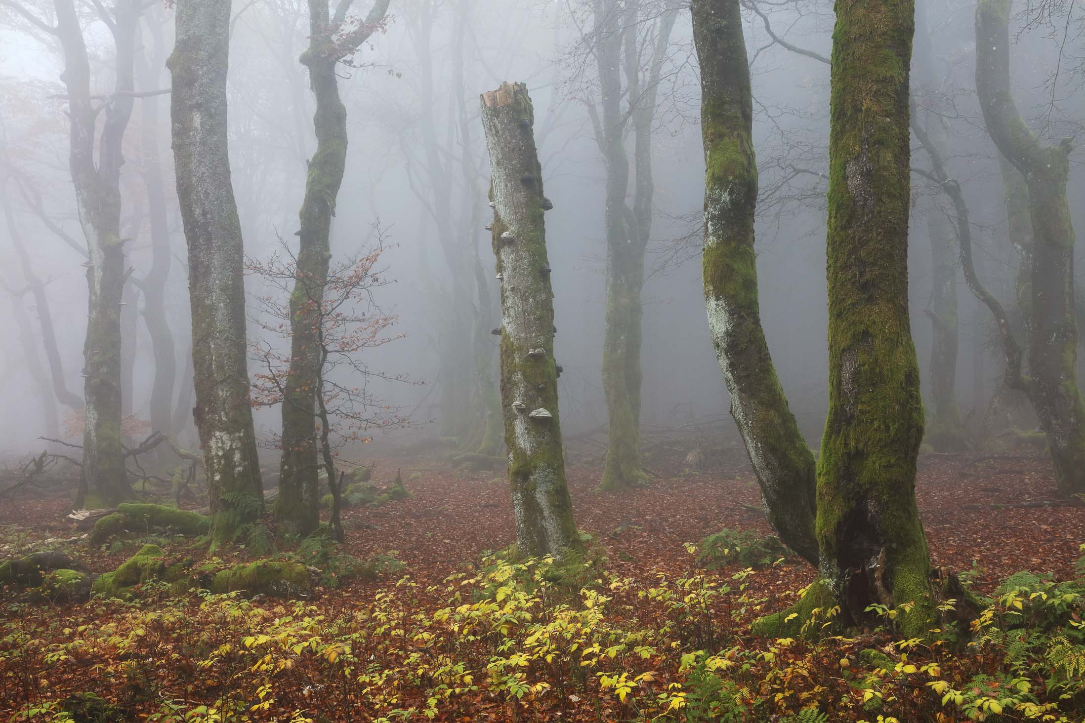 A particularly mystical atmosphere is created in the forest when trees are shrouded in dense fog swallowing all sounds. This gallery shows such mystical fog moods in birch, beech, and conifer forests.