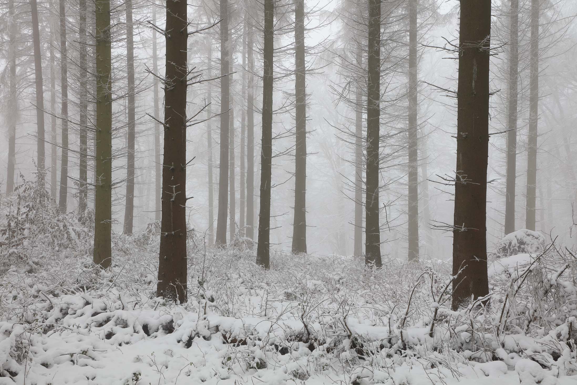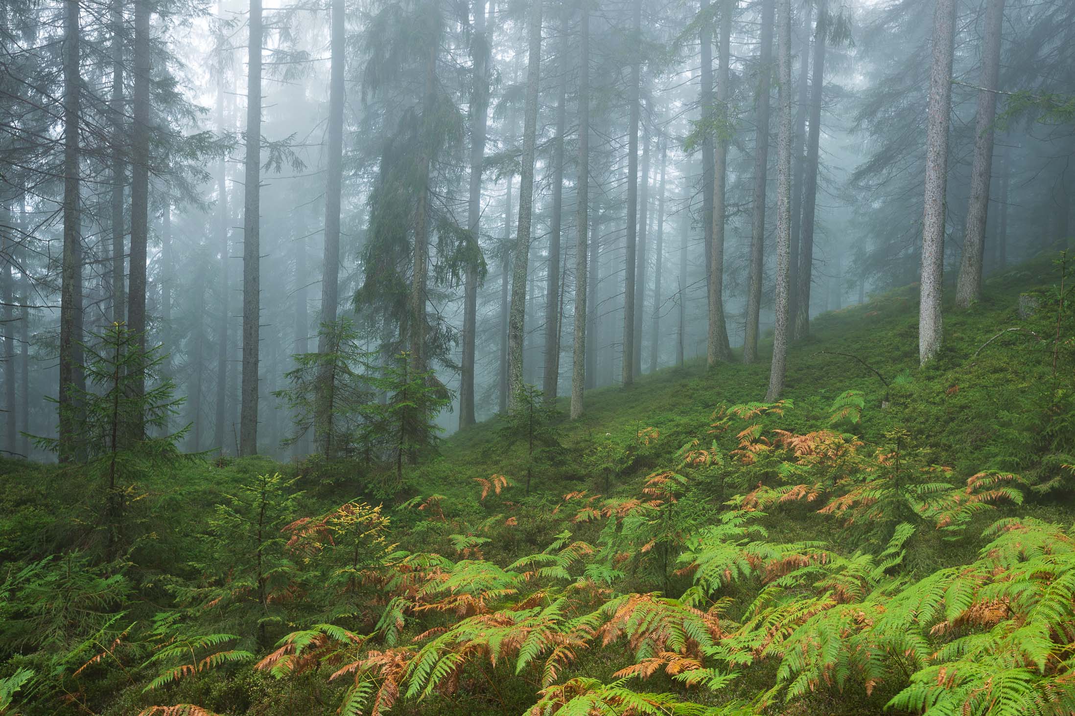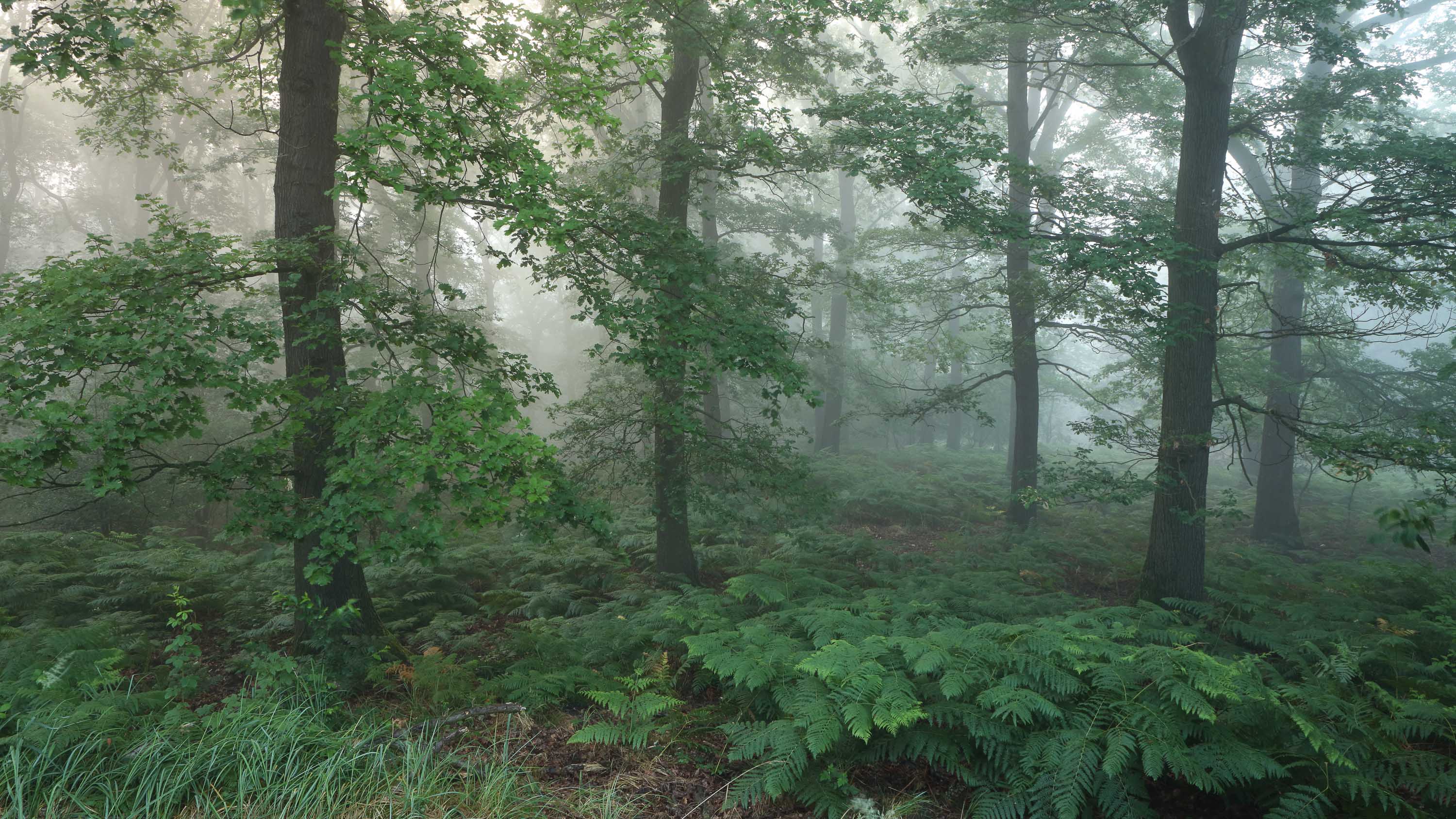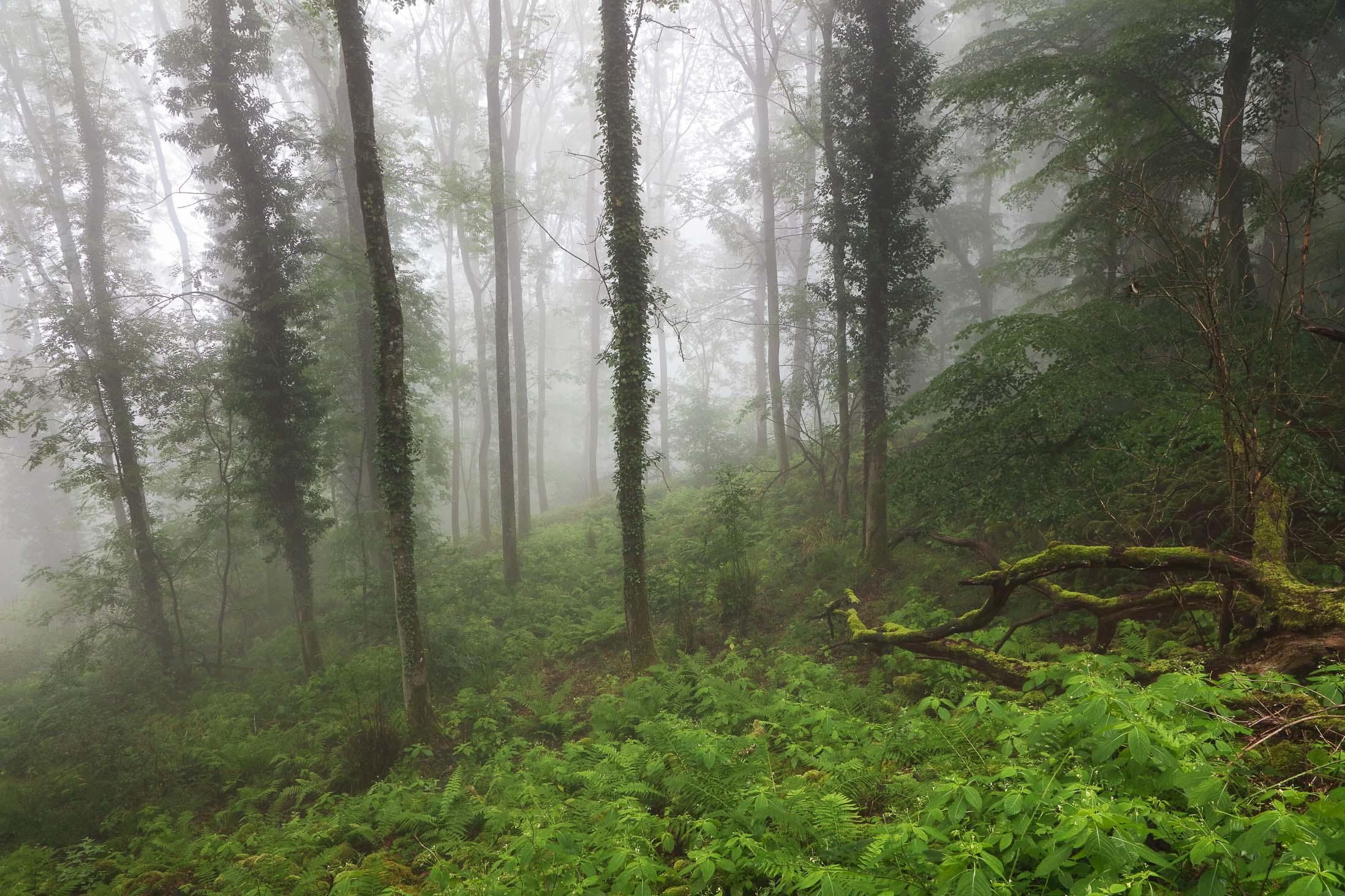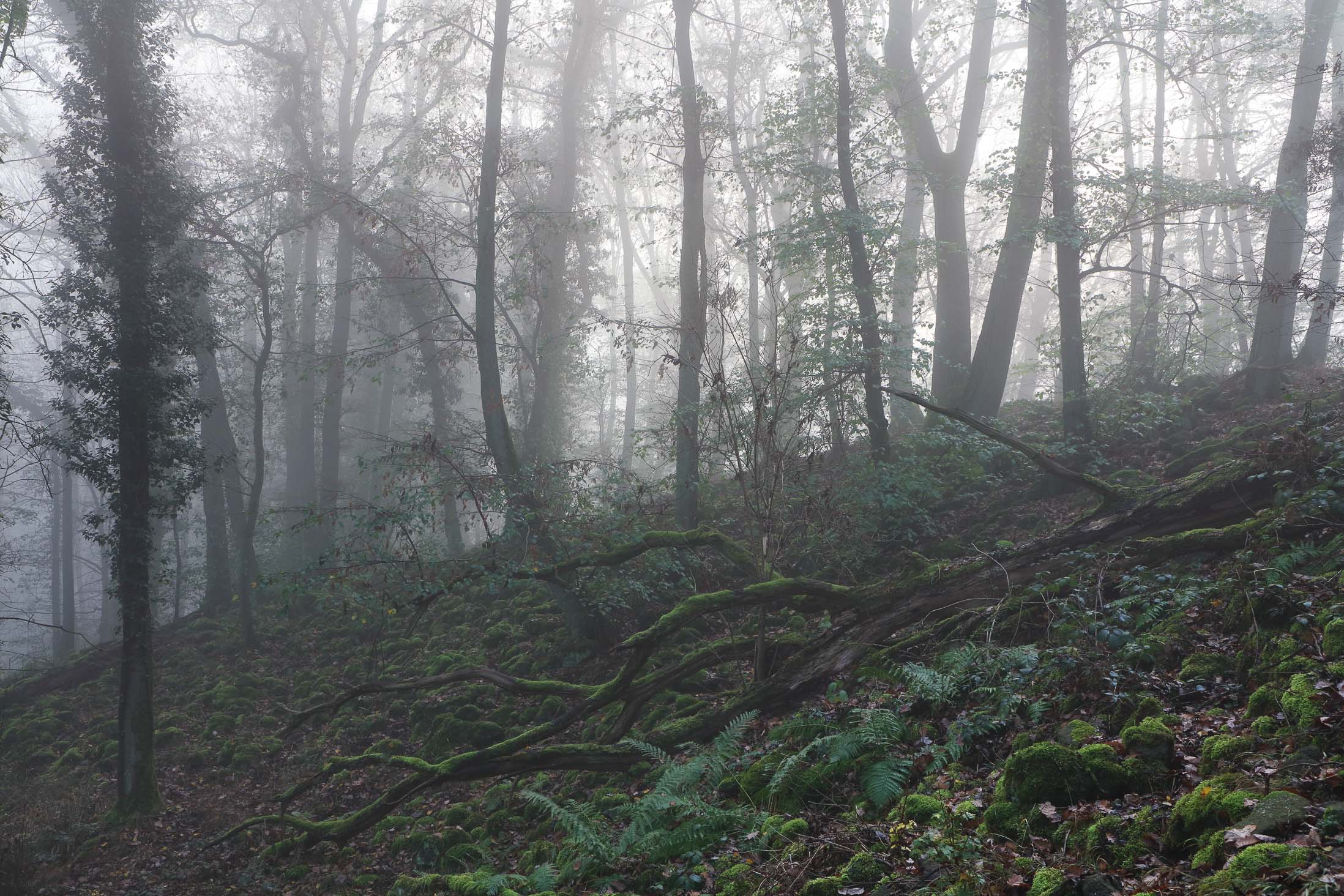 A particularly mystical atmosphere is created in the forest when trees are shrouded in dense fog swallowing all sounds. This gallery shows such mystical fog moods in birch, beech, and conifer forests.